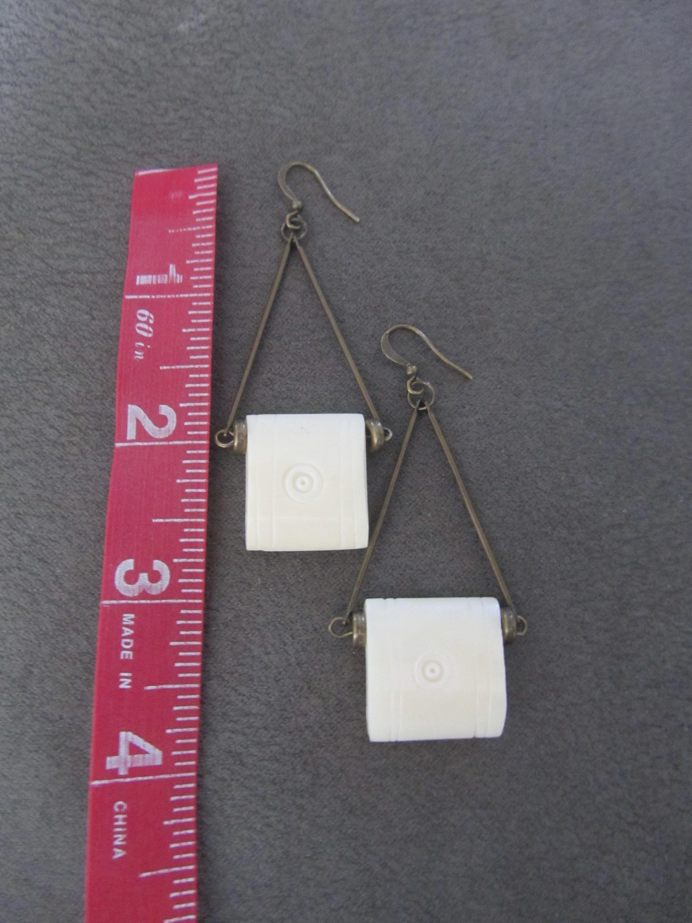 Cream carved bone beads with French hooks