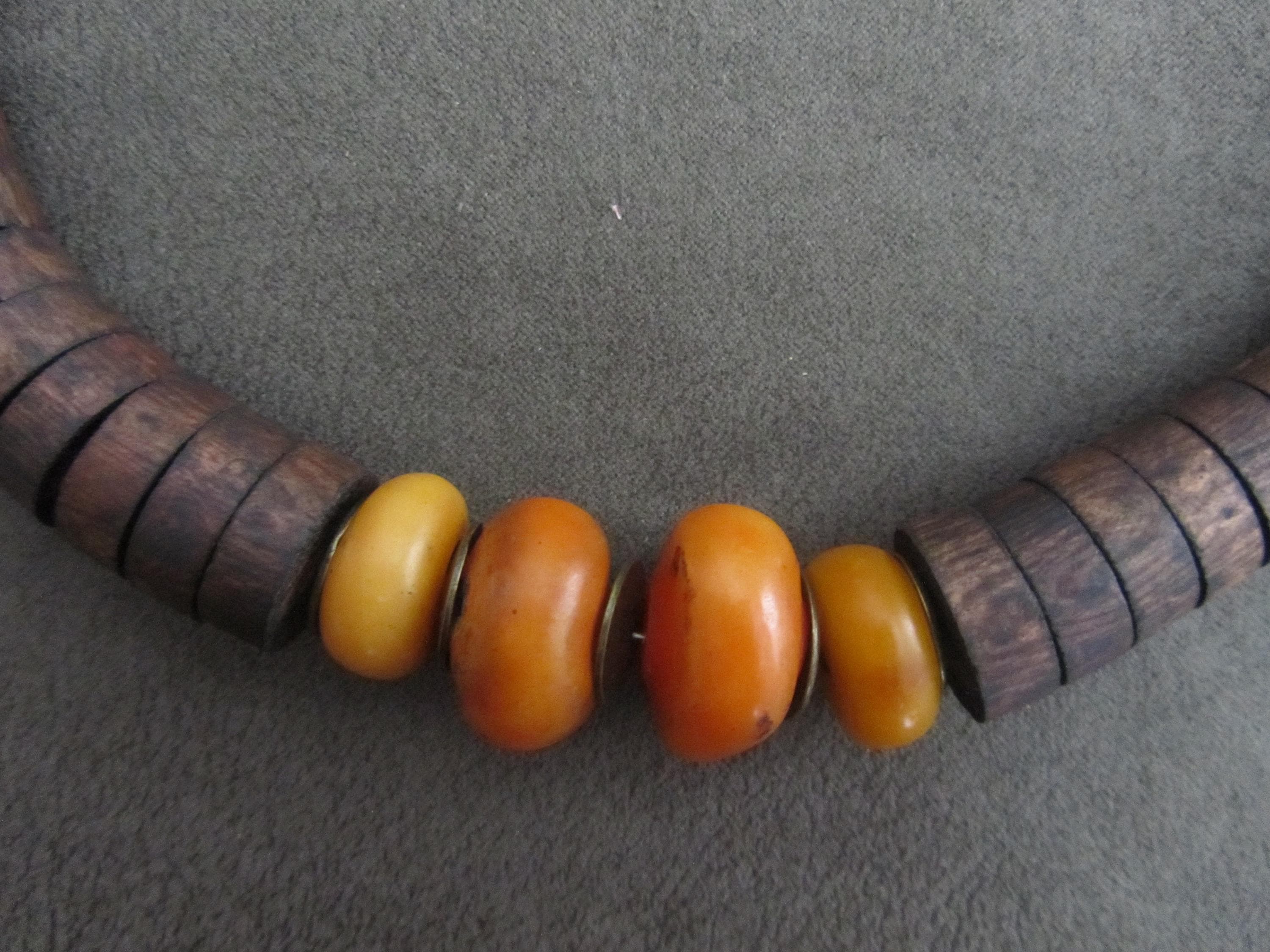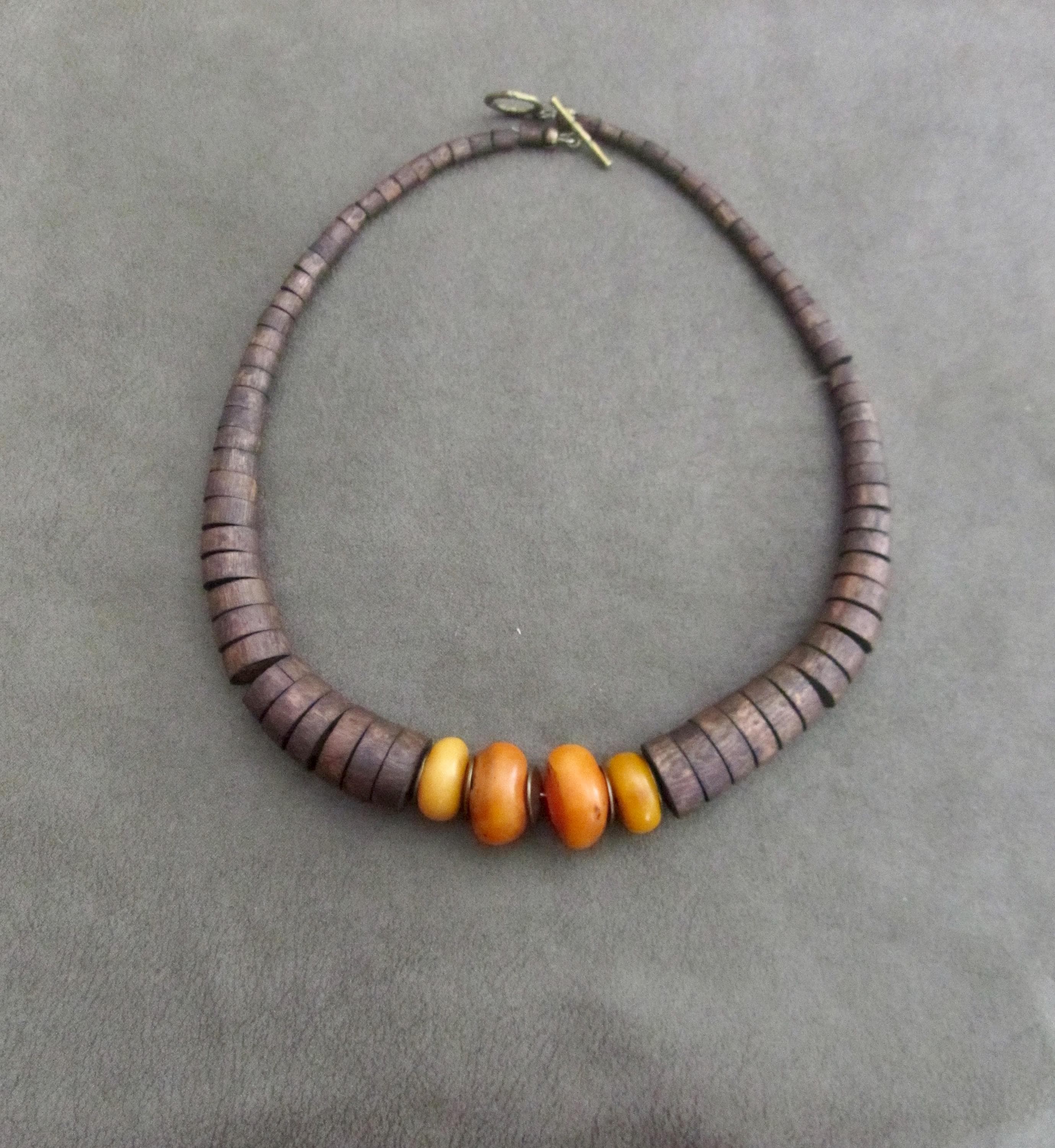 Stone and wooden beaded chunky necklace. Toggle clasp