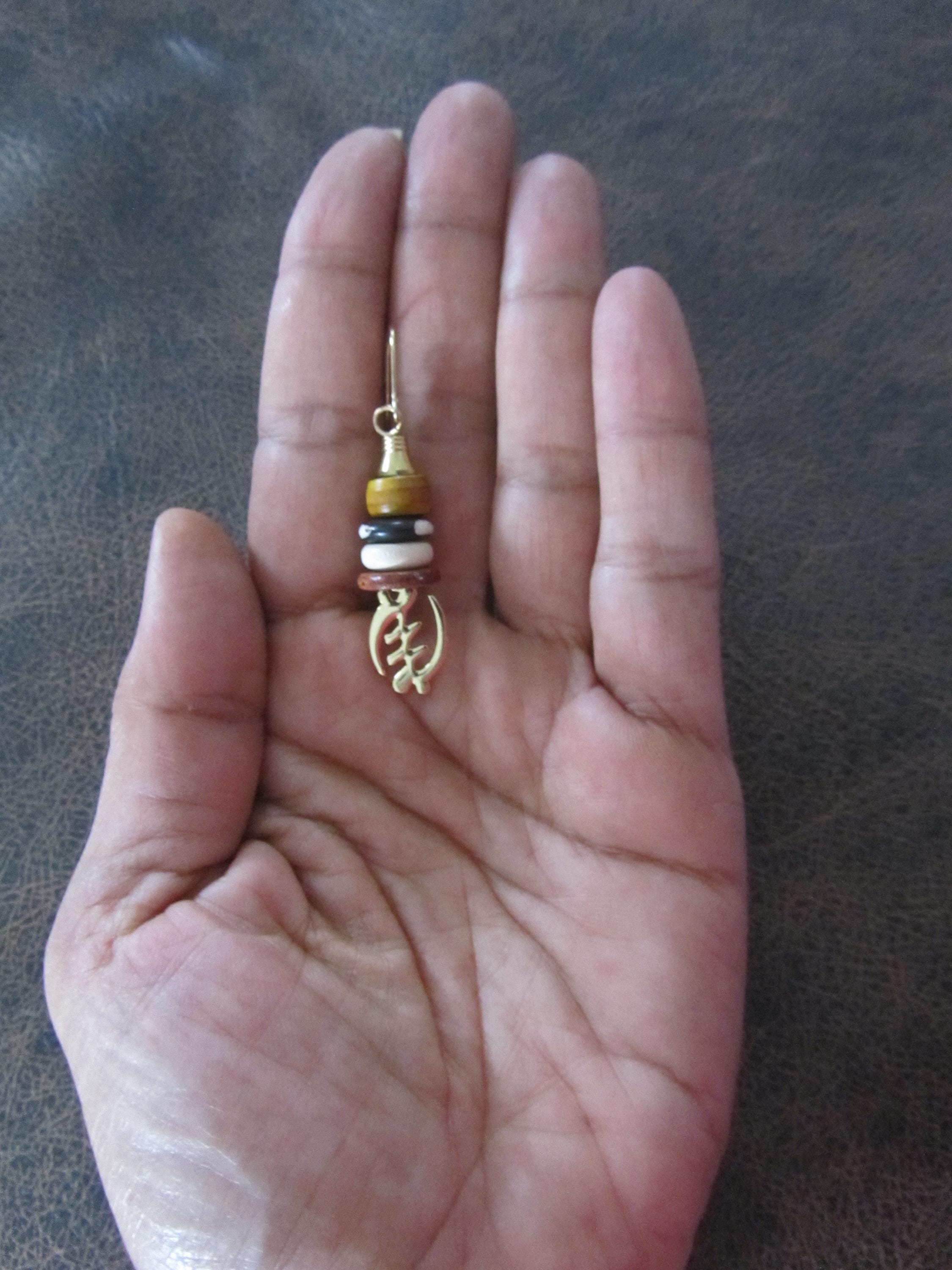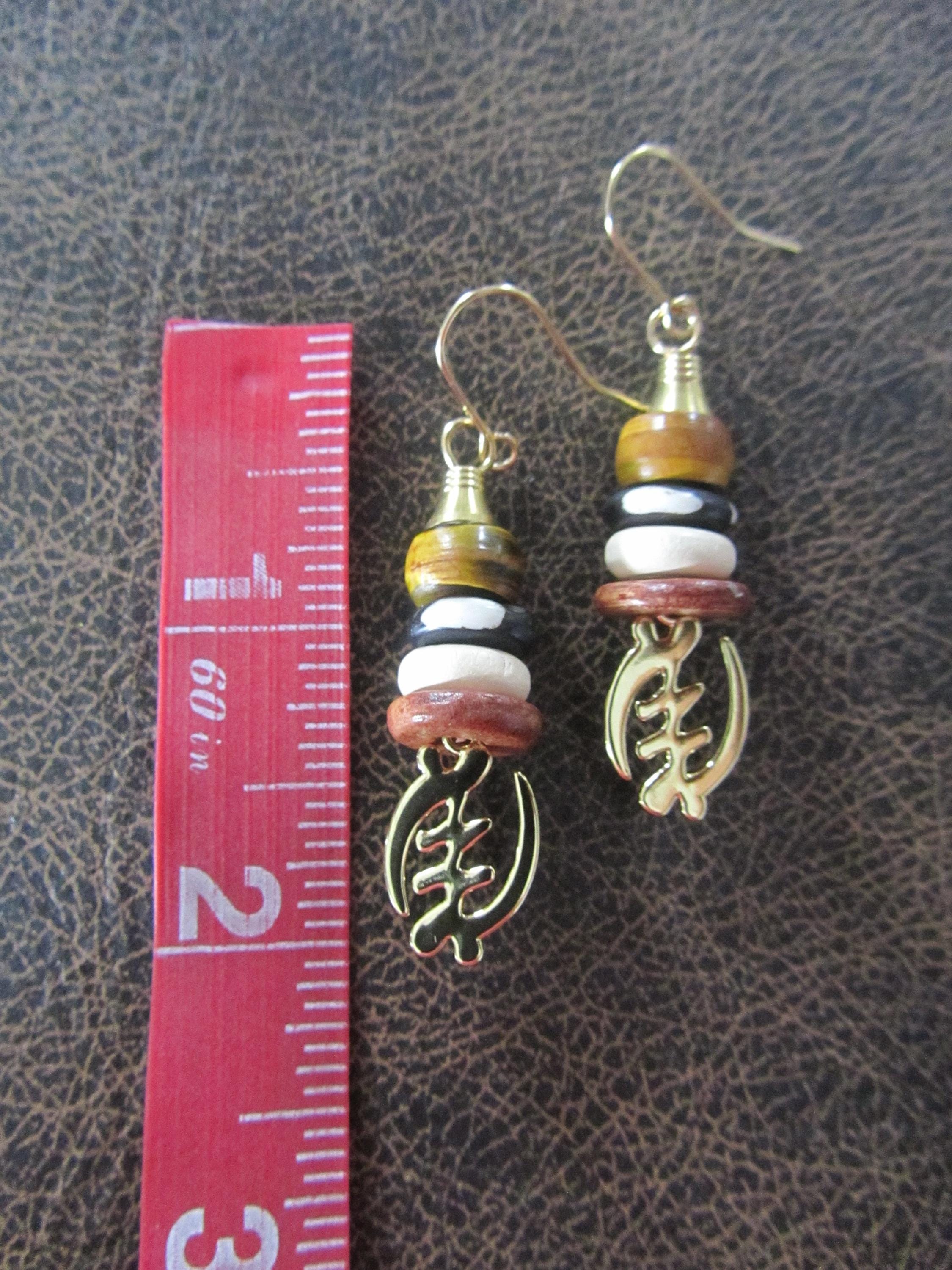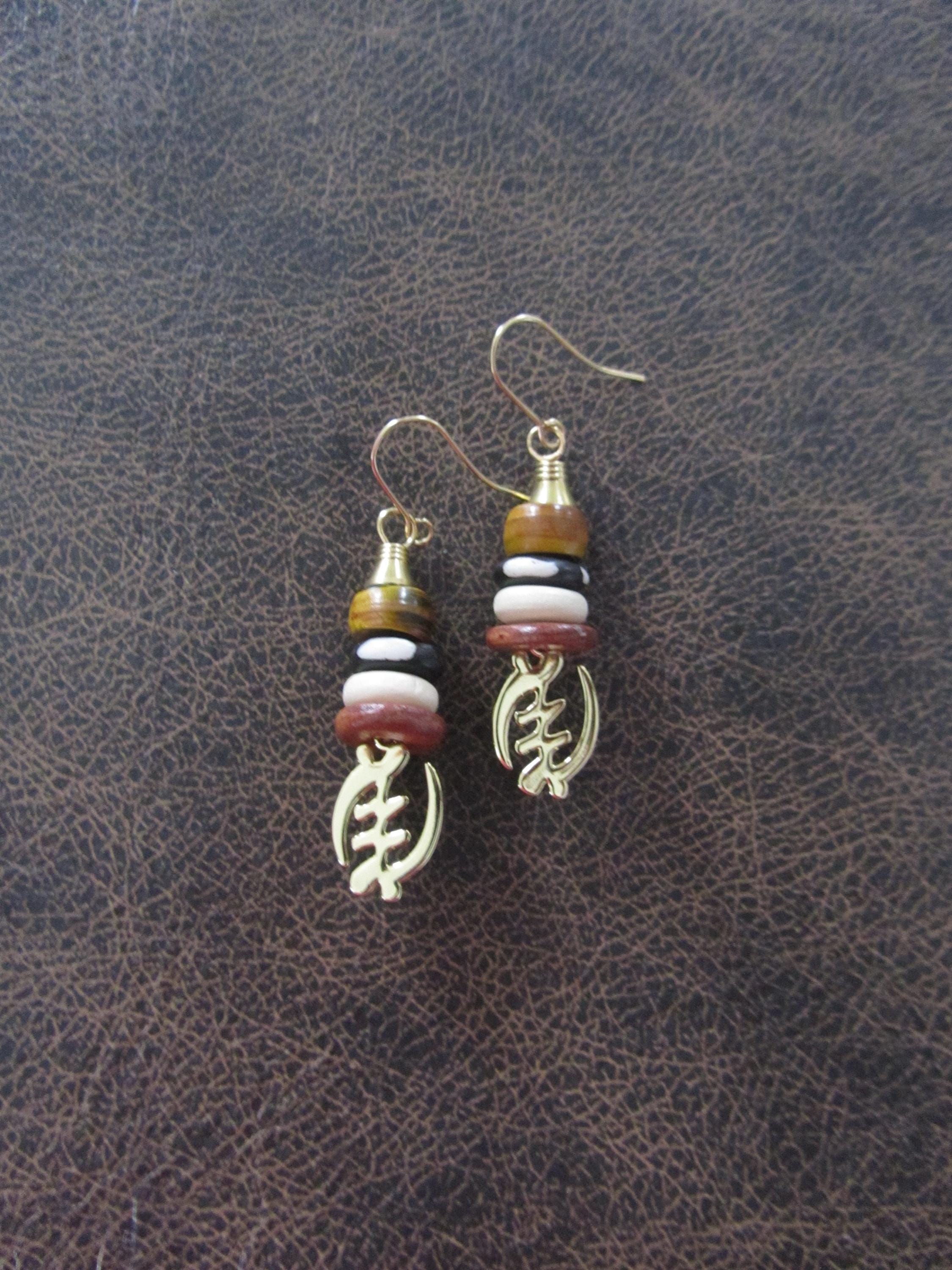 Adinkra symbol and bone earrings and French hooks