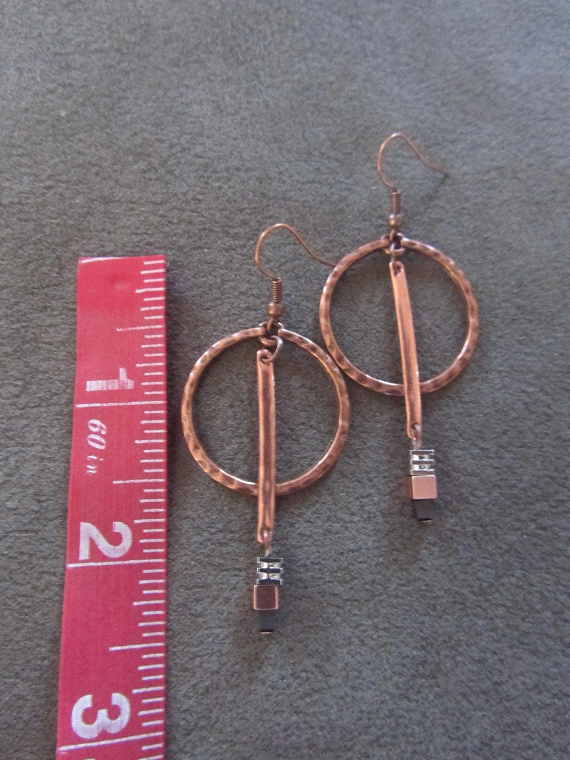 Simple copper hoop earrings on French hooks