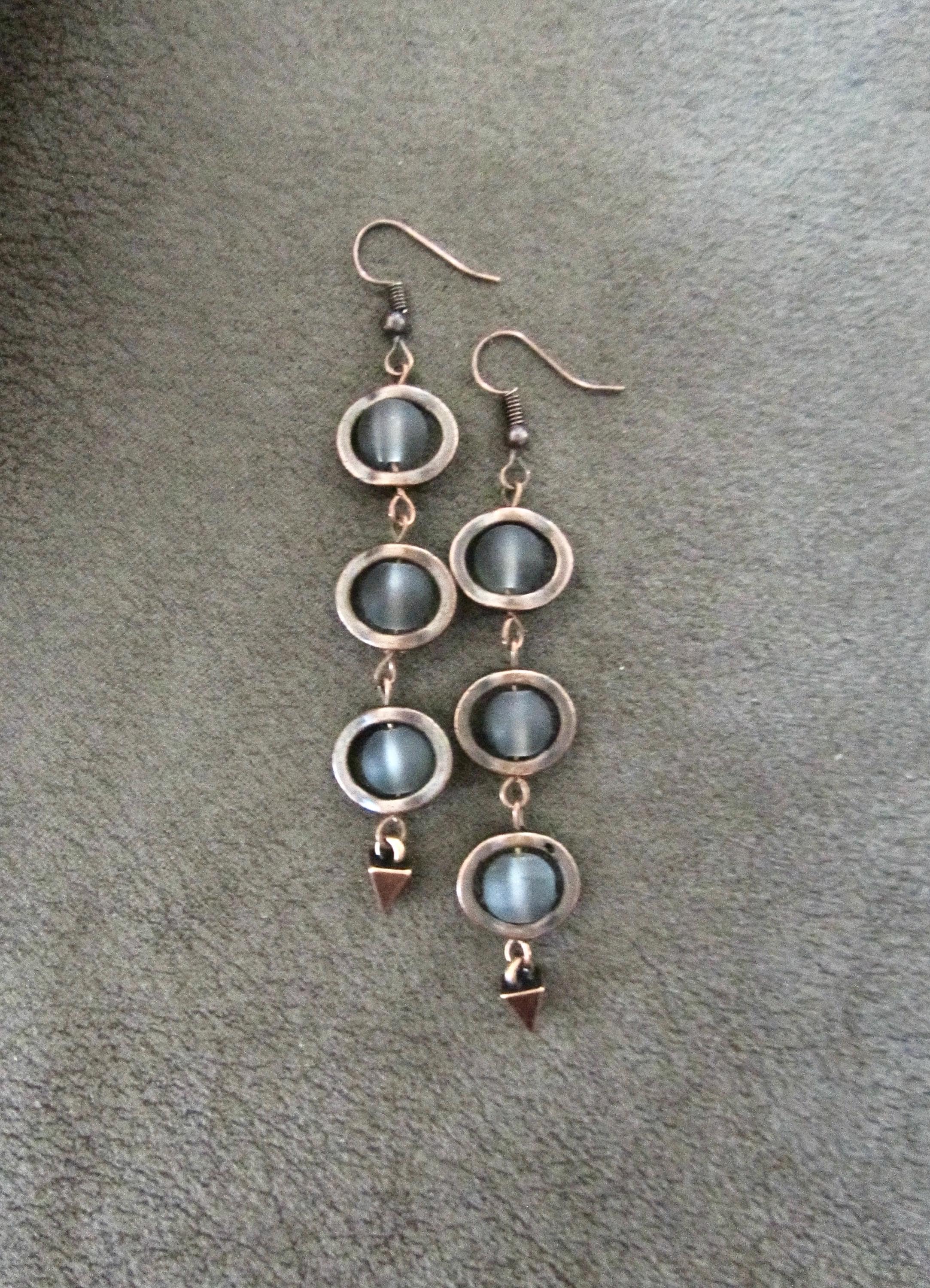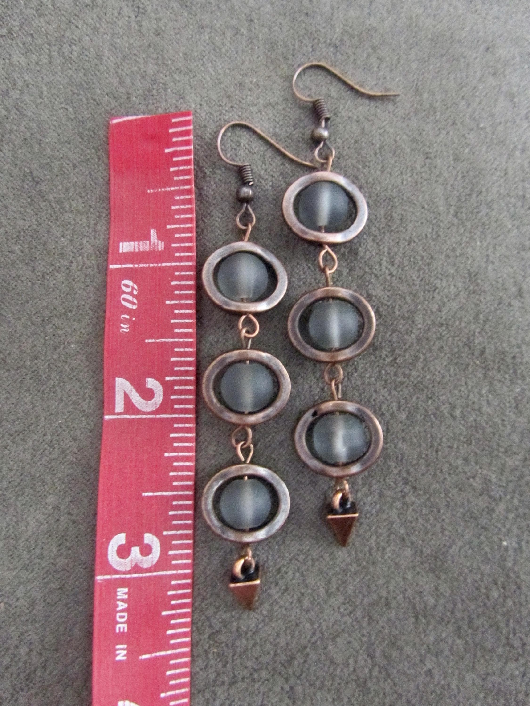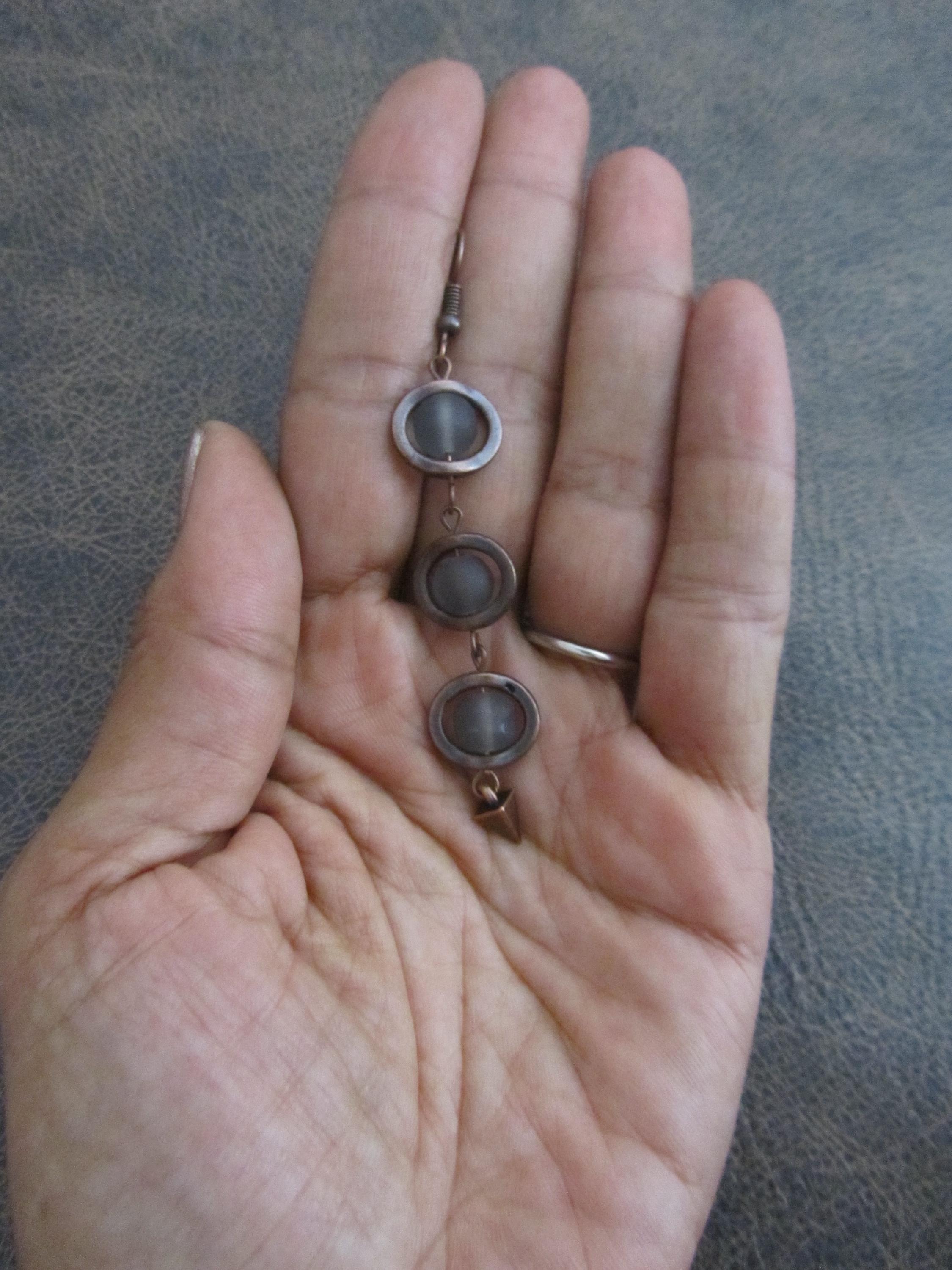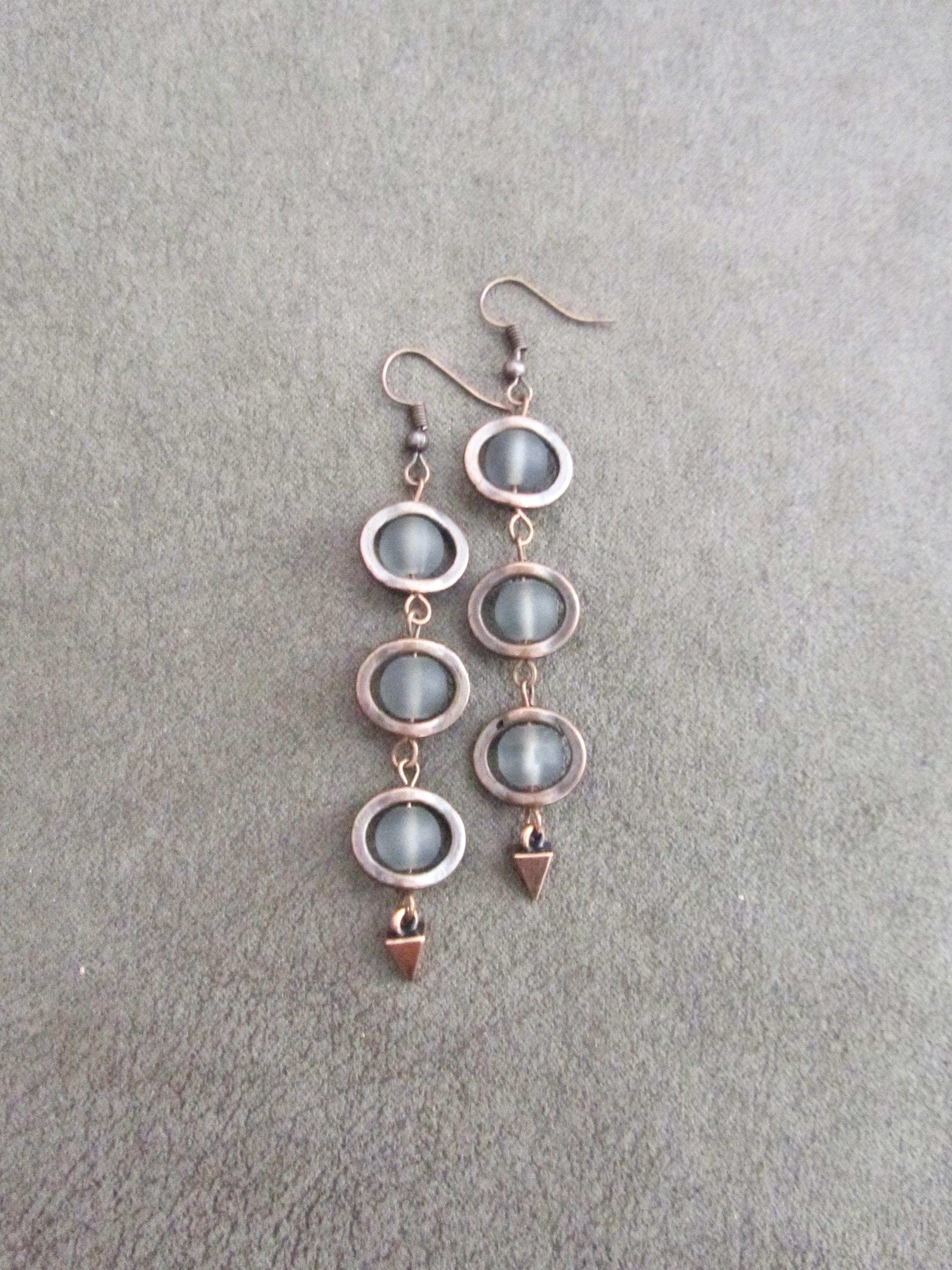 Gray frosted glass and copper geometric earrings on French hooks
