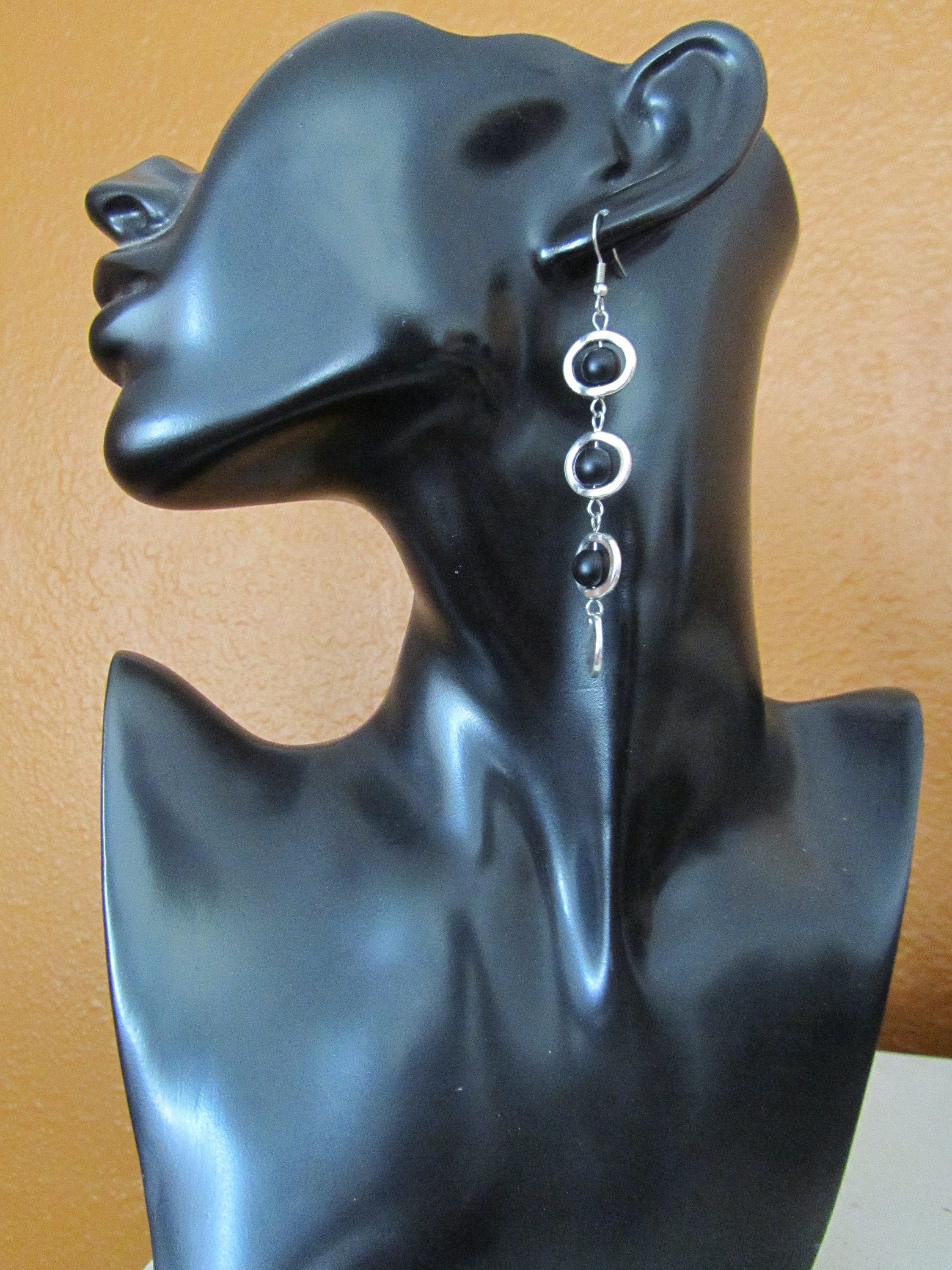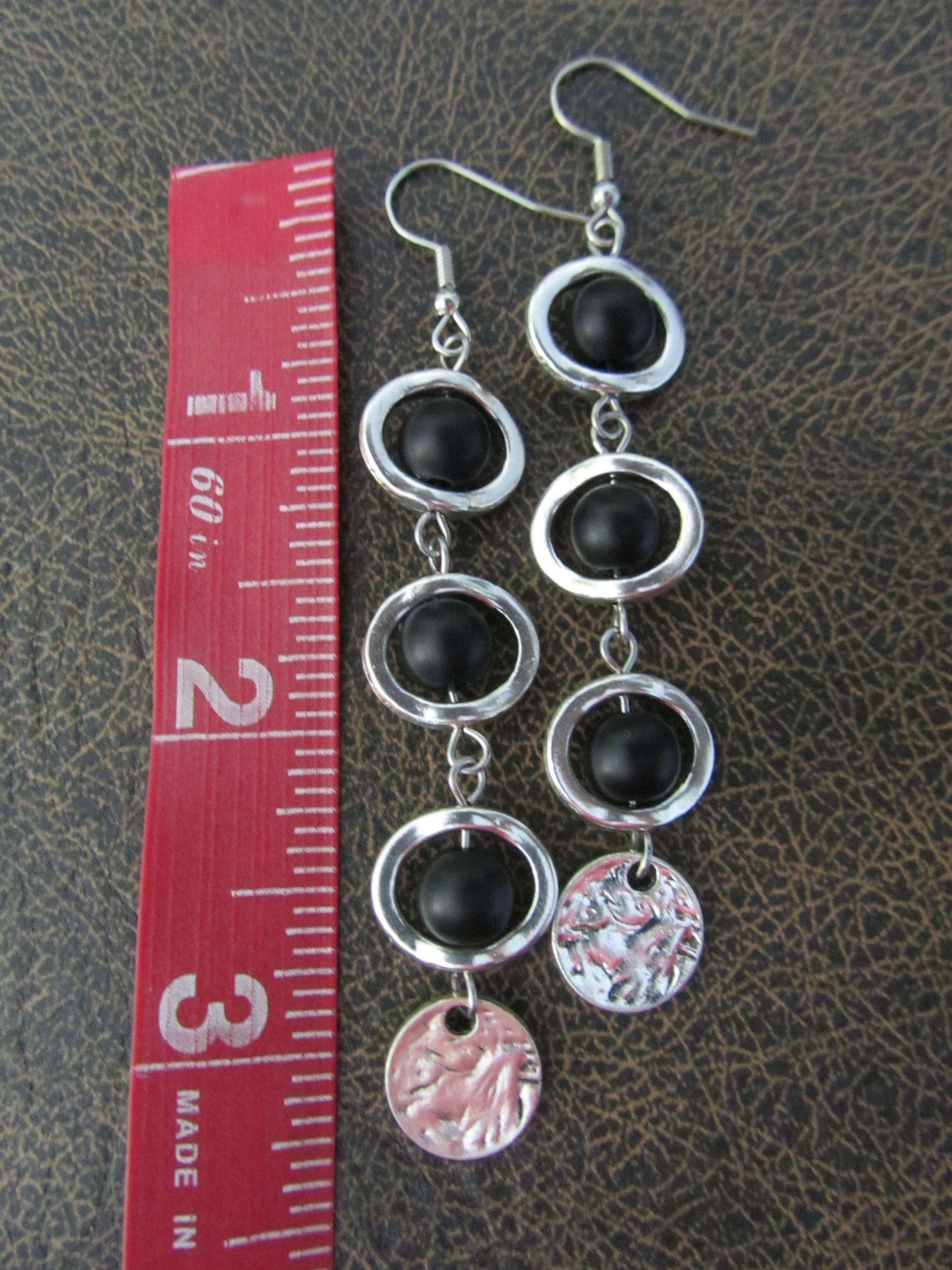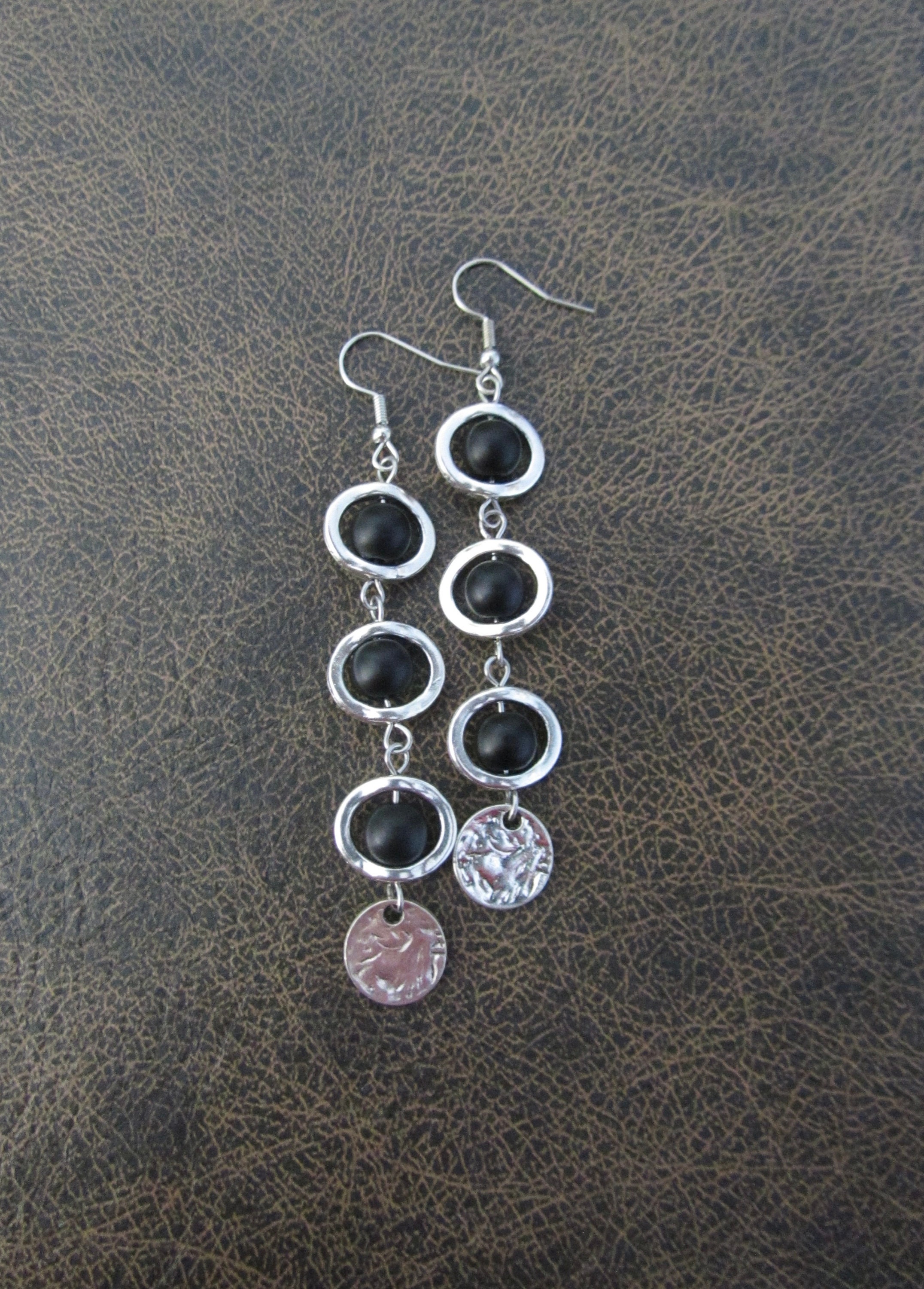 Black frosted glass and silver geometric earrings on French hooks