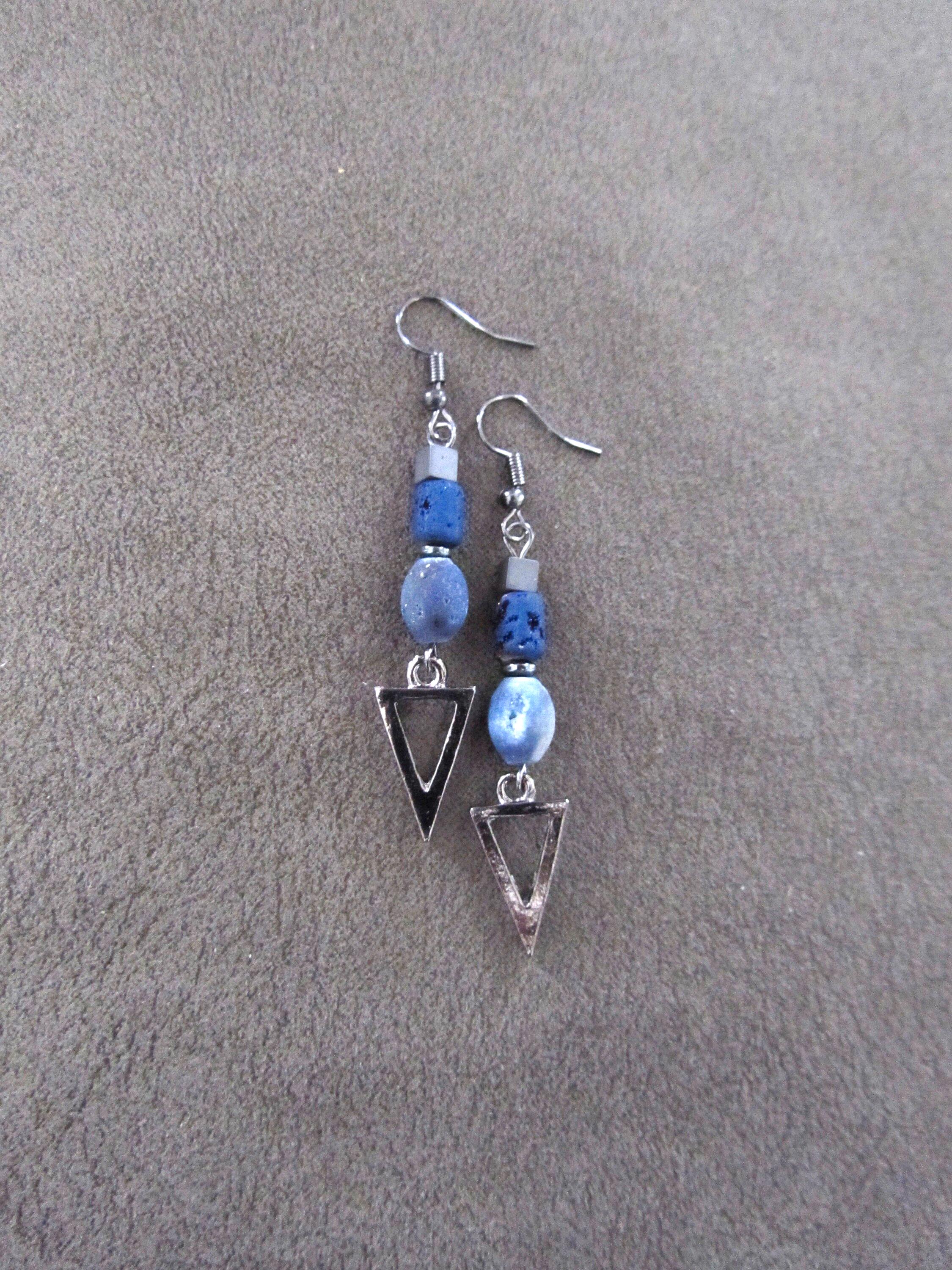 Gunmetal and blue druzy beaded earrings with French hooks