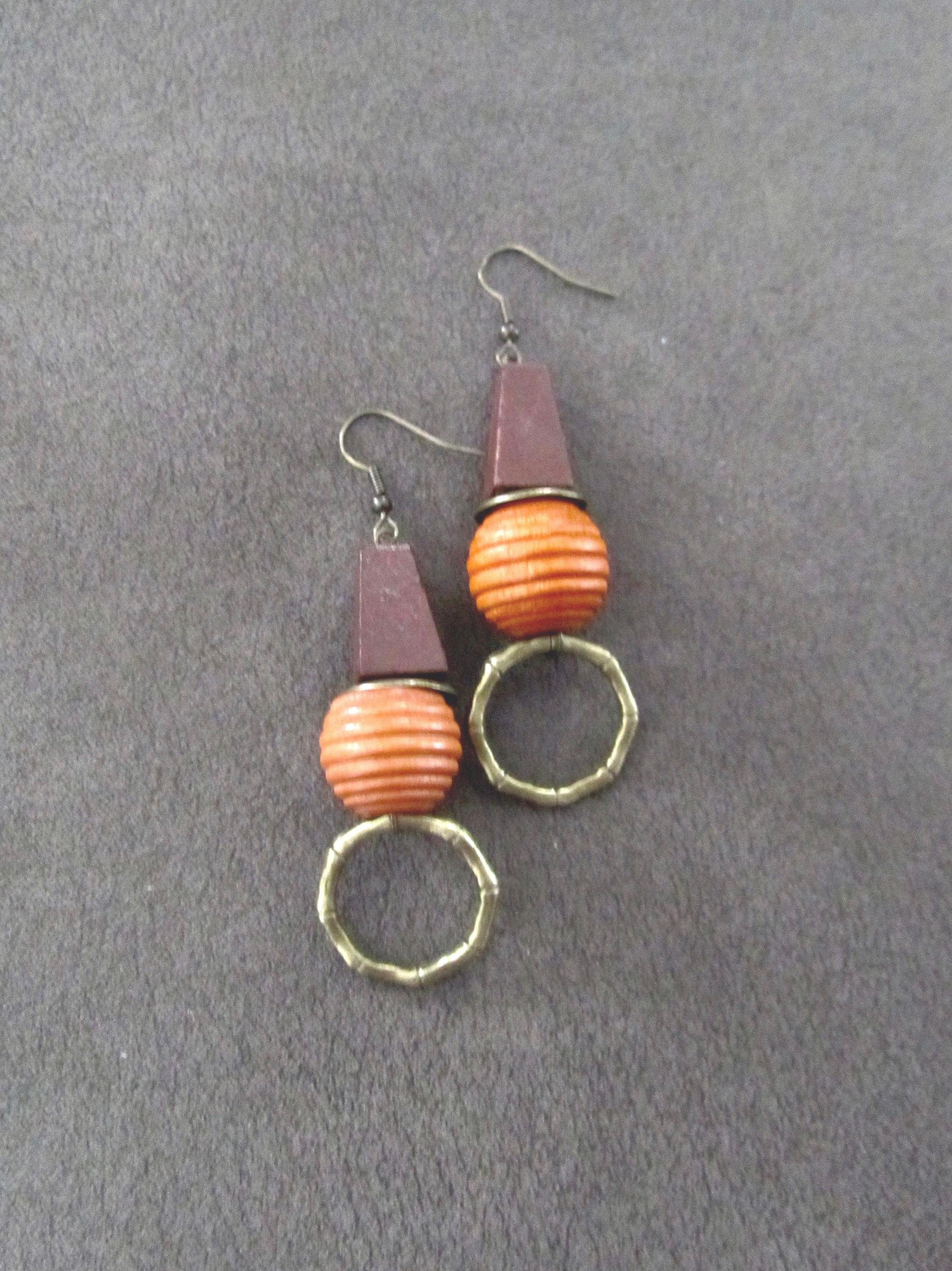 Wooden and bronze beads with French hooks