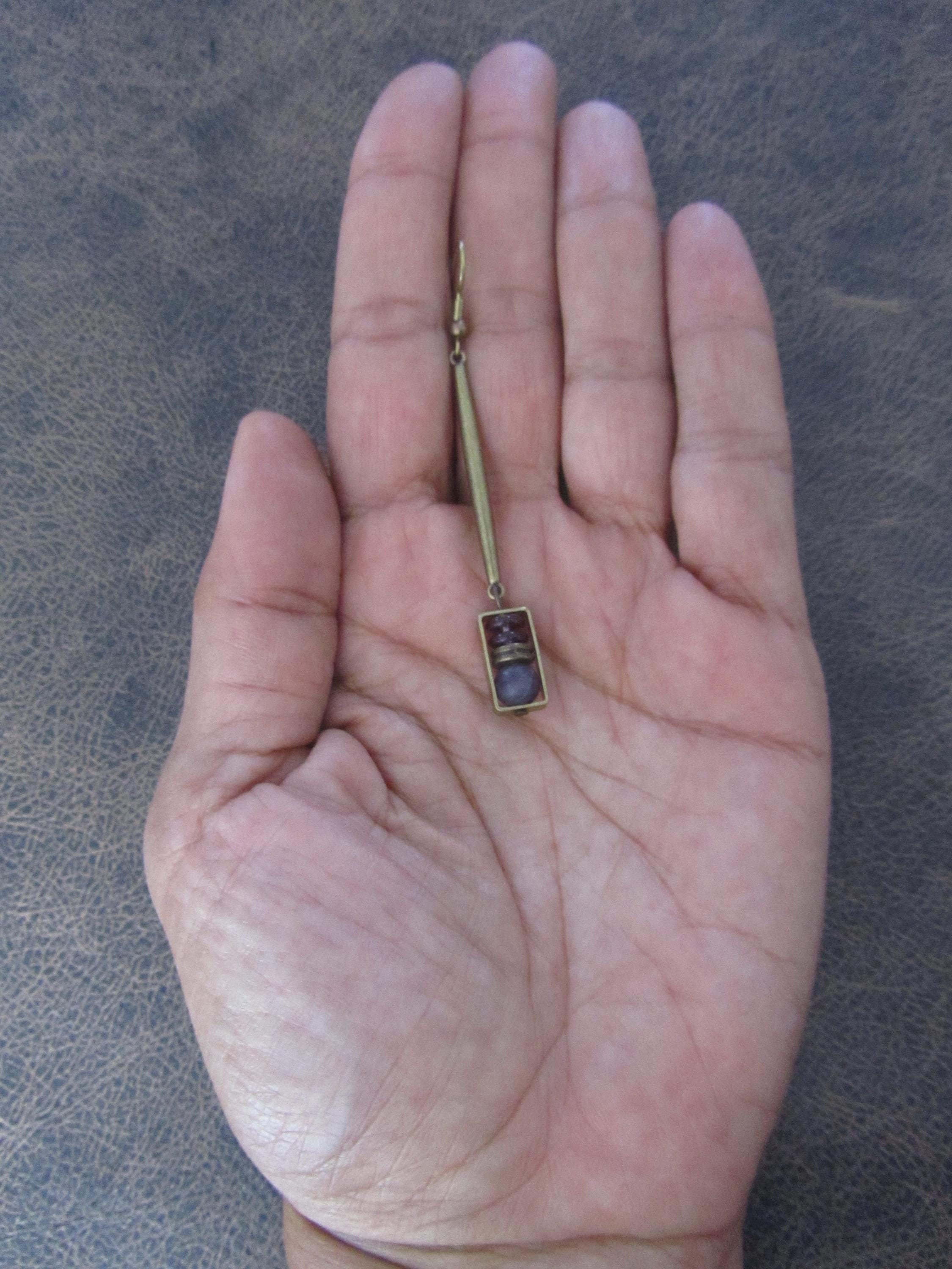 Purple frosted stone and bronze minimalist earrings on French hooks