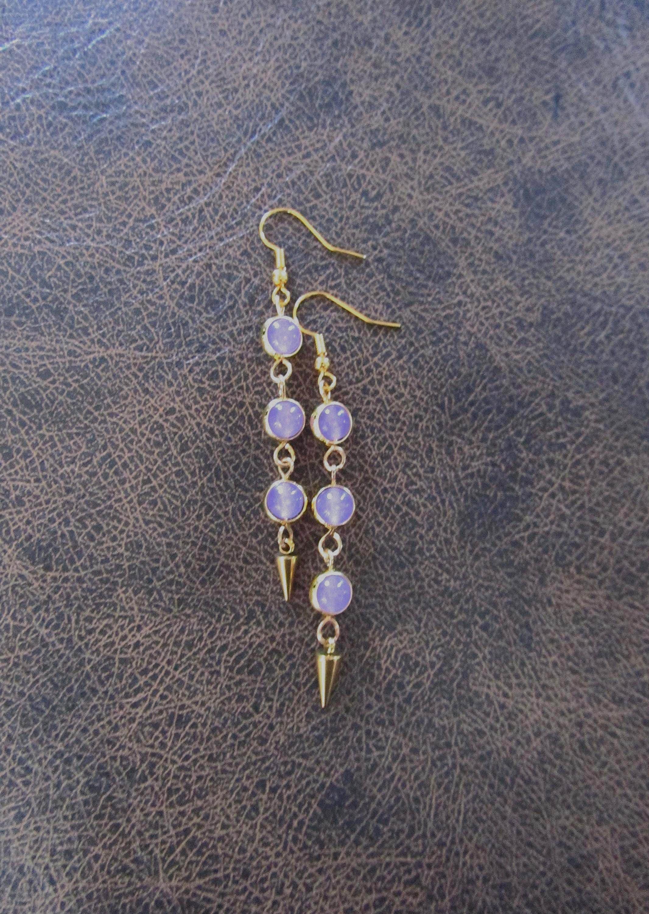 Brass and purple beaded earrings with French hooks