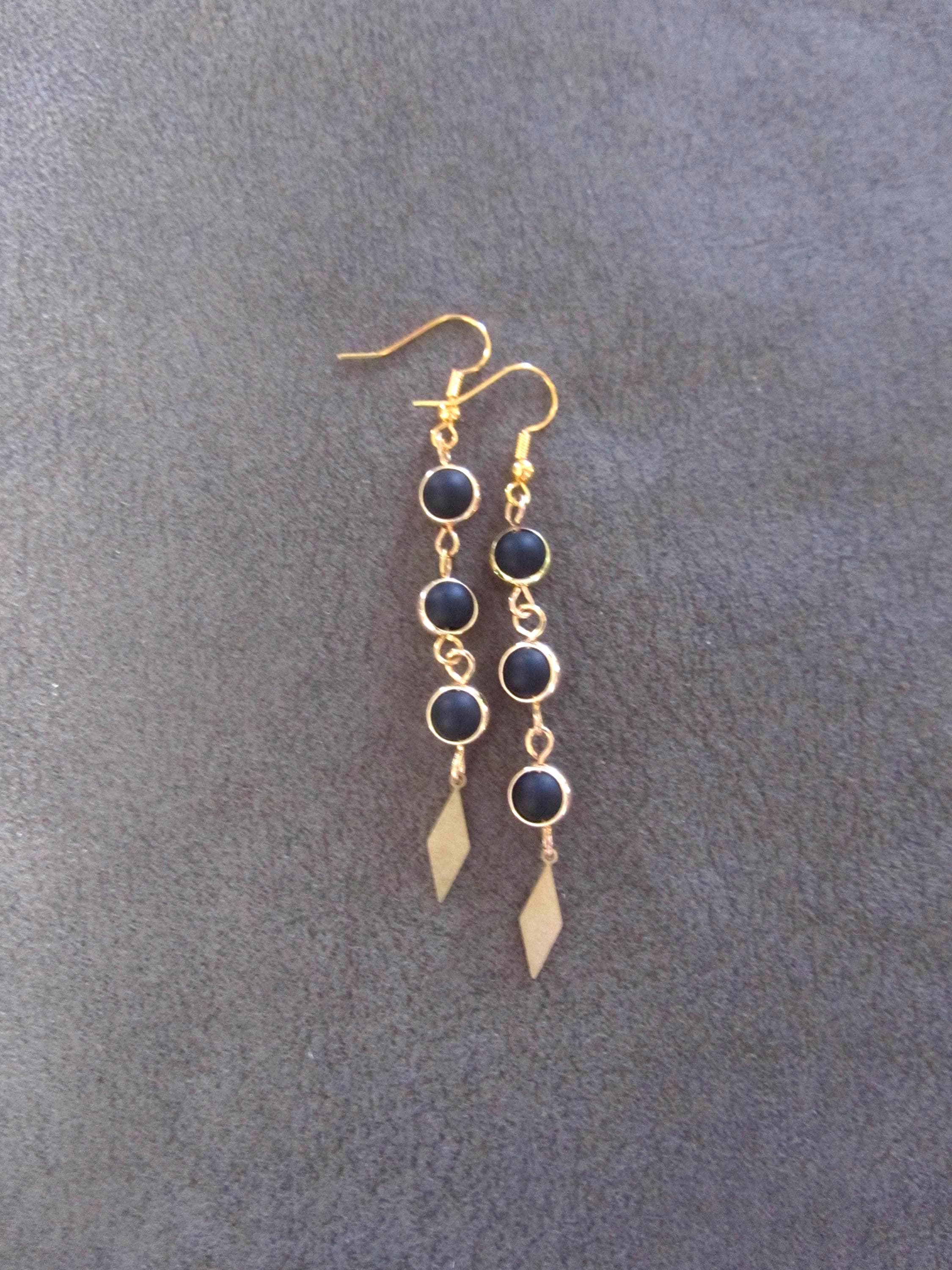 Brass and black beaded earrings with French hooks