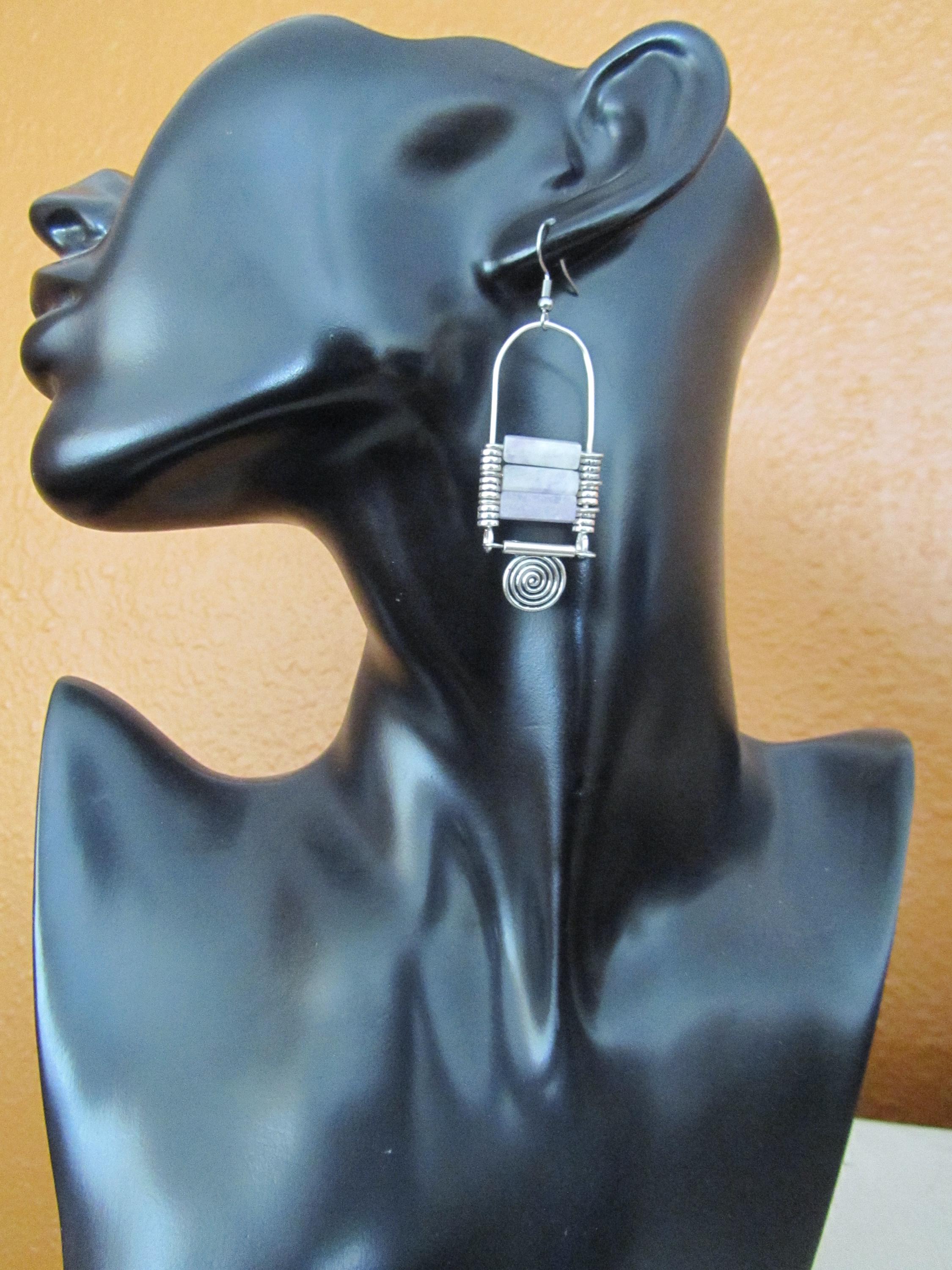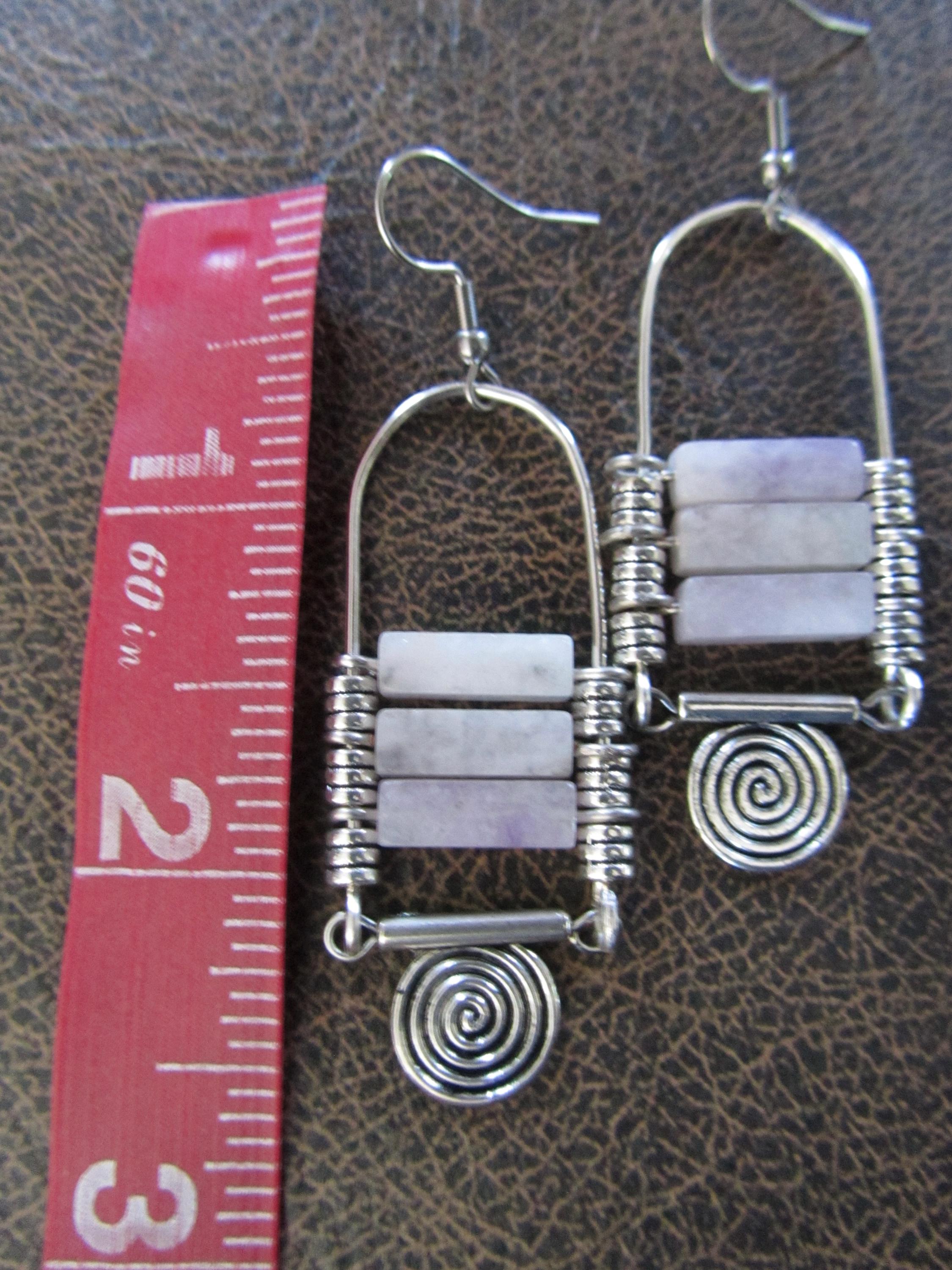 Silver chandelier earrings with purple agate beads and French hooks