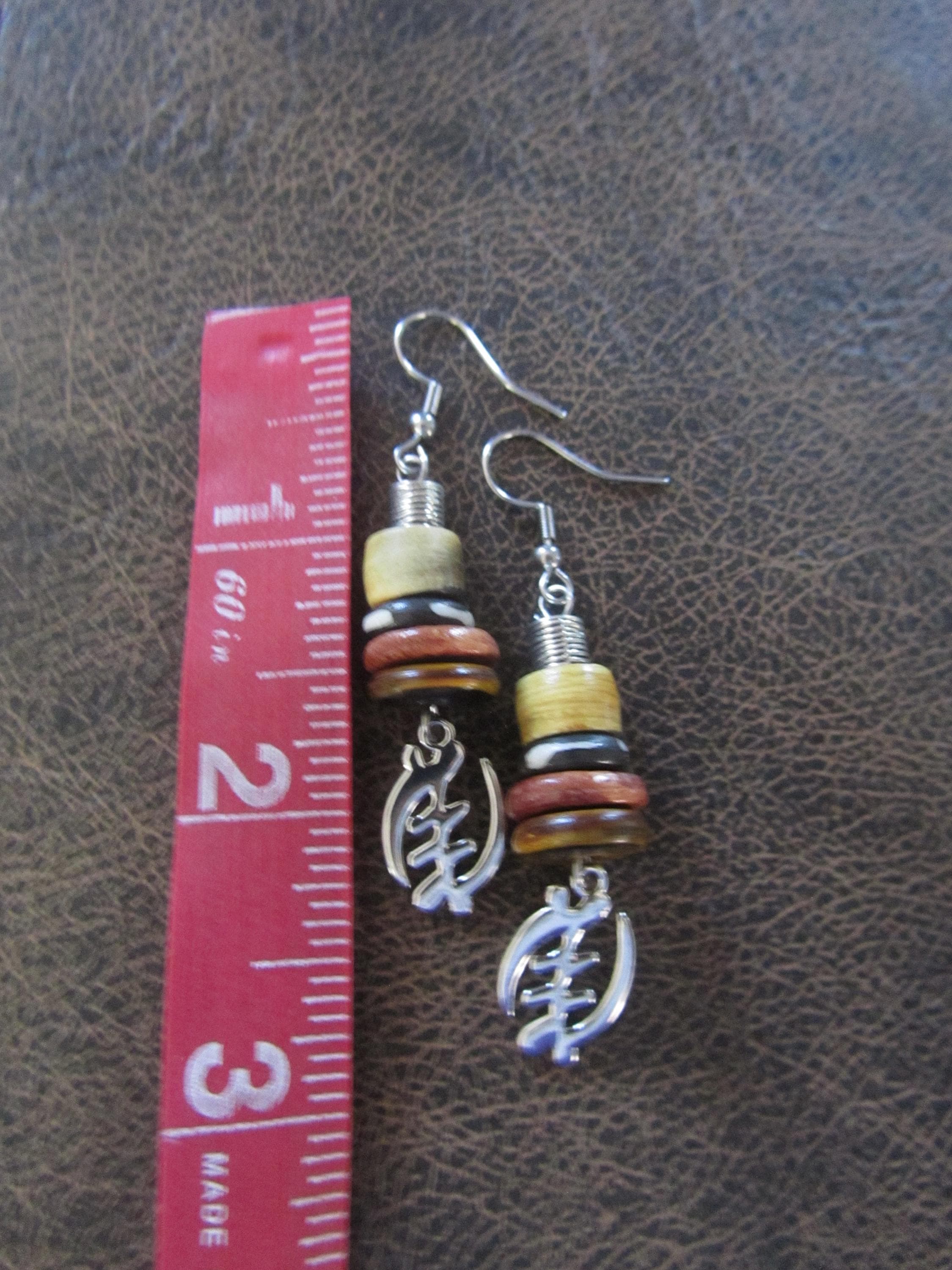 Adinkra symbol and bone earrings and French hooks