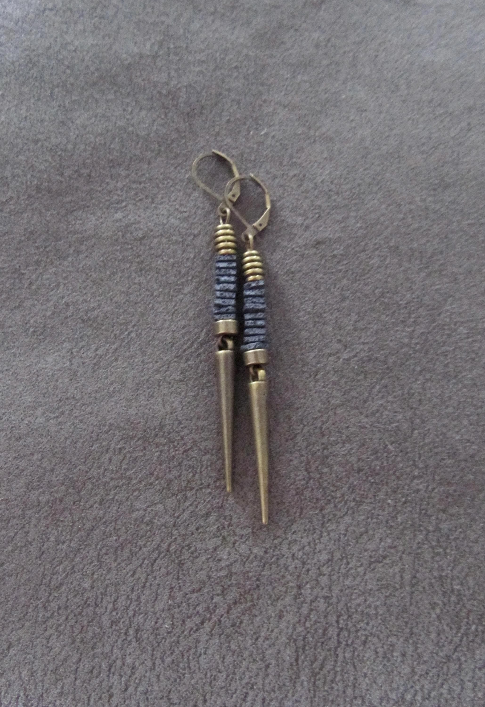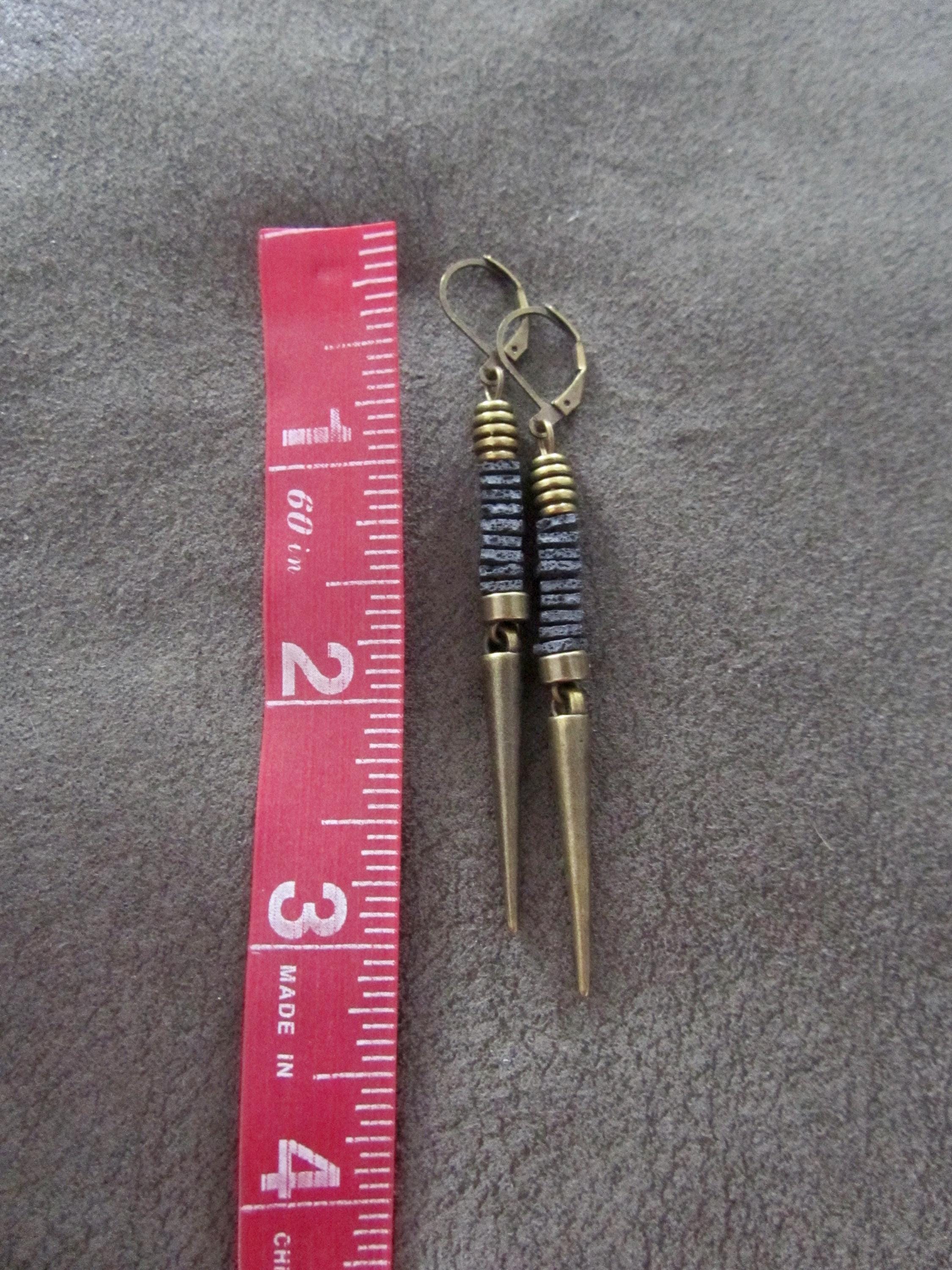 Minimalist gray lava rock, and bronze earrings with leverbacks