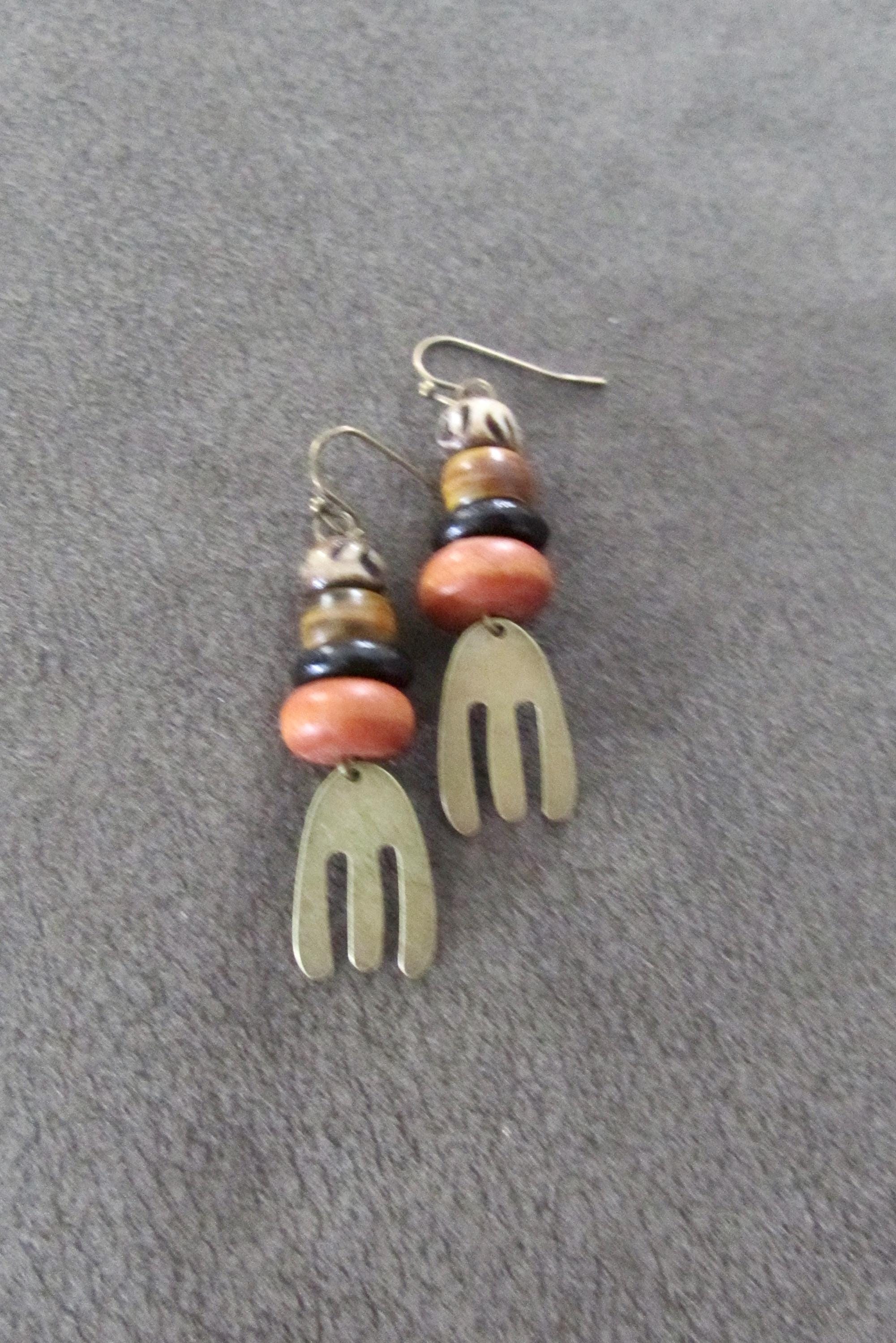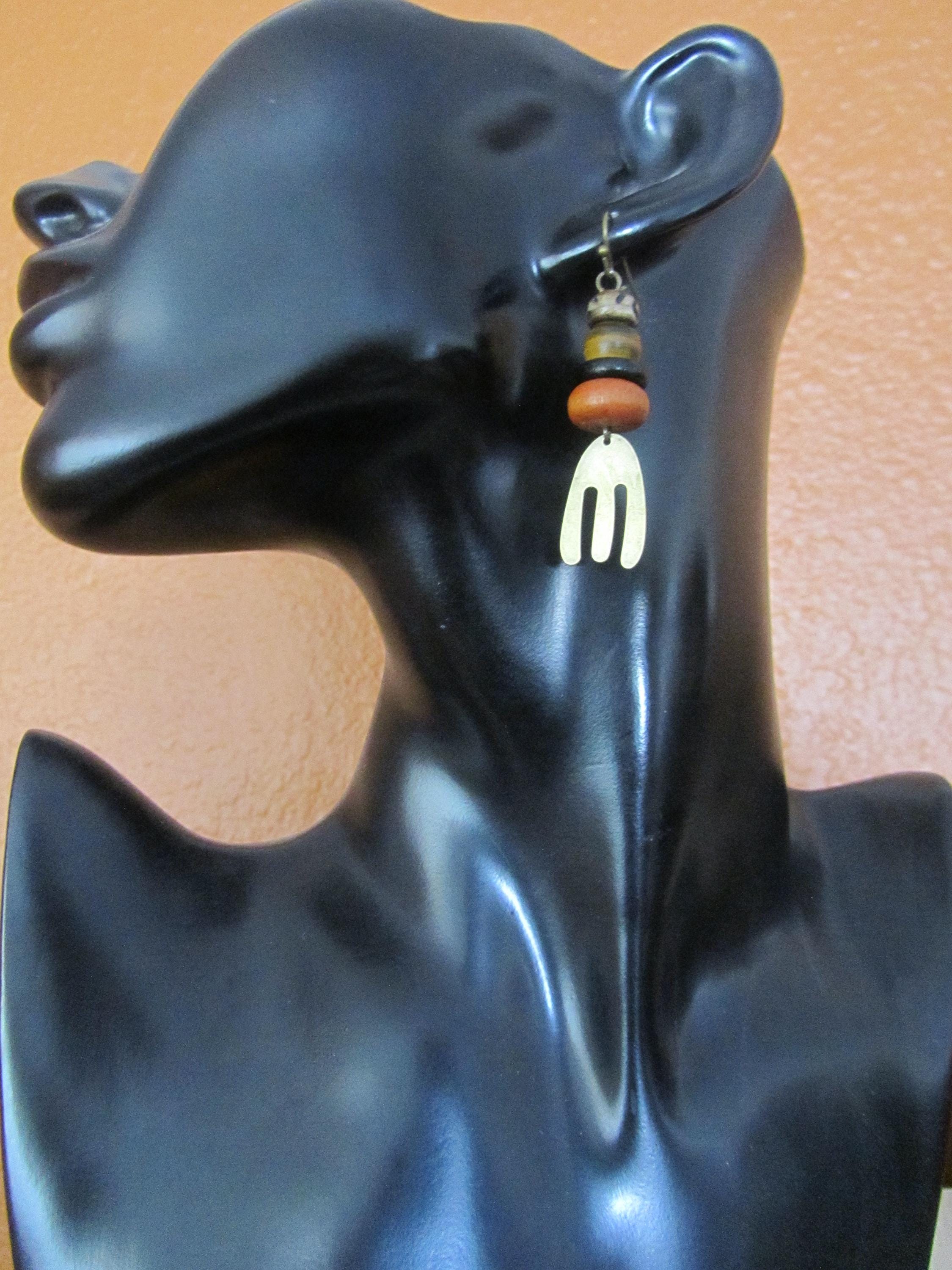 Bronze and bone earrings with French hooks