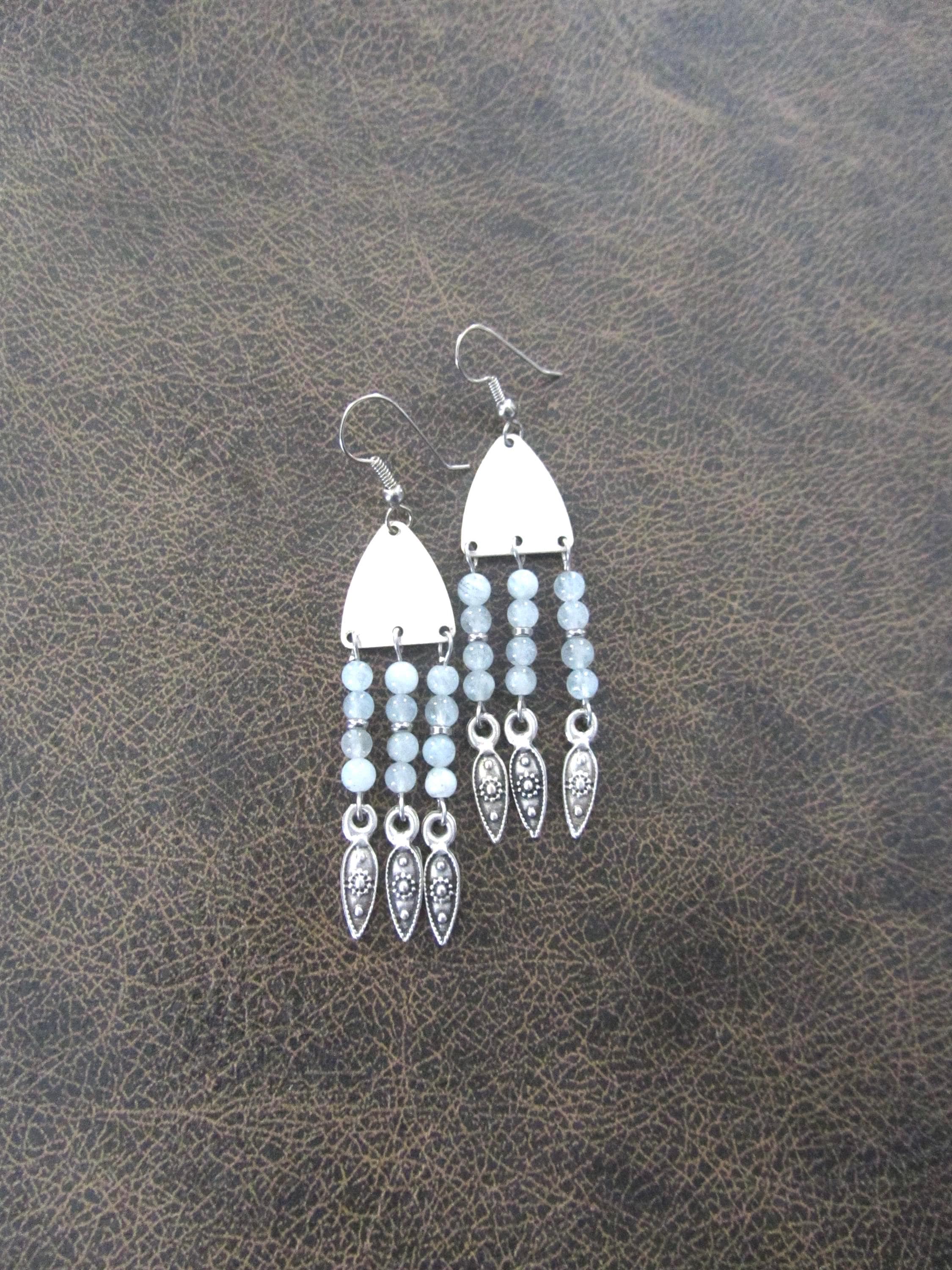 Chandelier earrings with aquamarine and matte silver beads and French hooks