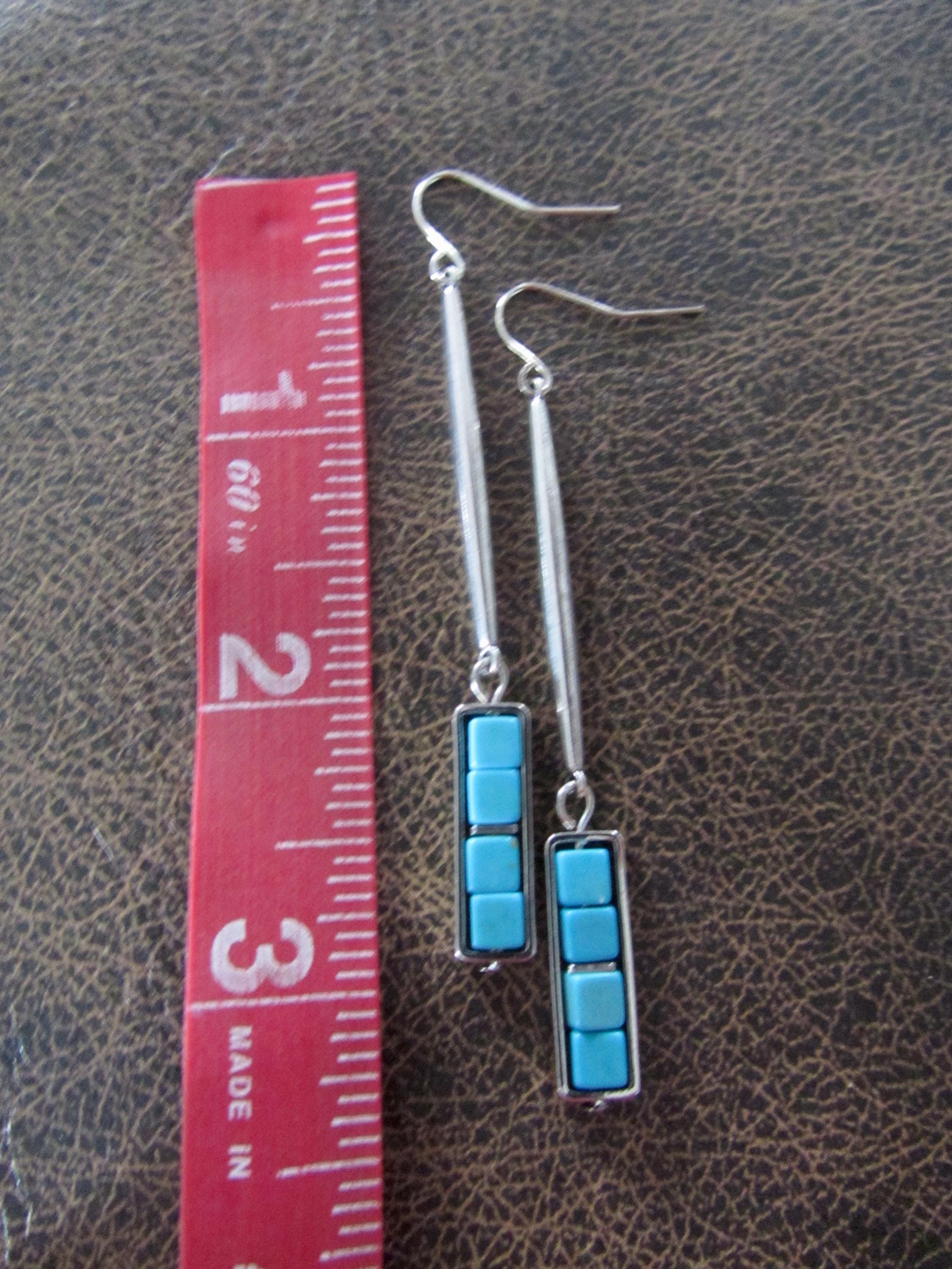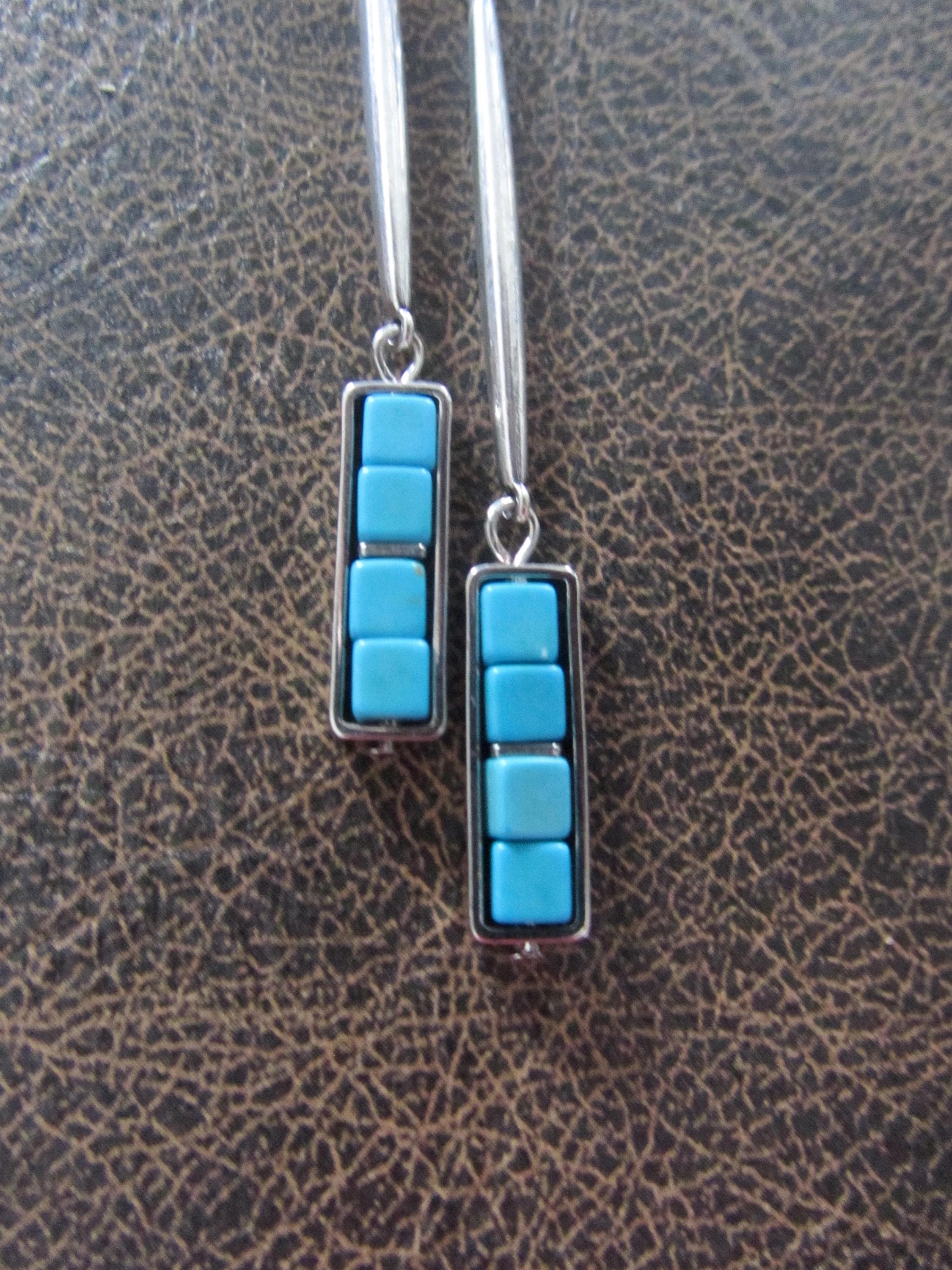 Blue howlite and silver dangle earrings on French hooks
