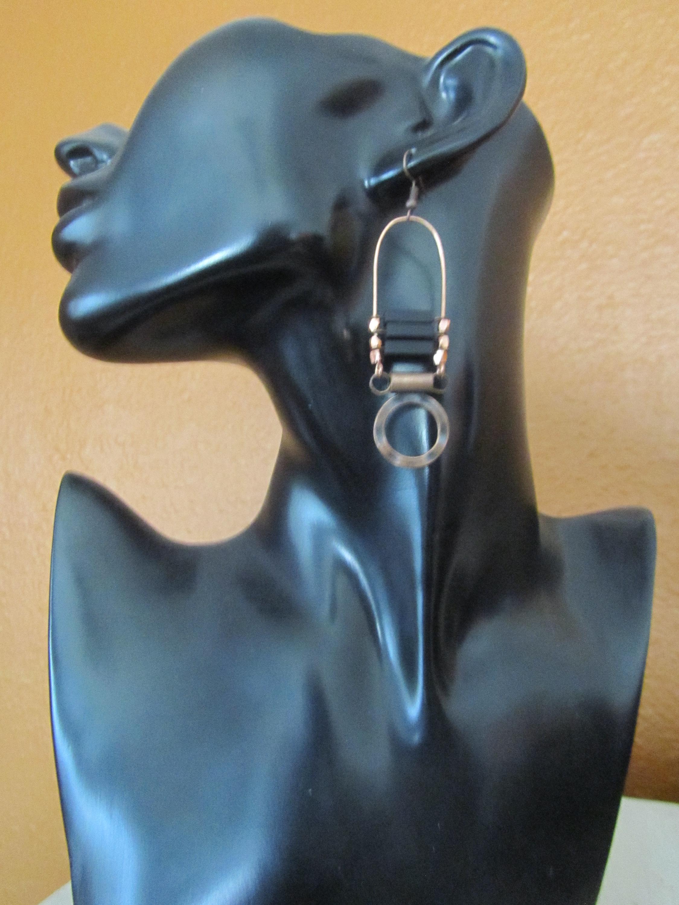 Chandelier earrings with black stone and copper French hooks