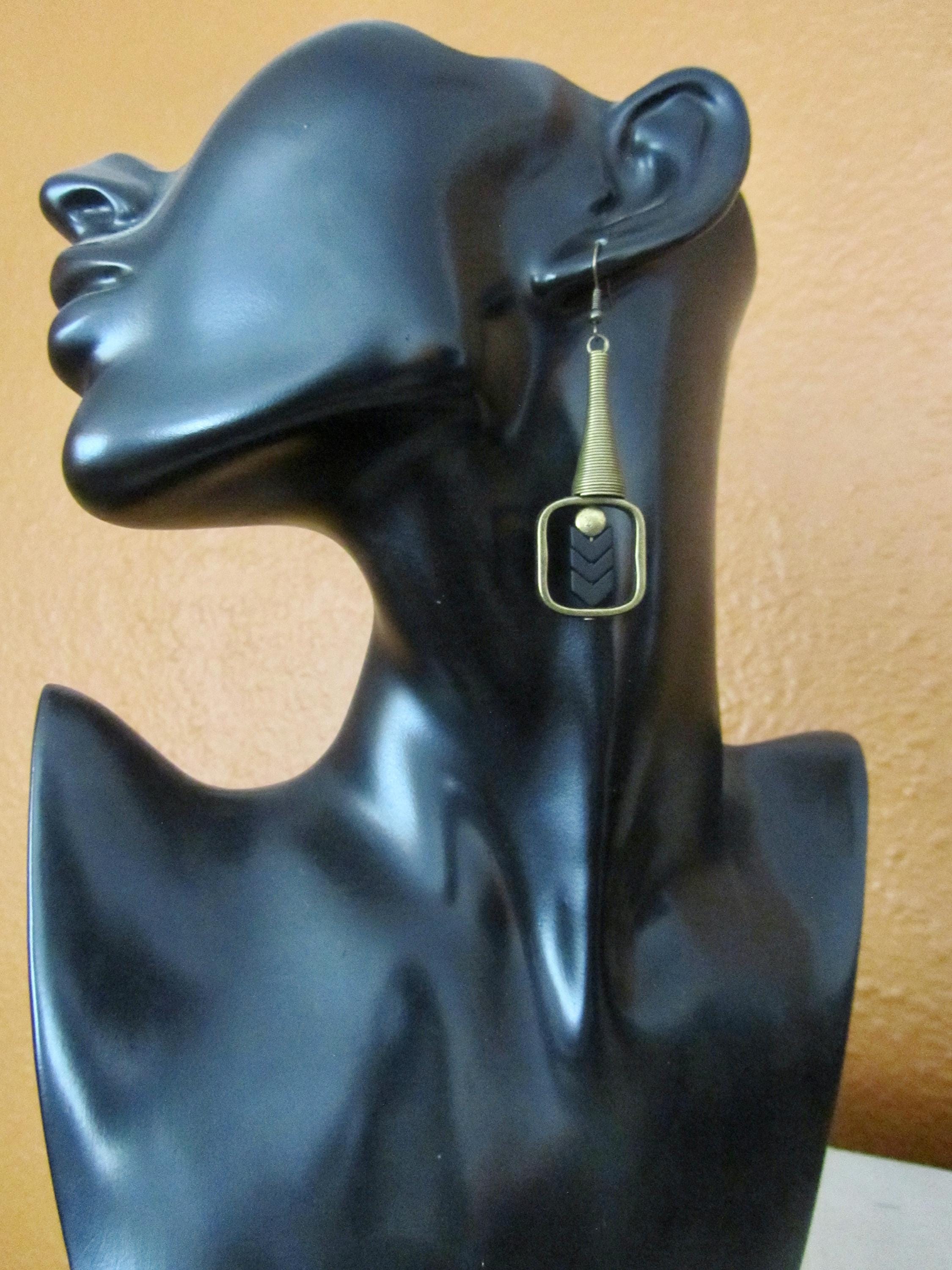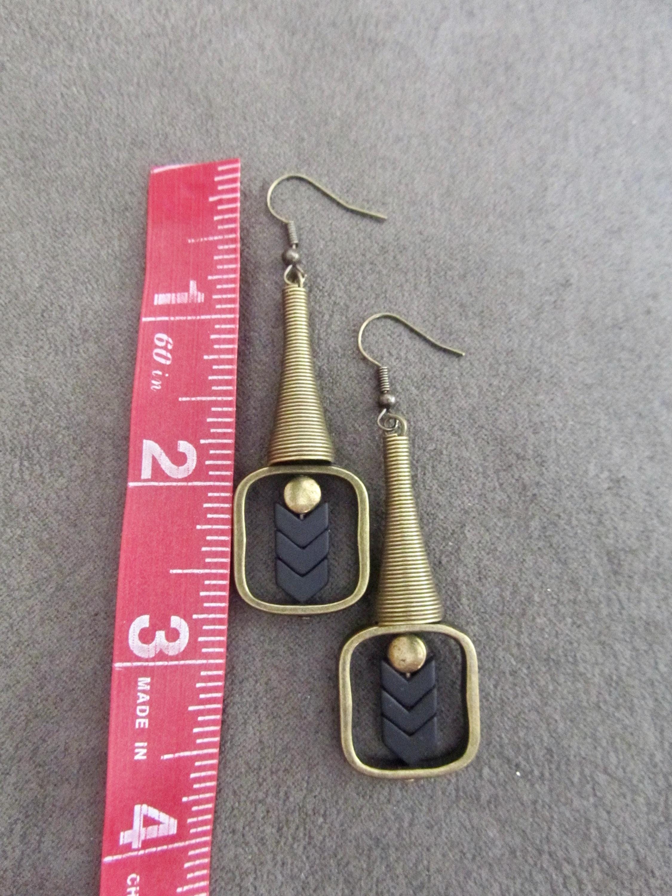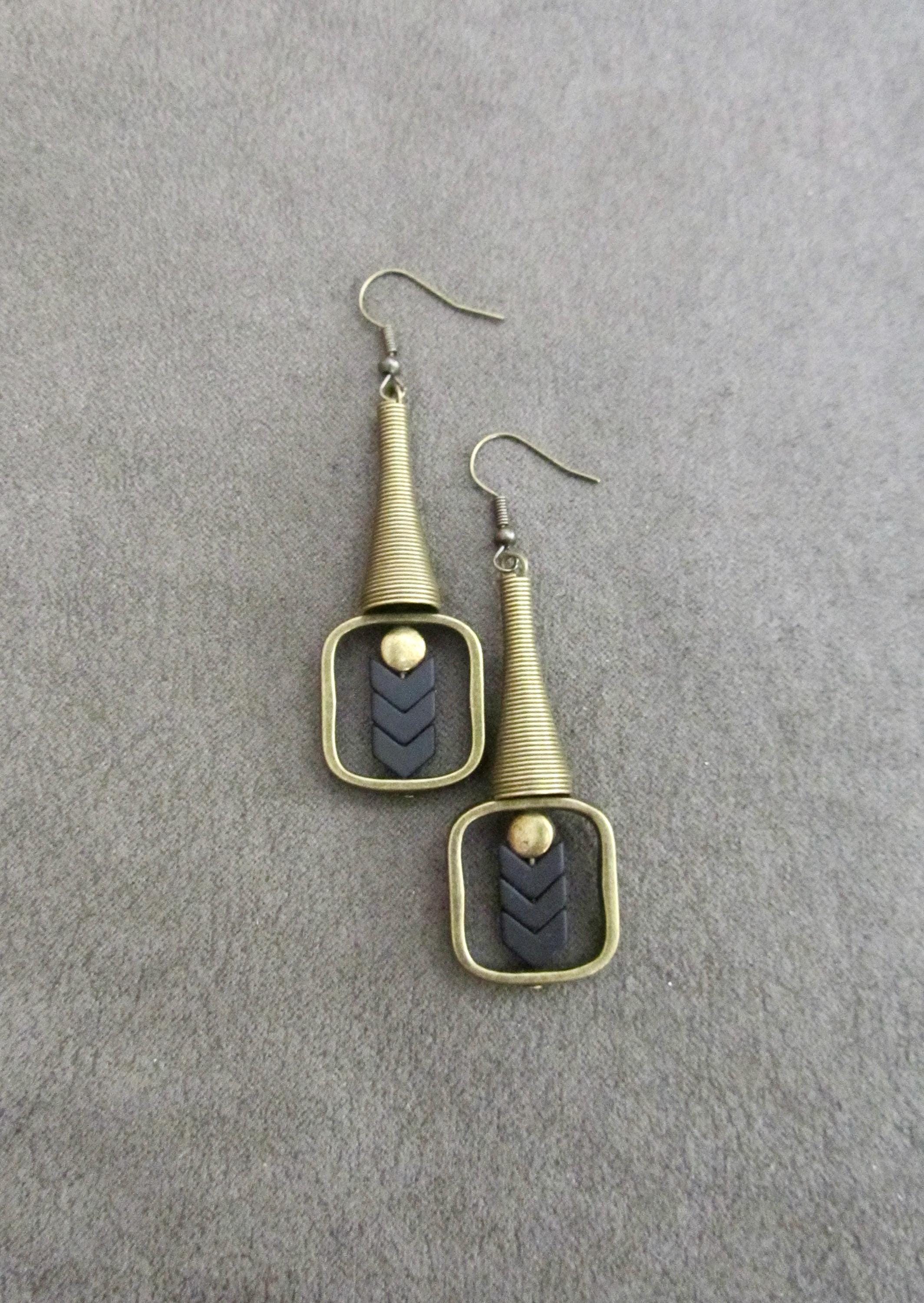 Bronze earrings with black beads and French hooks