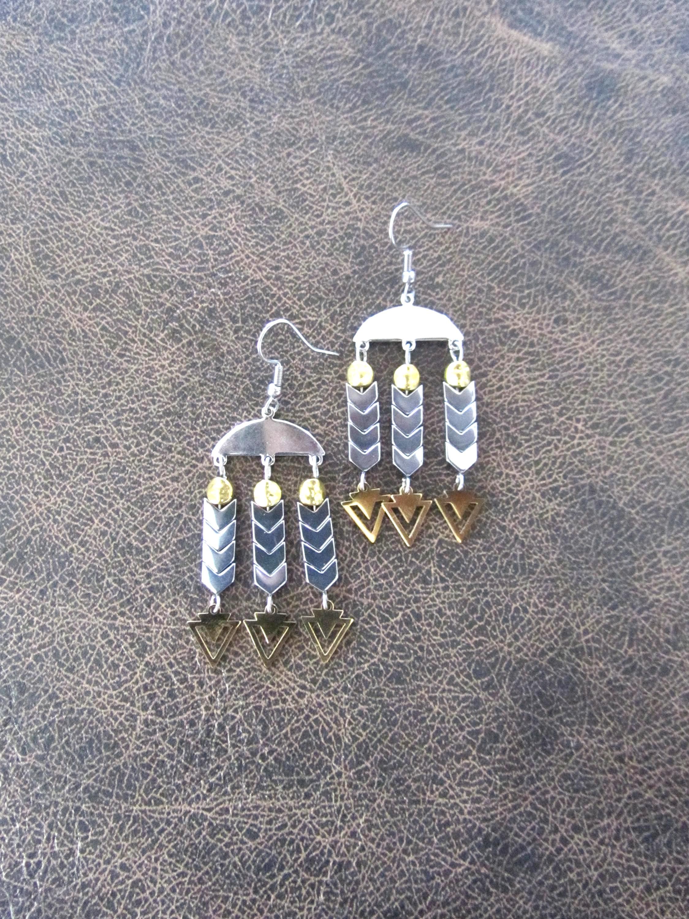 Gold stainless steel and silver hematite chandelier earrings with French hooks