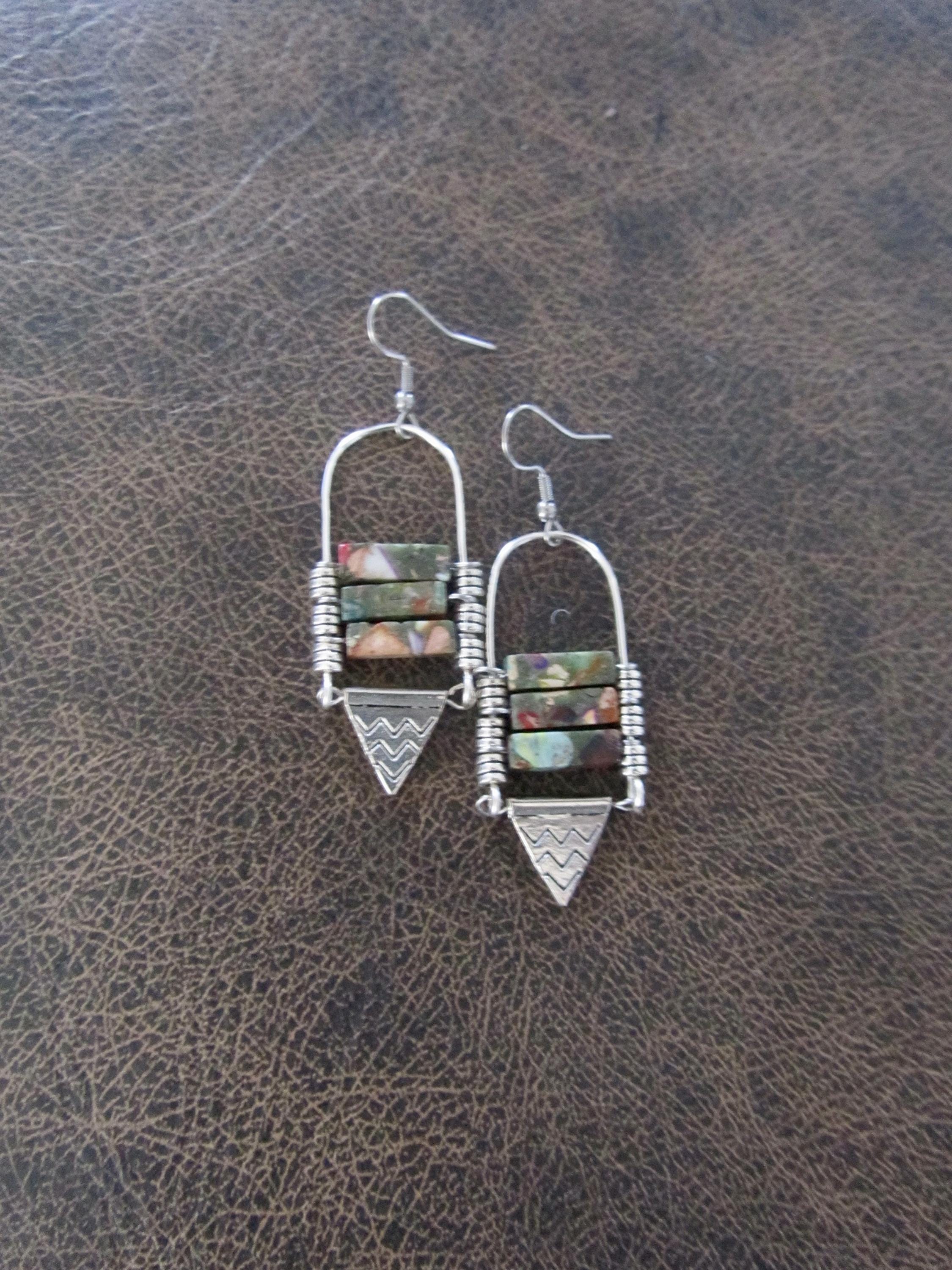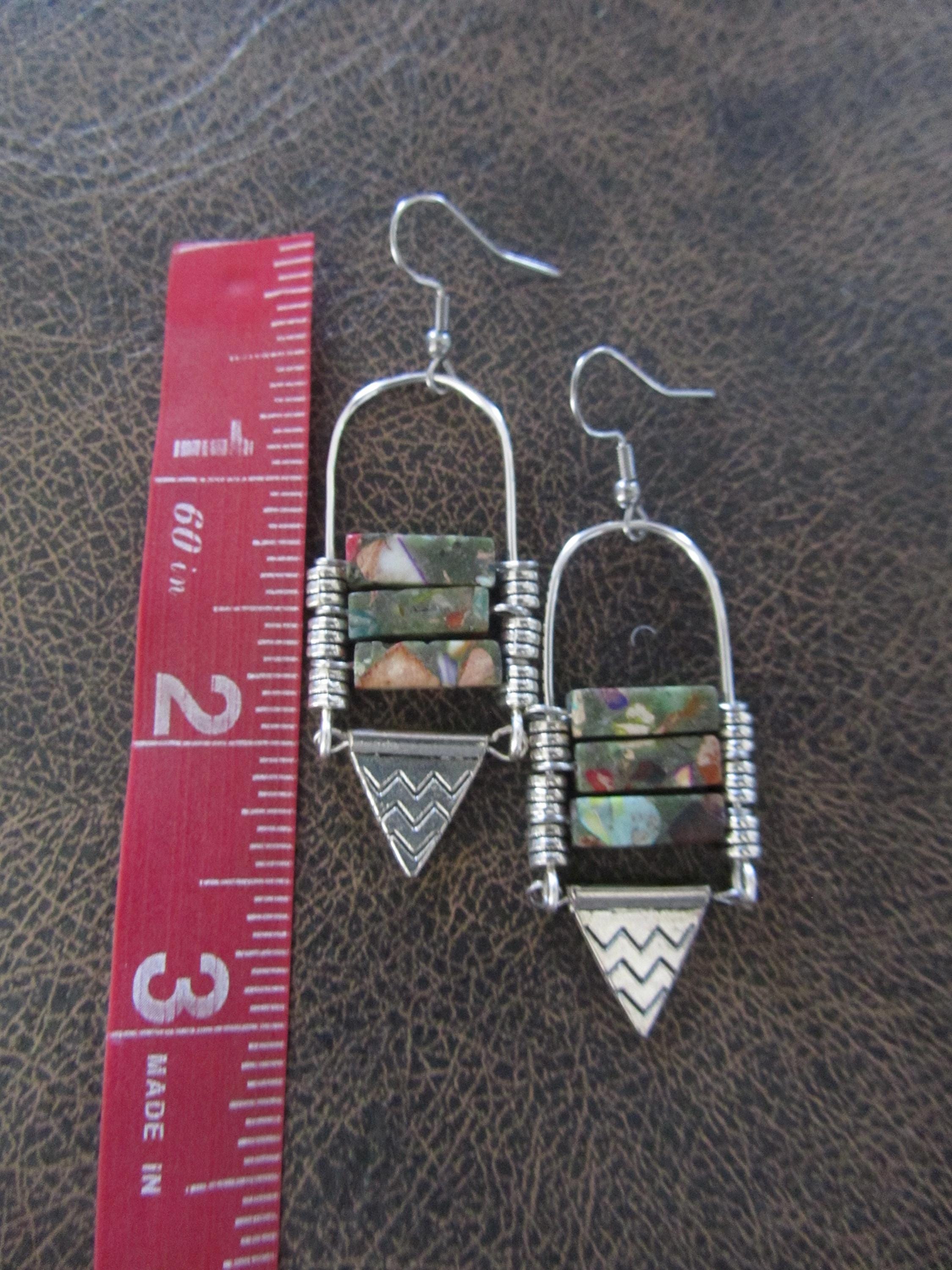 Chandelier earrings with mosaic jasper stone and silver French hooks