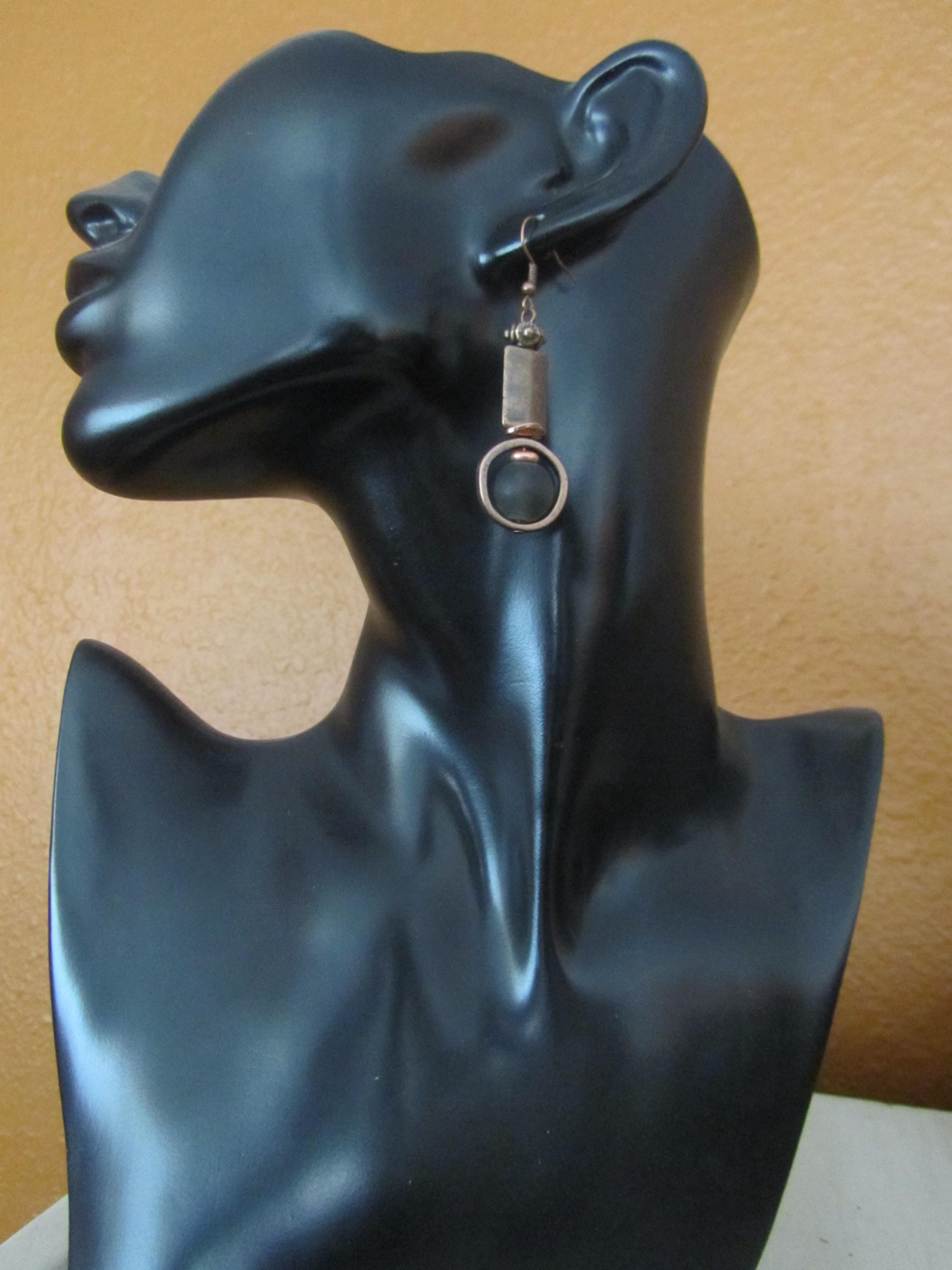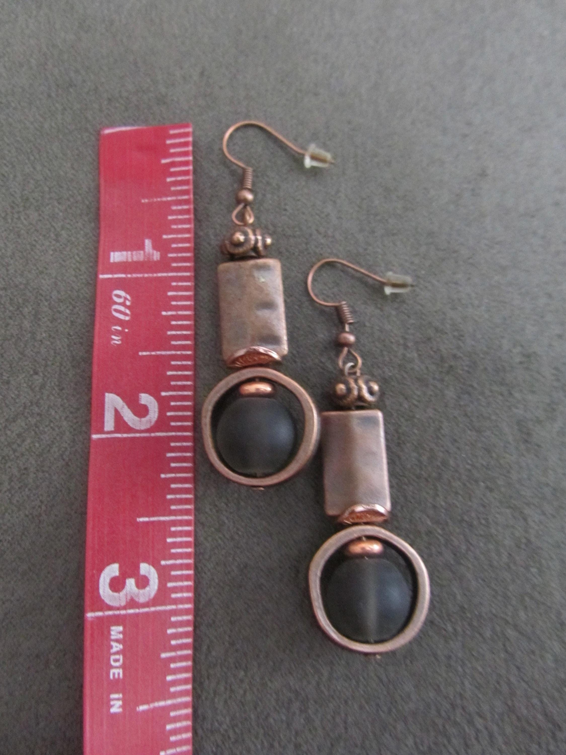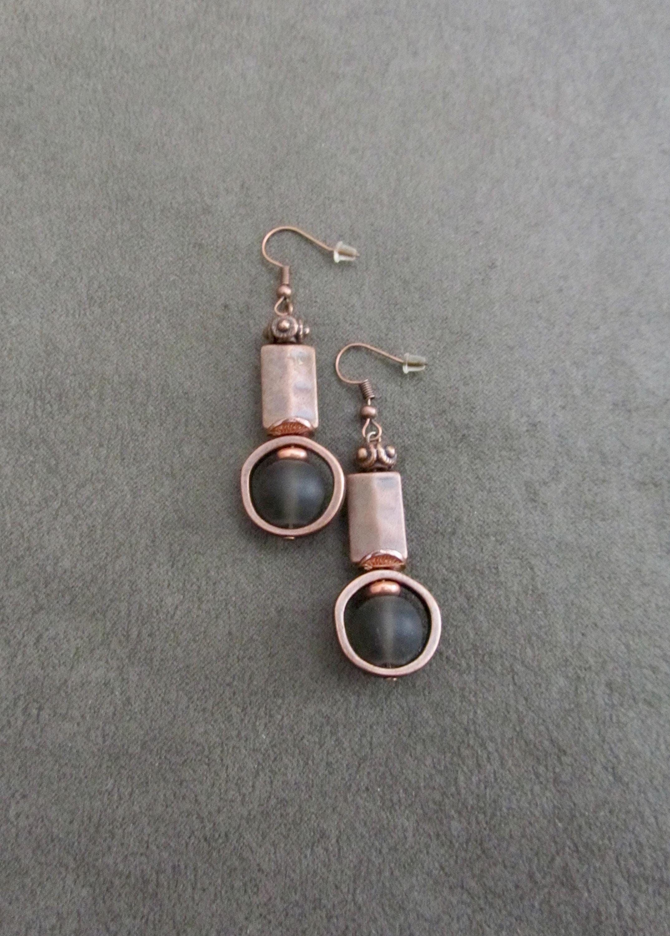 Frosted glass and copper geometric earrings with French hooks