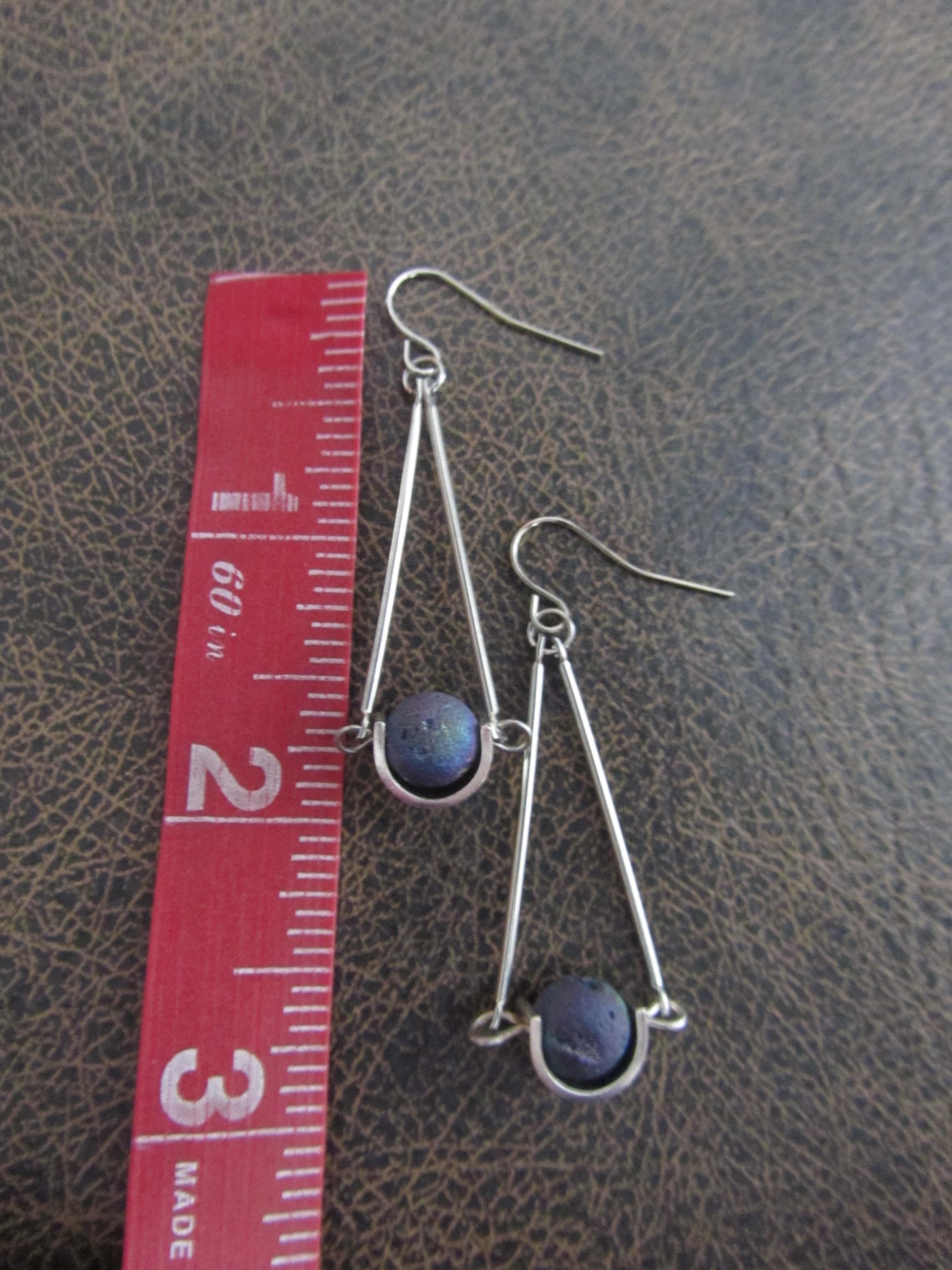 Silver and multicolor druzy agate pendulum earringsFrench hooks