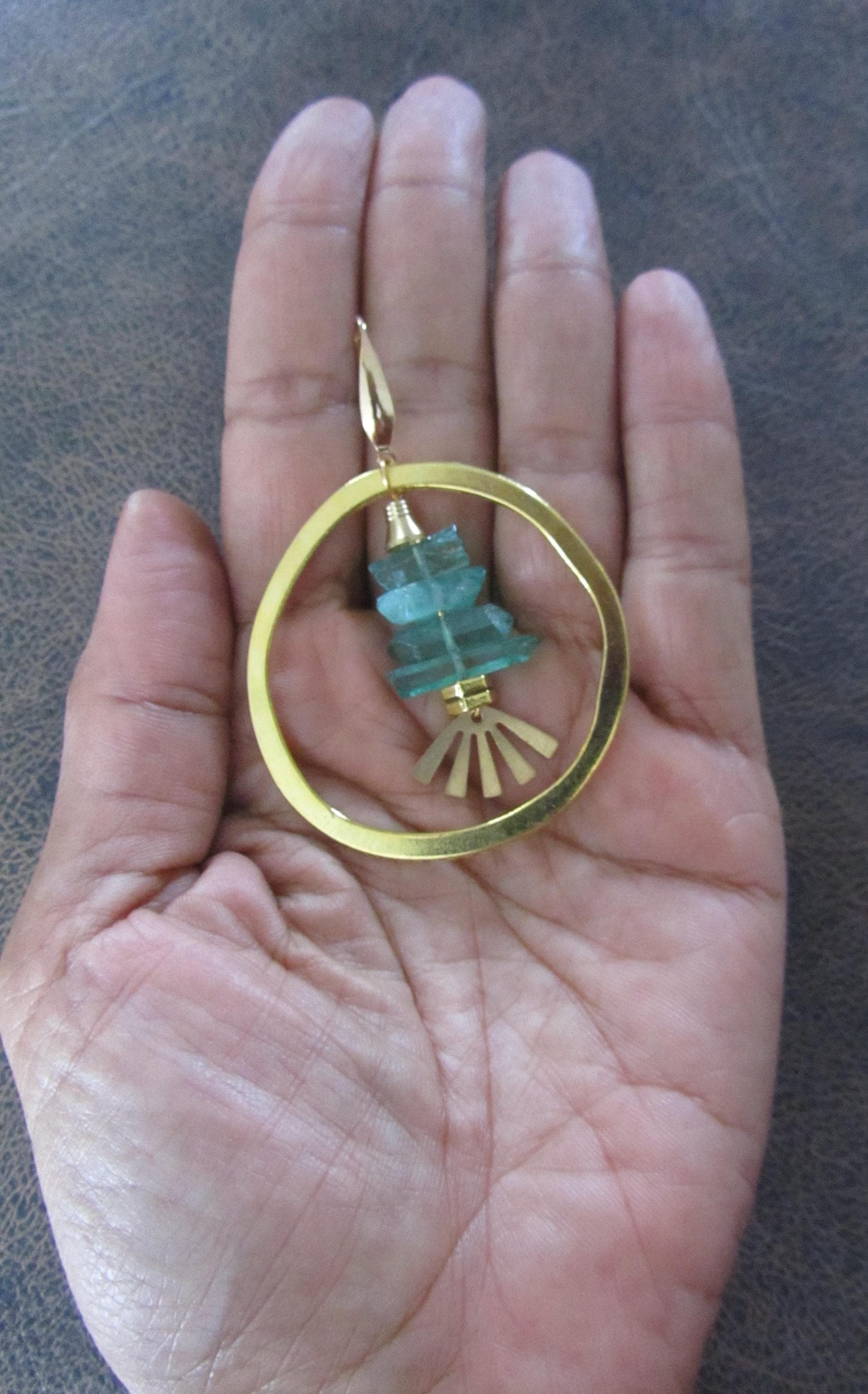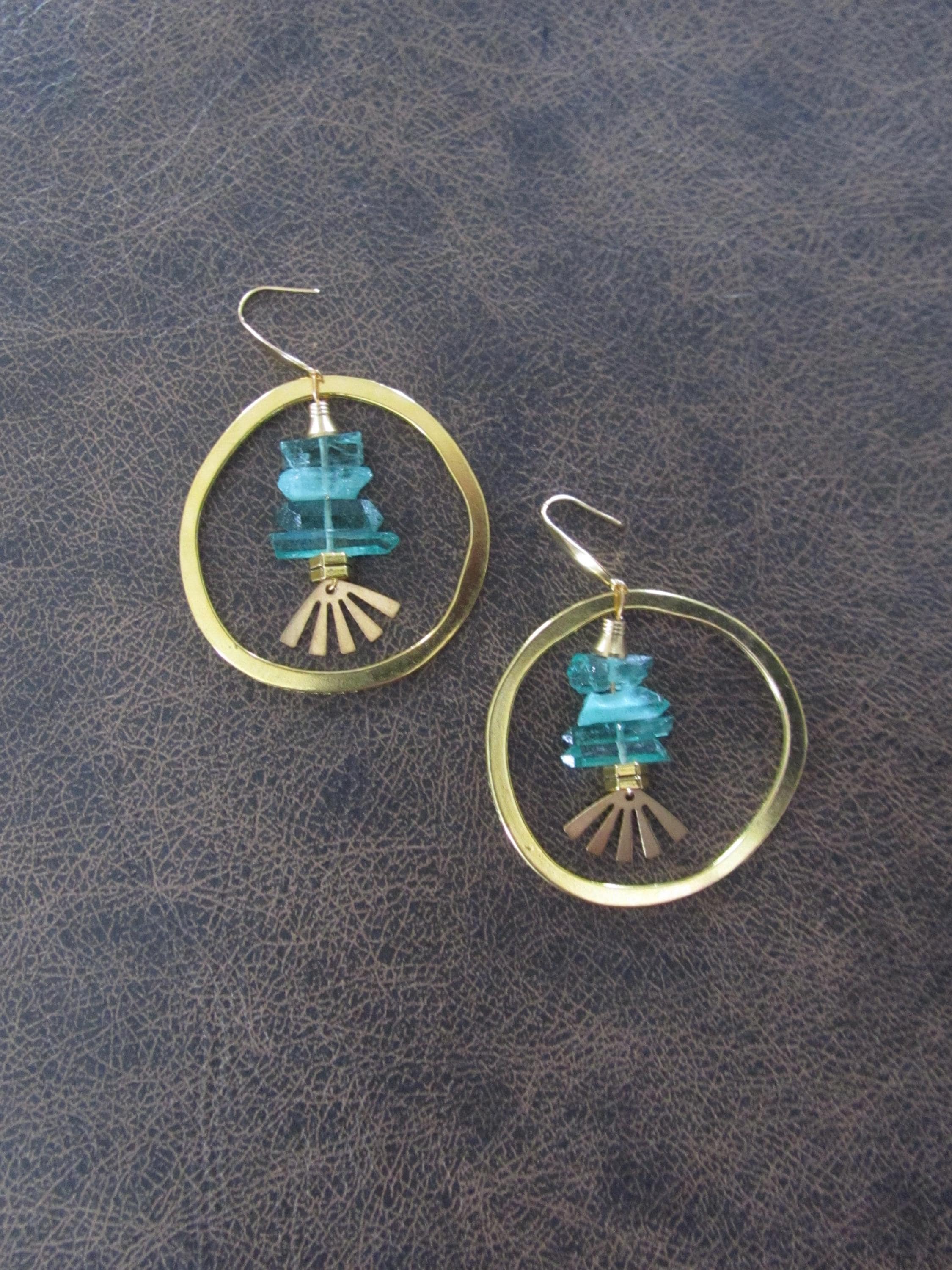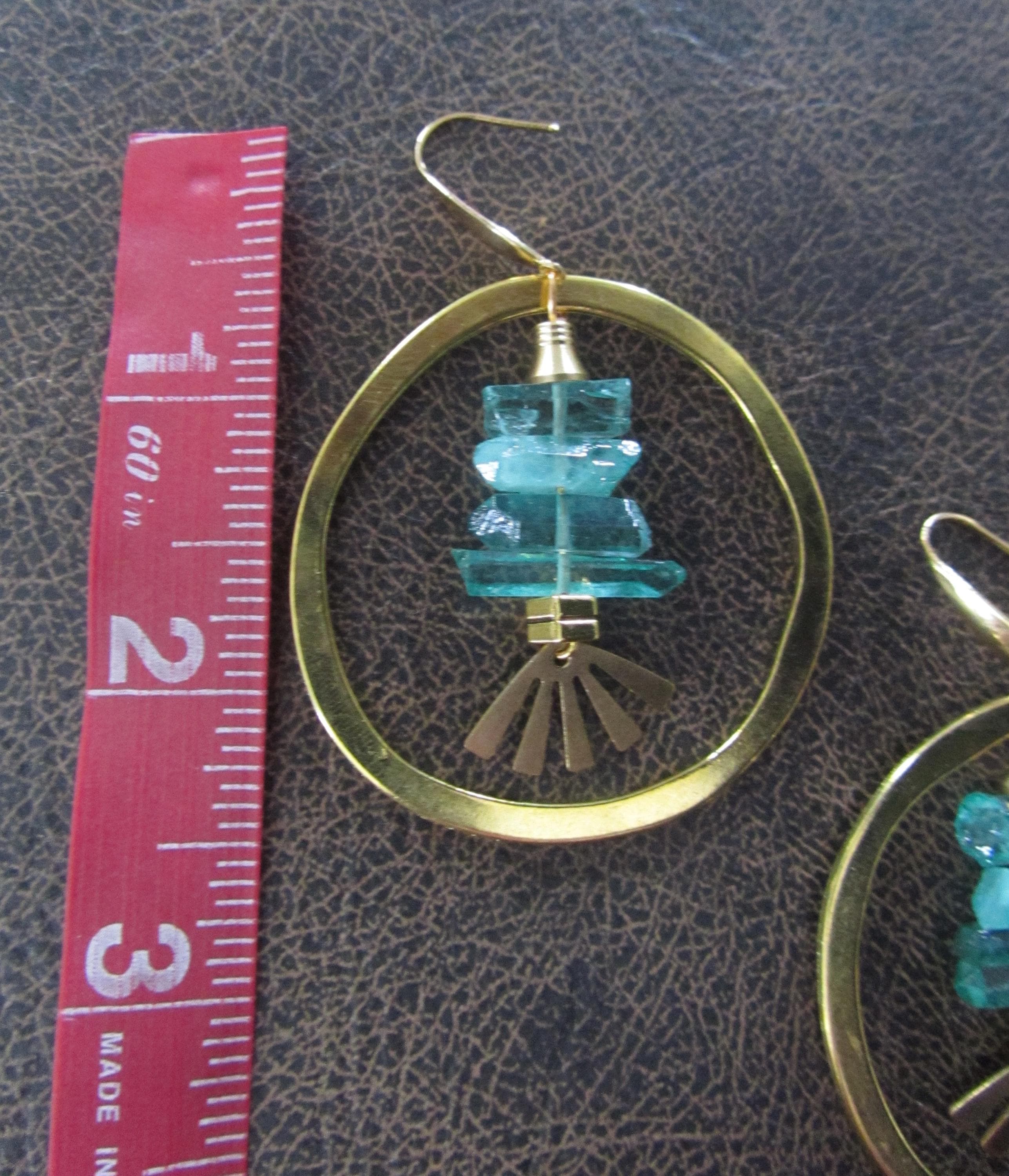 Green crystal and gold hoop earrings