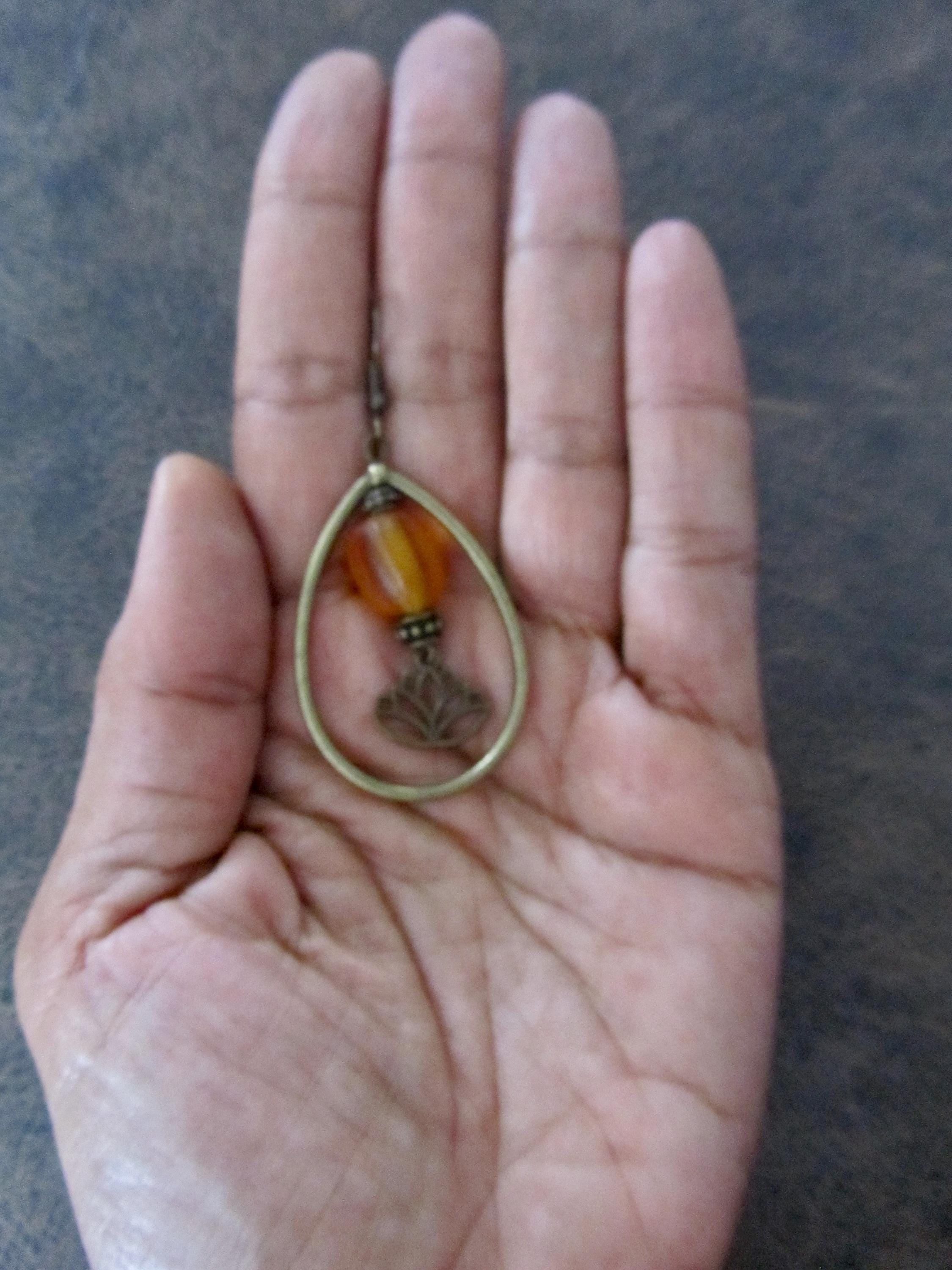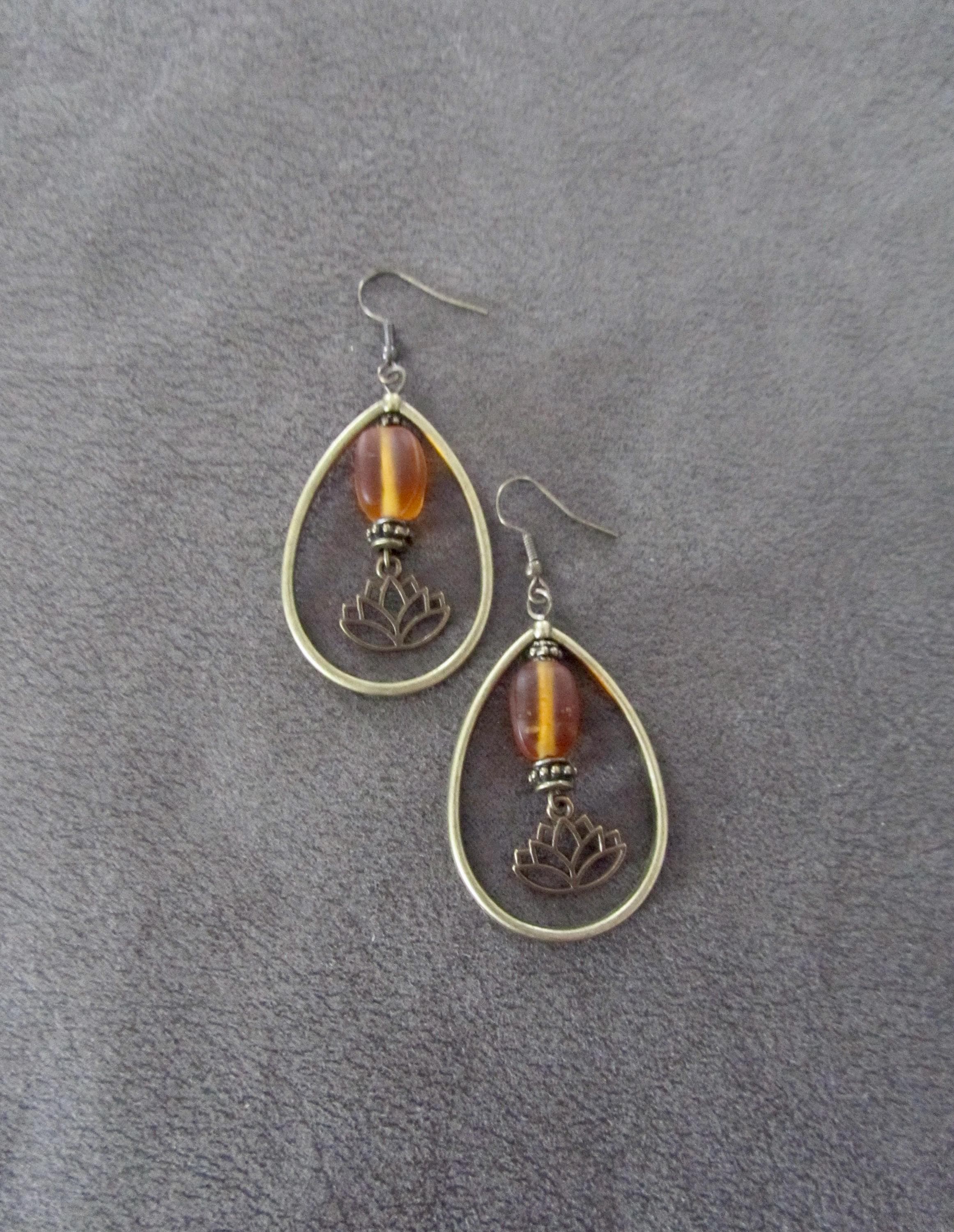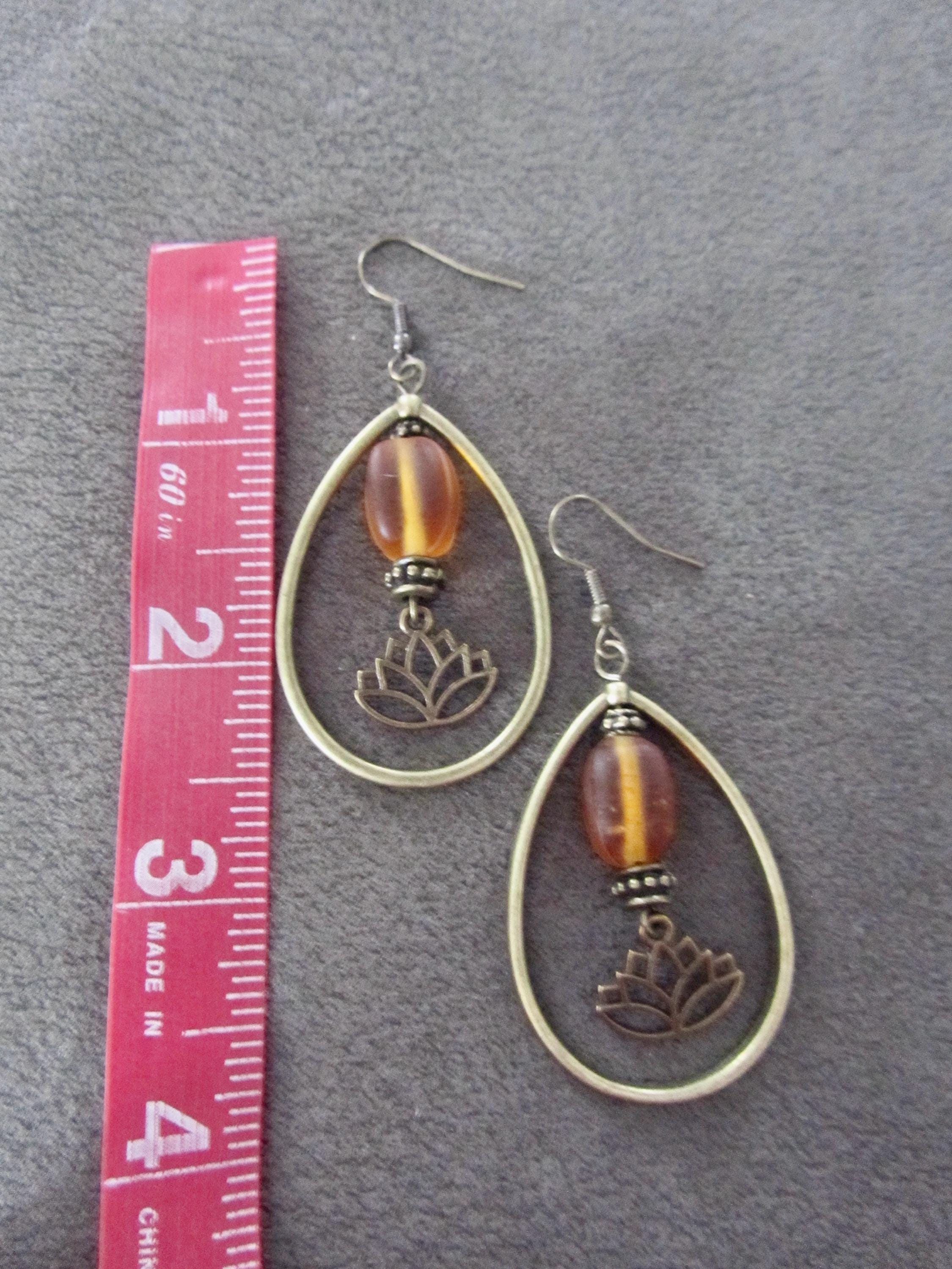 Frosted glass and bronze earrings on French hooks.