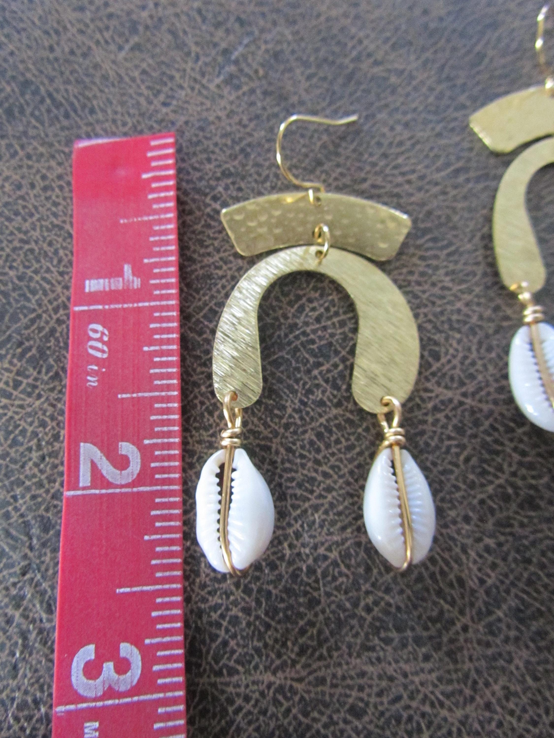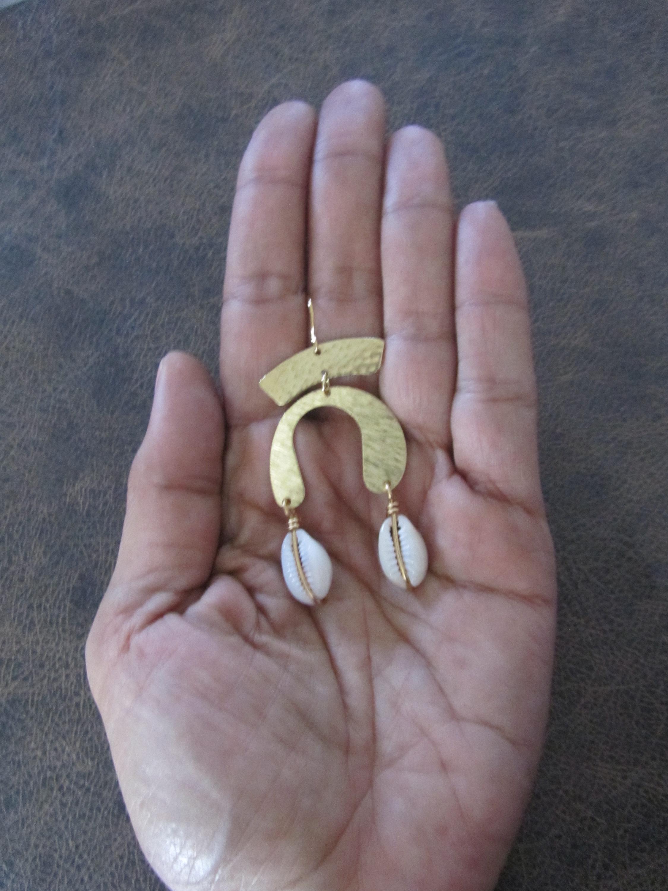 Cowrie shells and hammered raw brass beads with French hooks