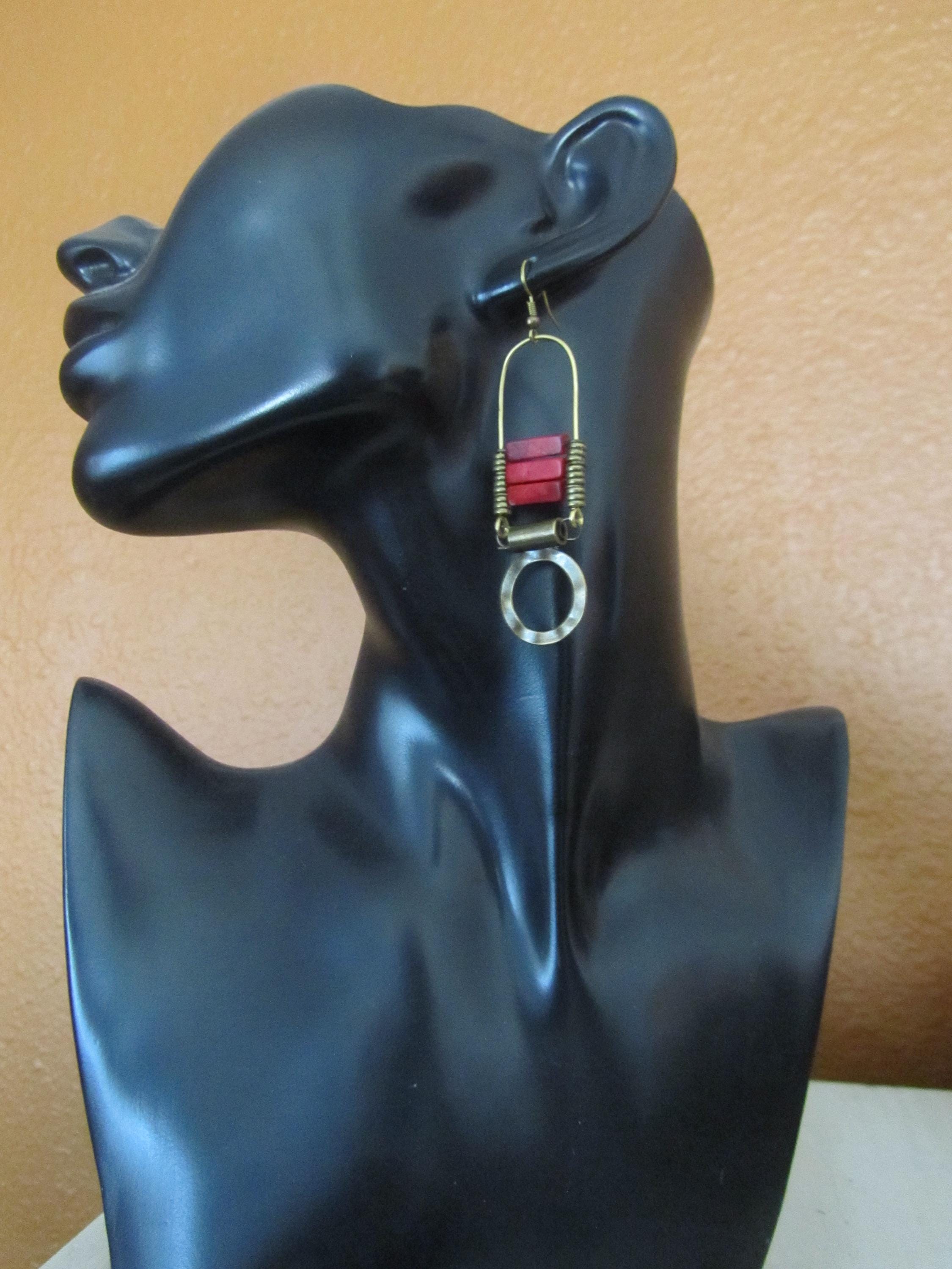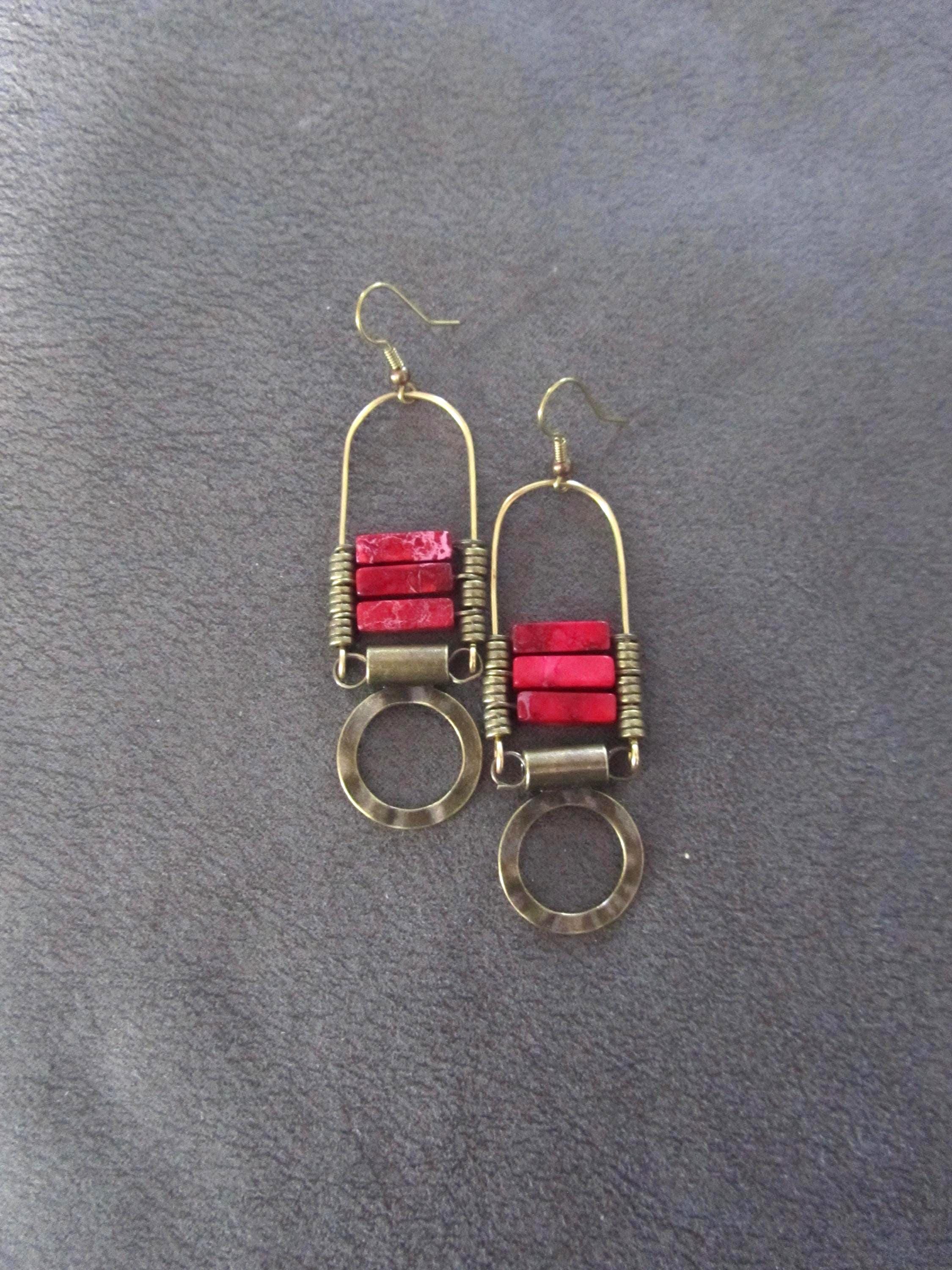 Green sediment jasper tribal chandelier earrings with French hooks