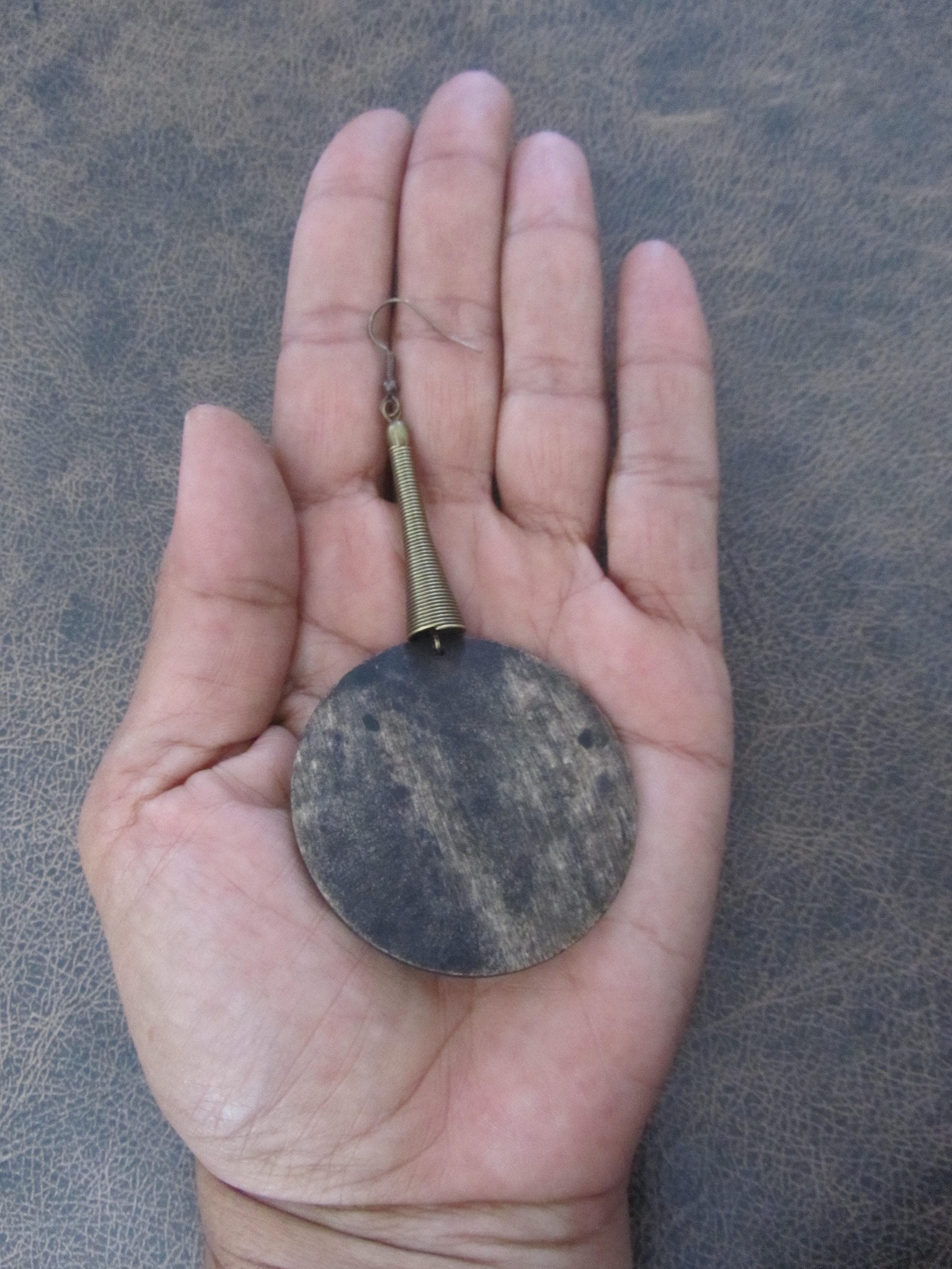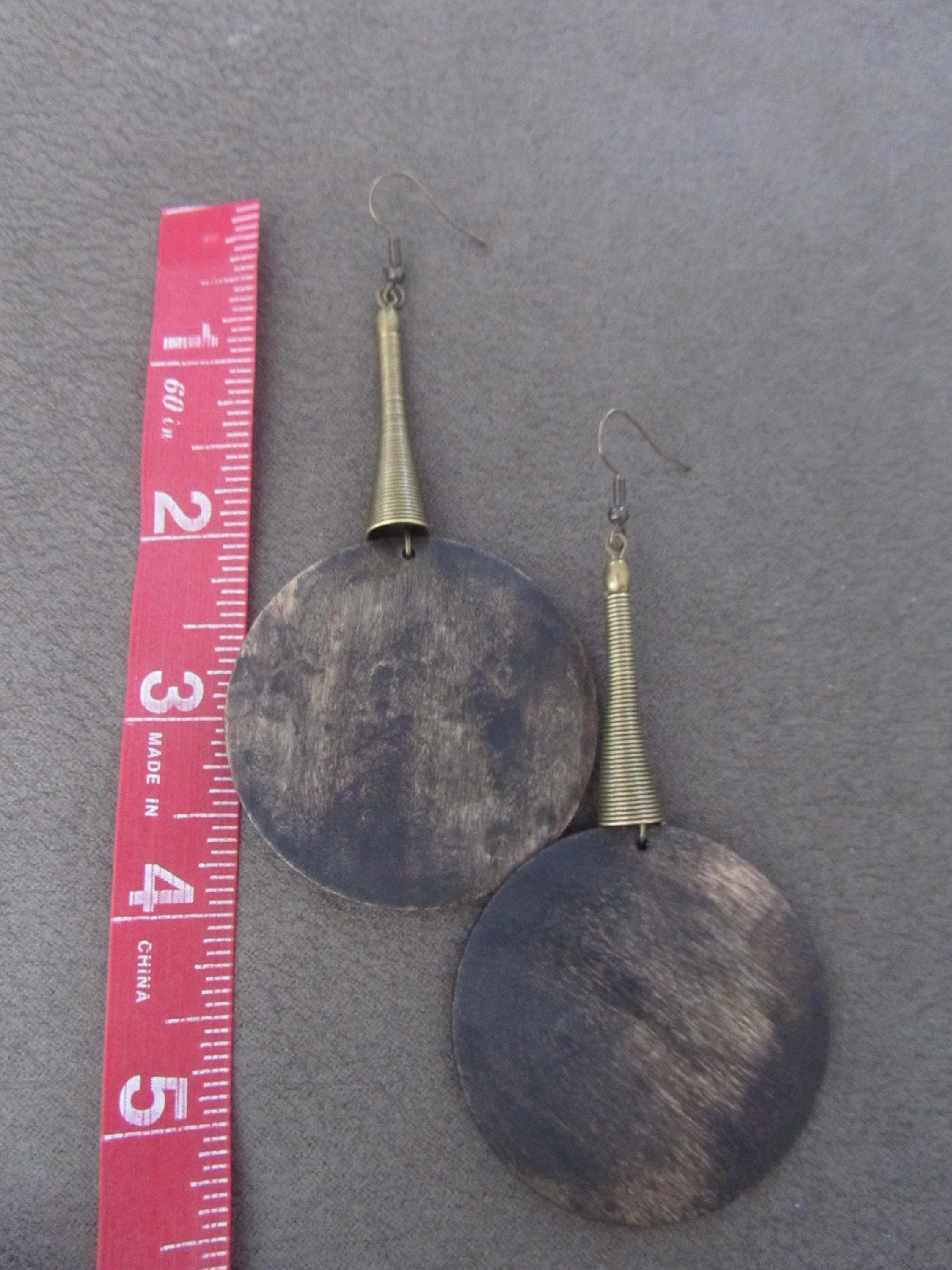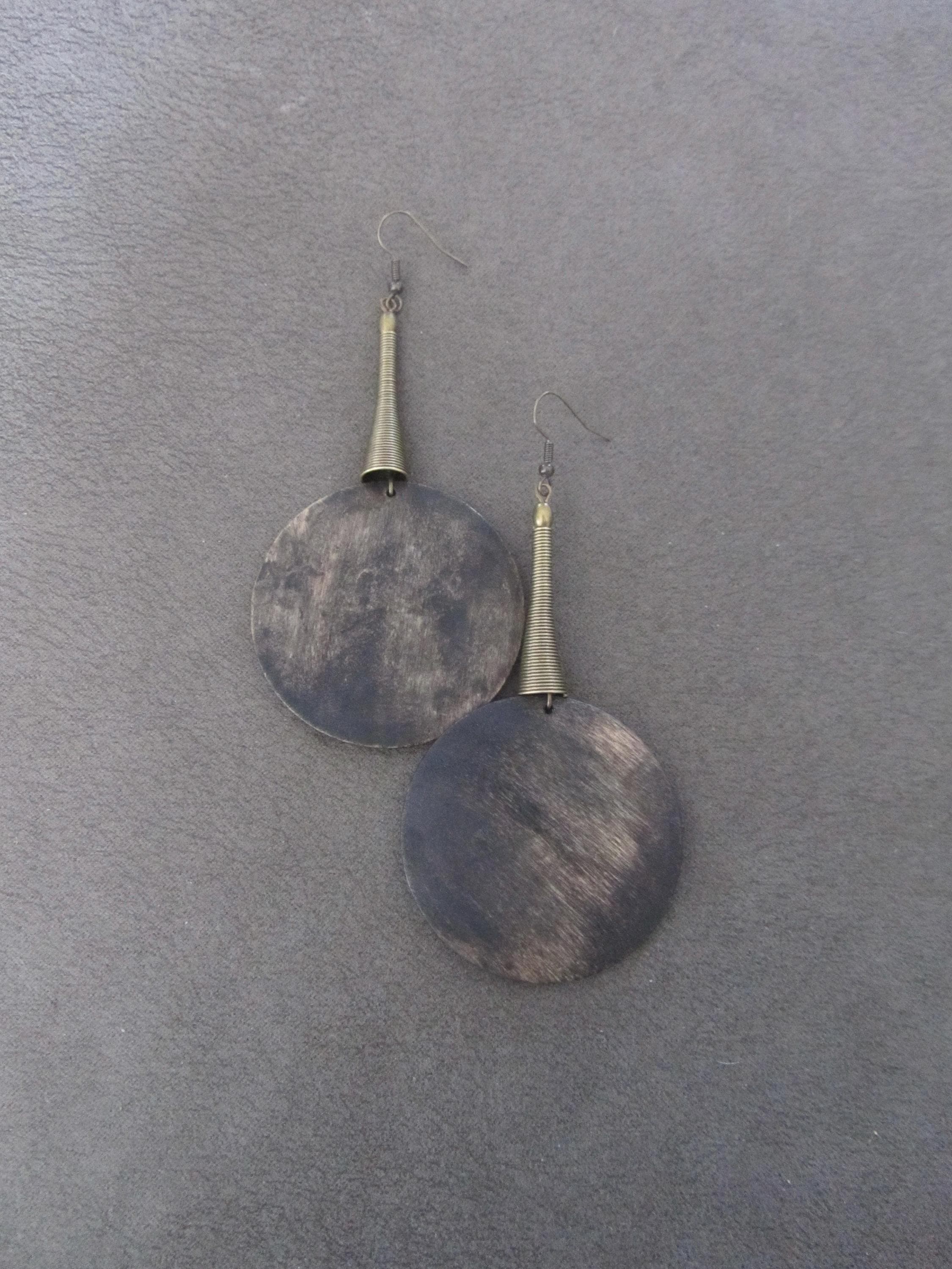 Big stained wooden and bronze earrings on french hooks