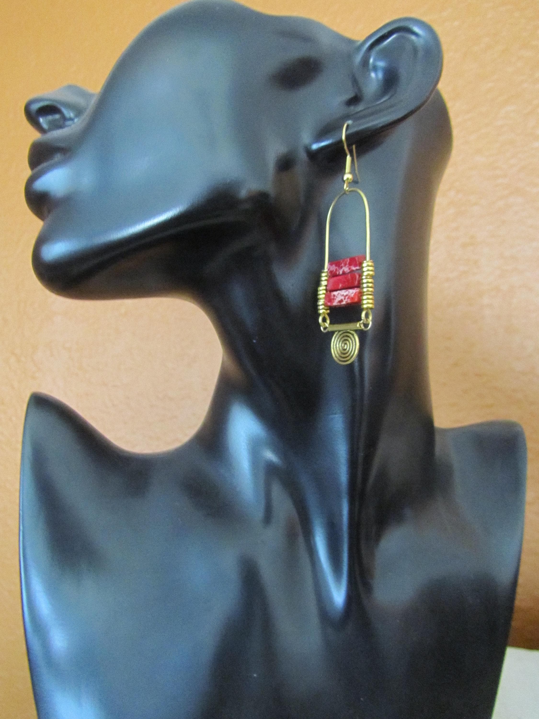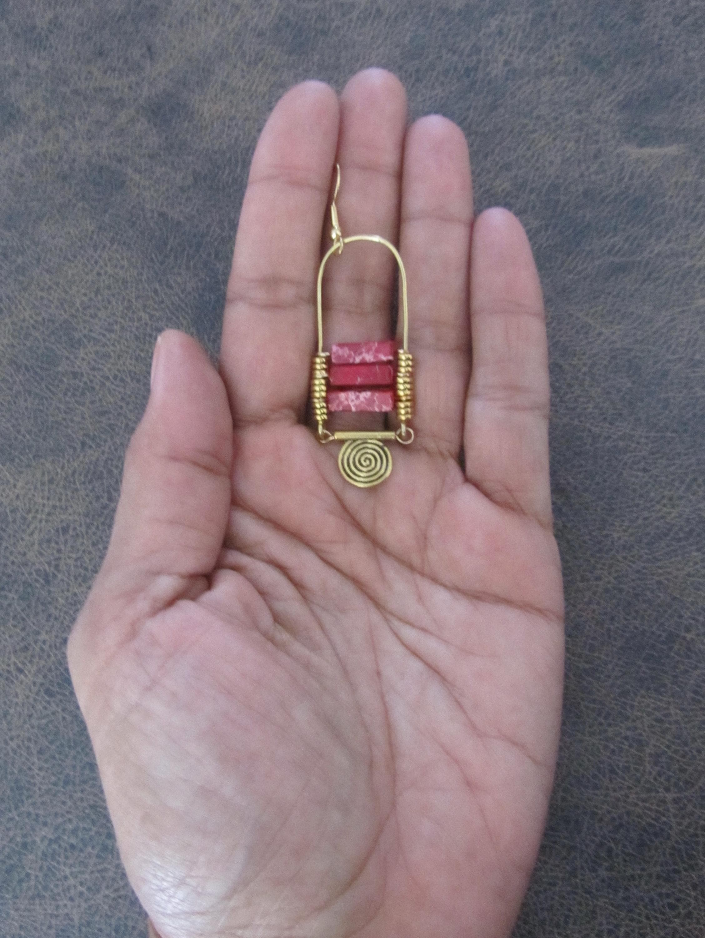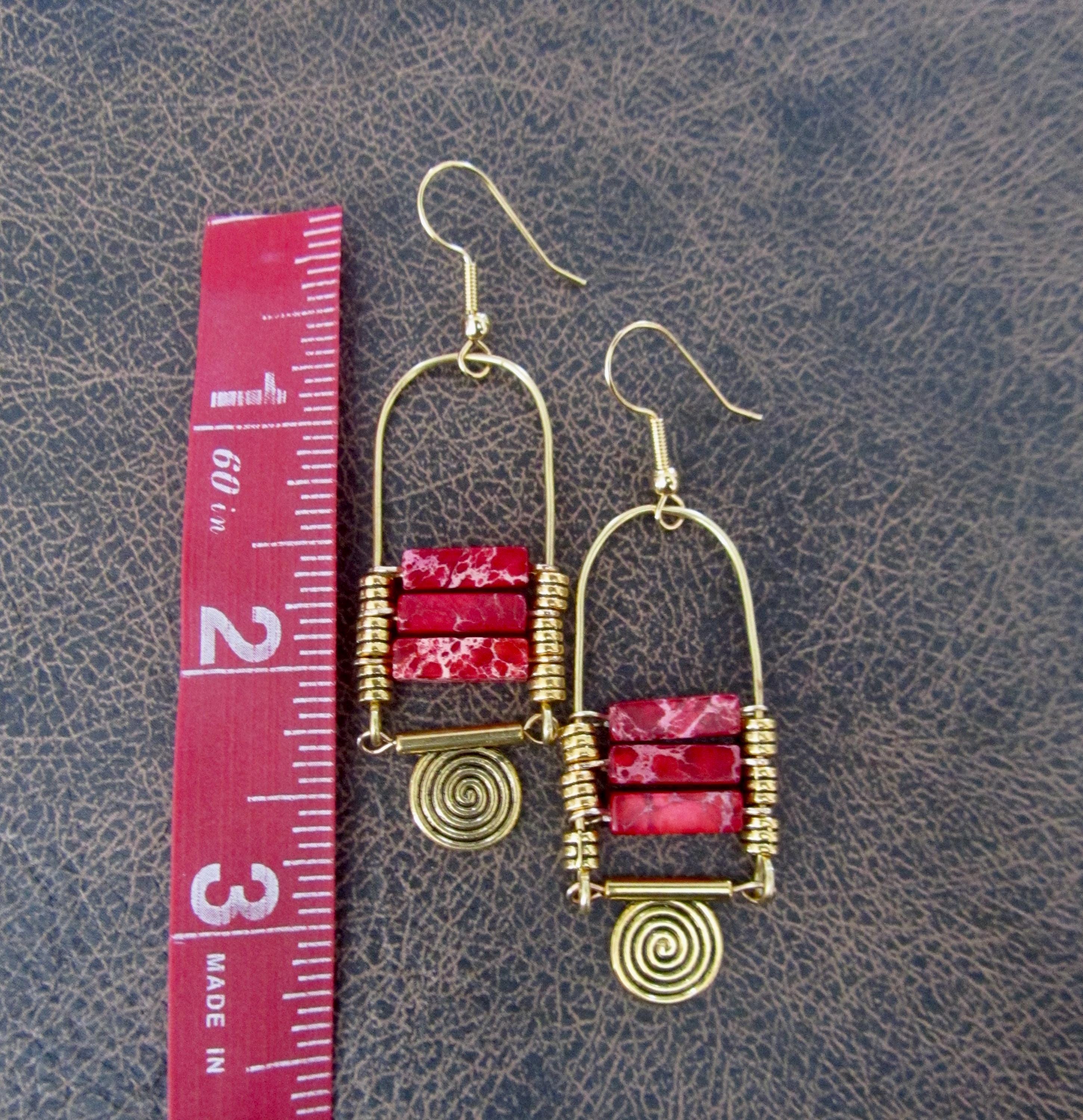 red sediment jasper dangle earrings with French hooks