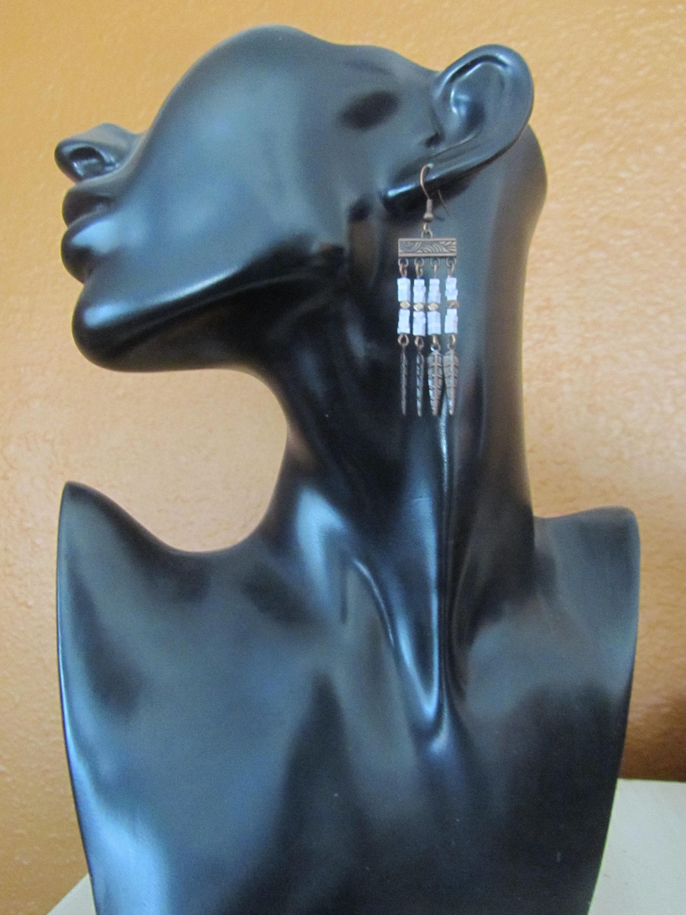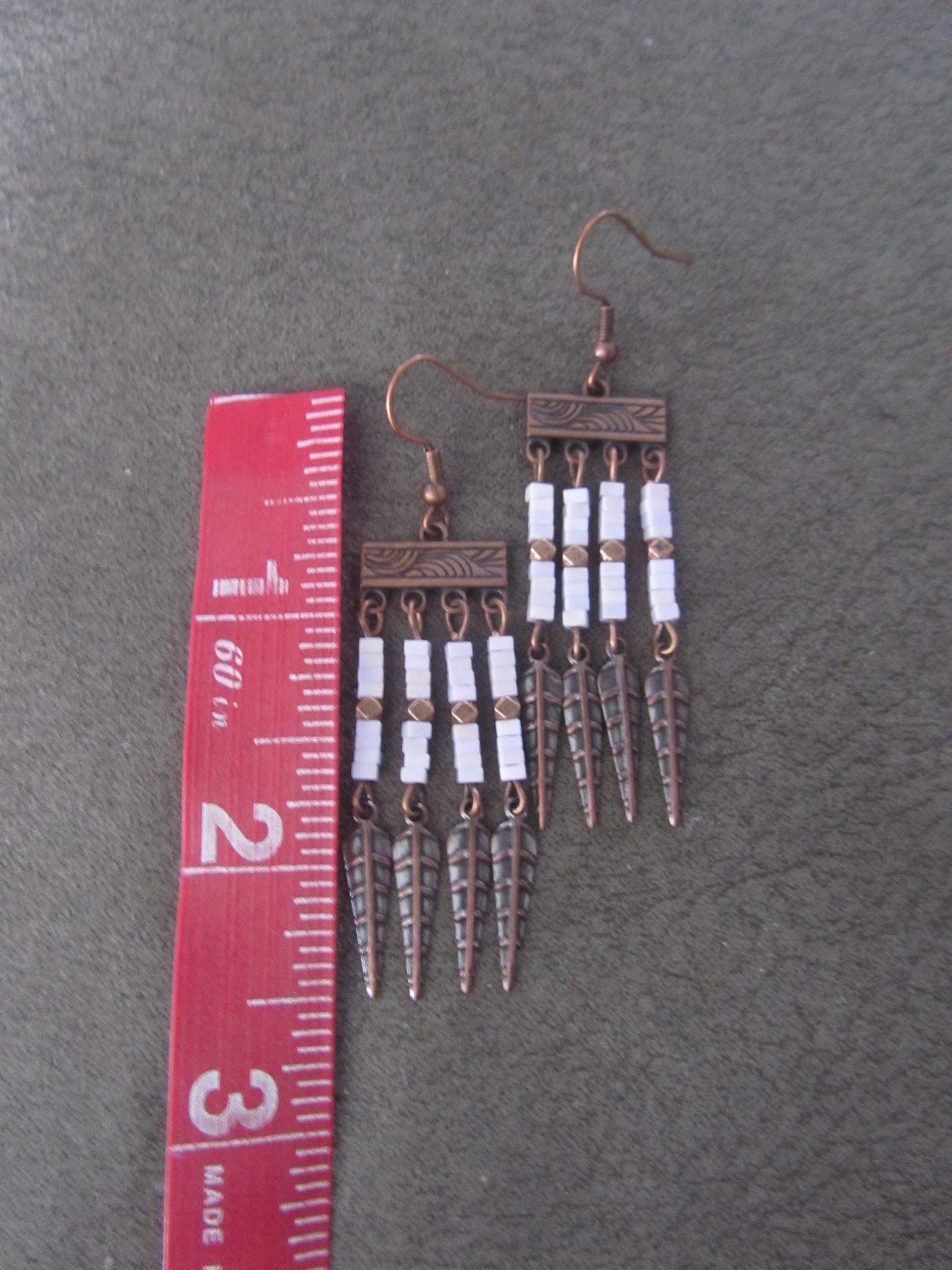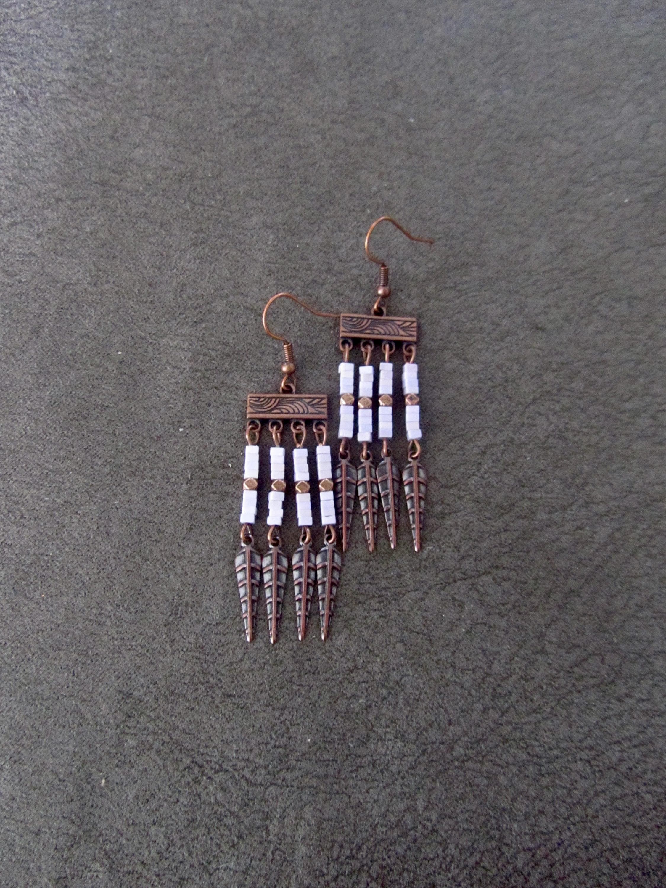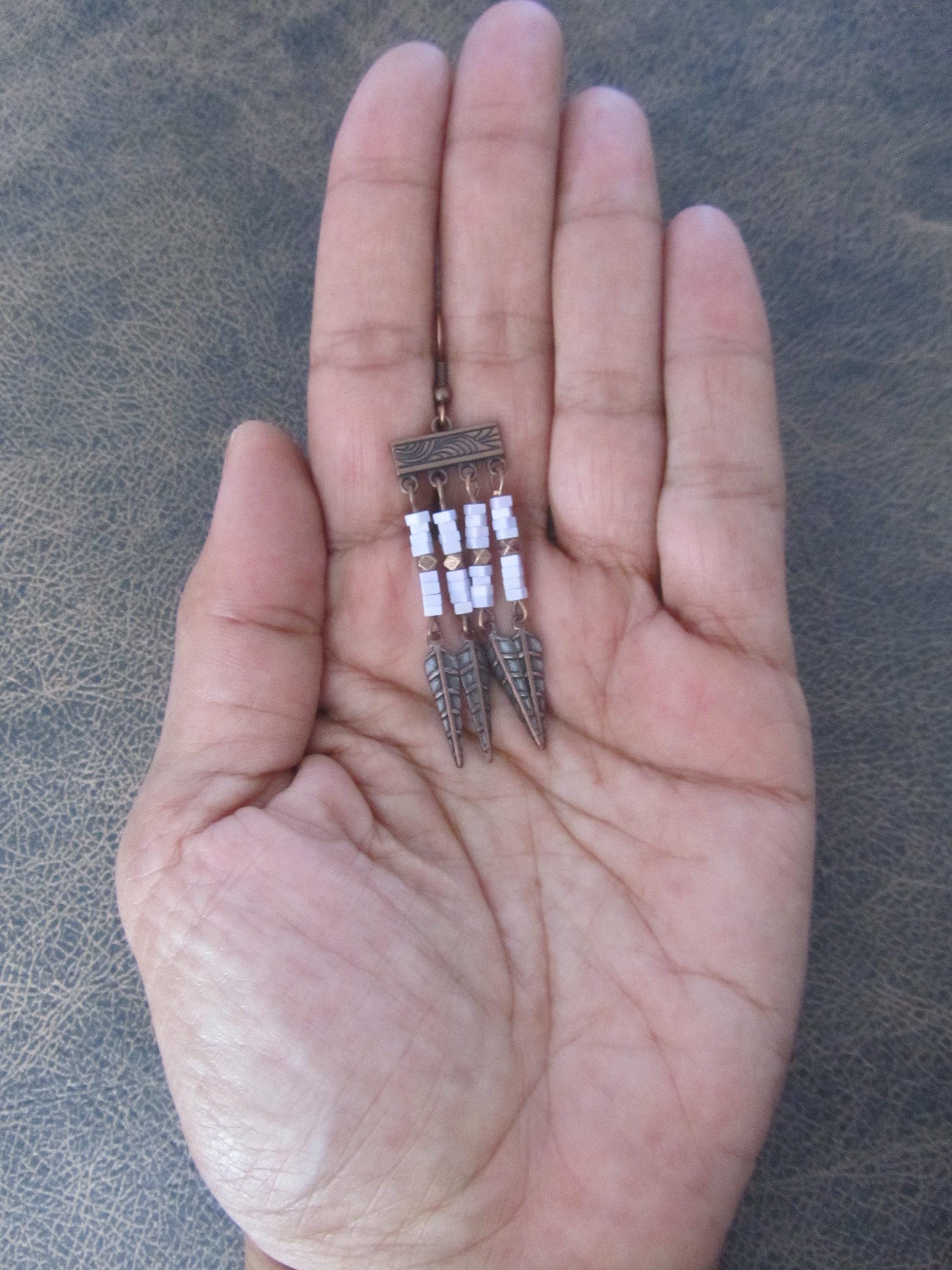 Lavender jasper and copper tribal chandelier earrings with French hooks