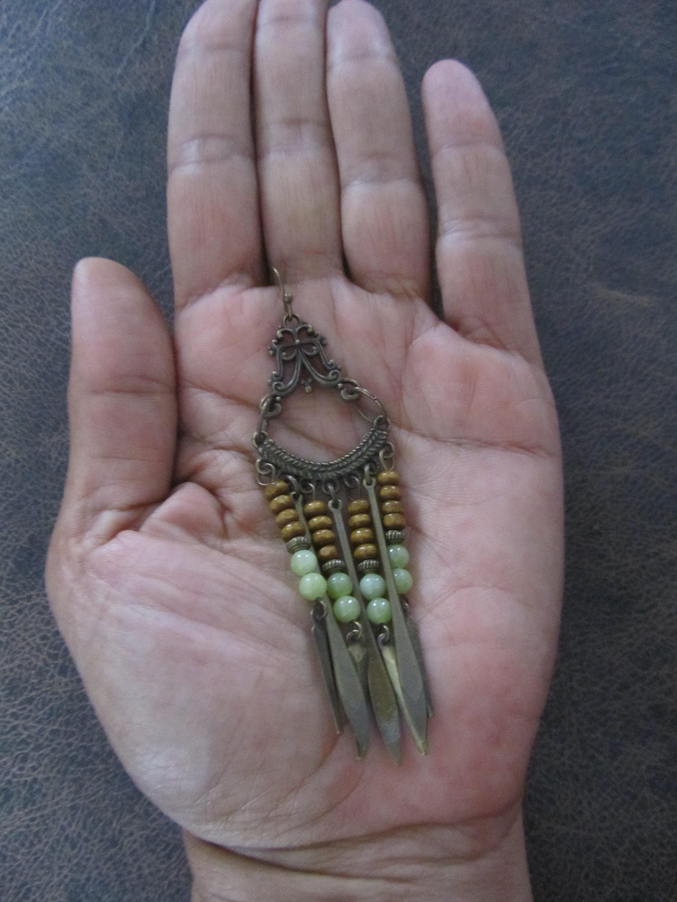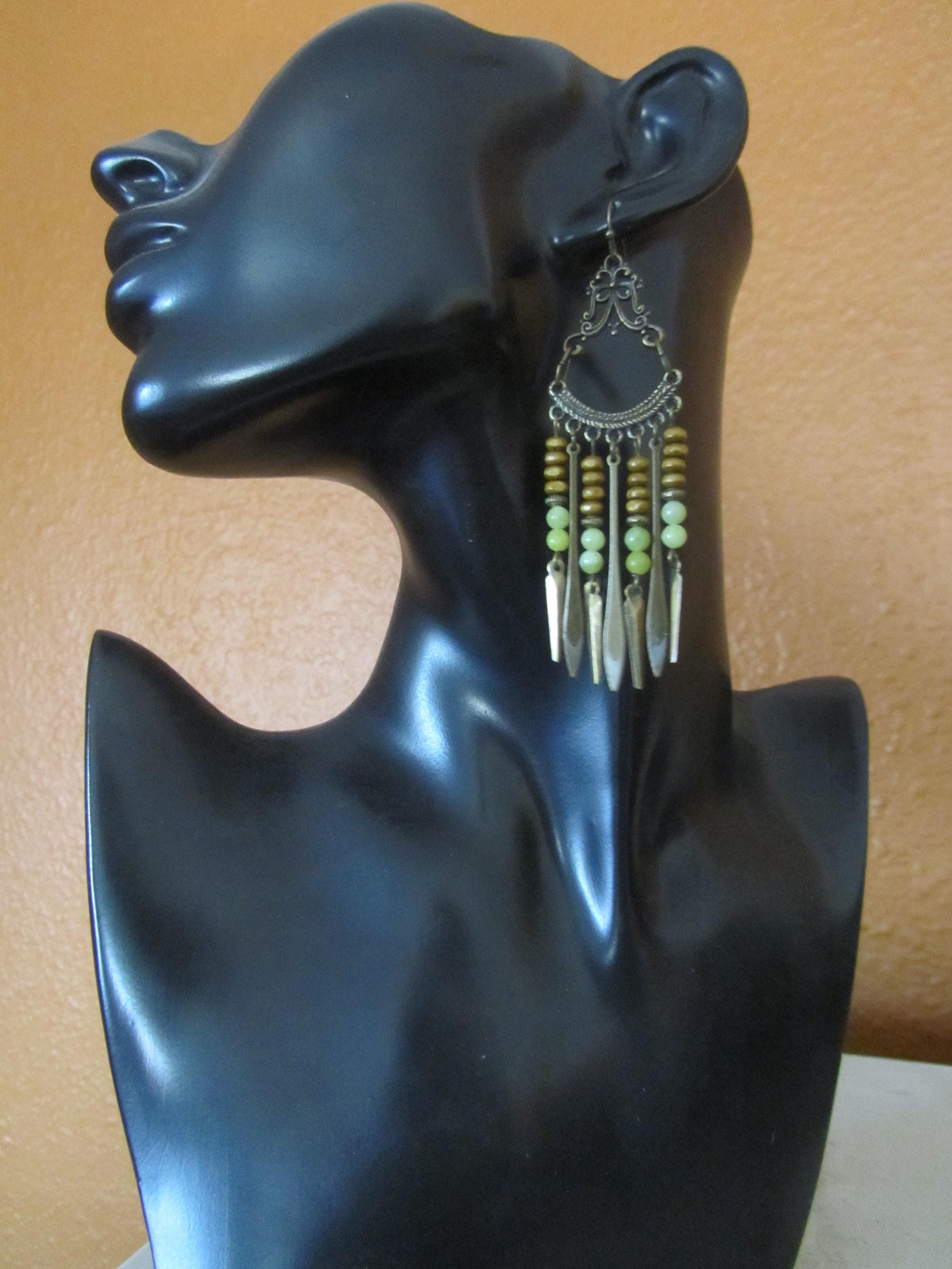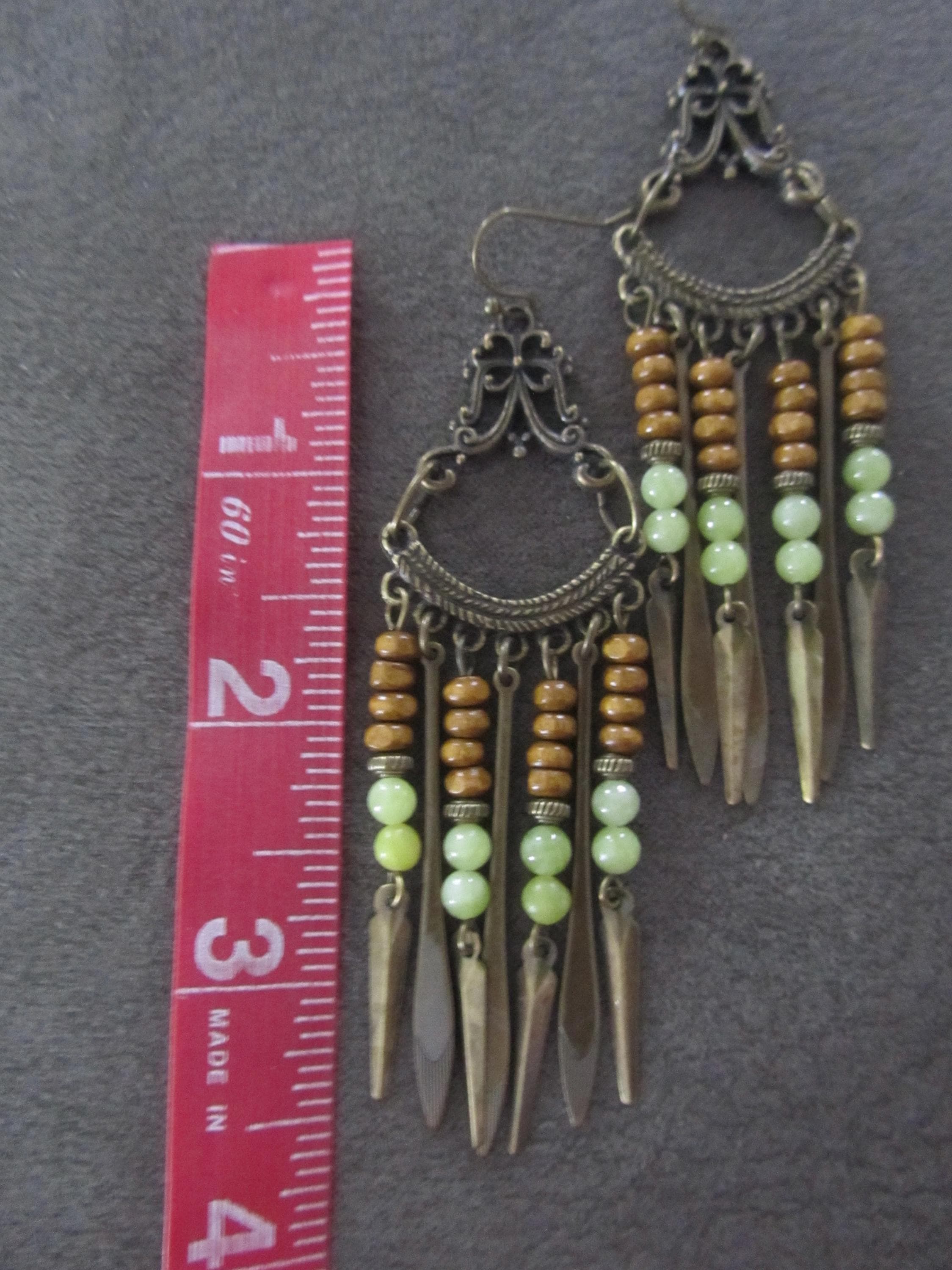 Chandelier earrings with wooden and jadeite beads and French hooks