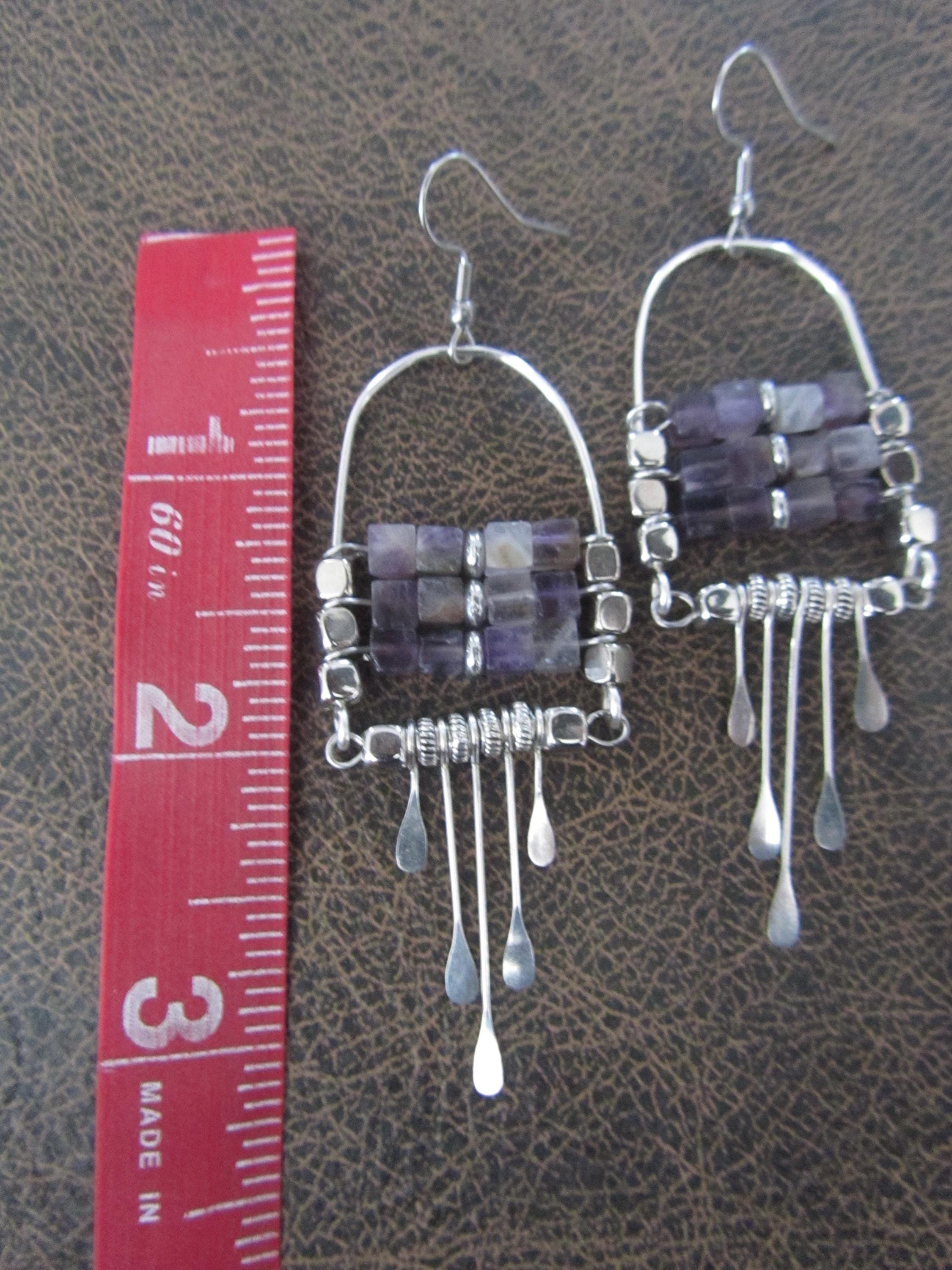 Copper chandelier earrings with purple agate beads and French hooks