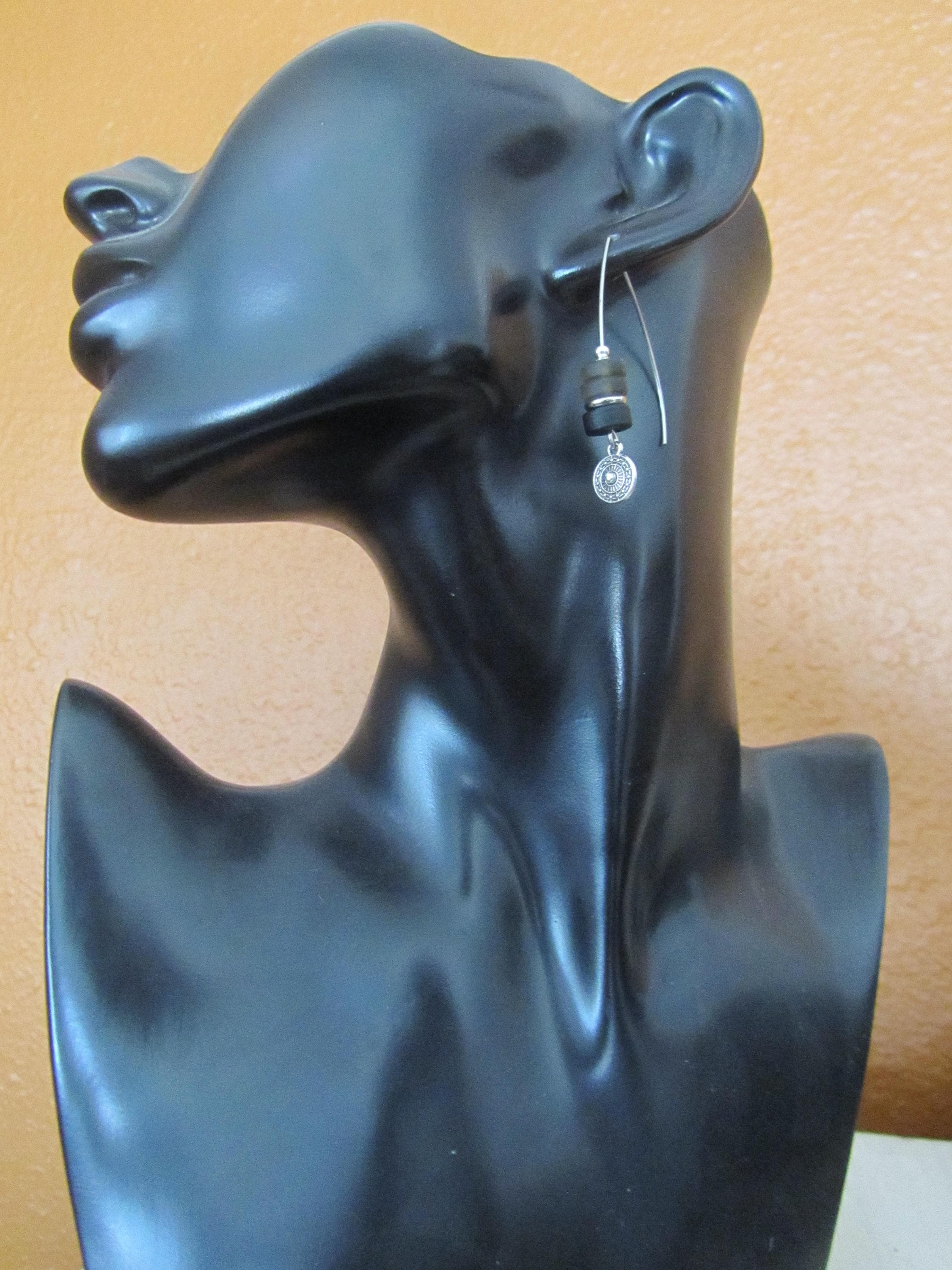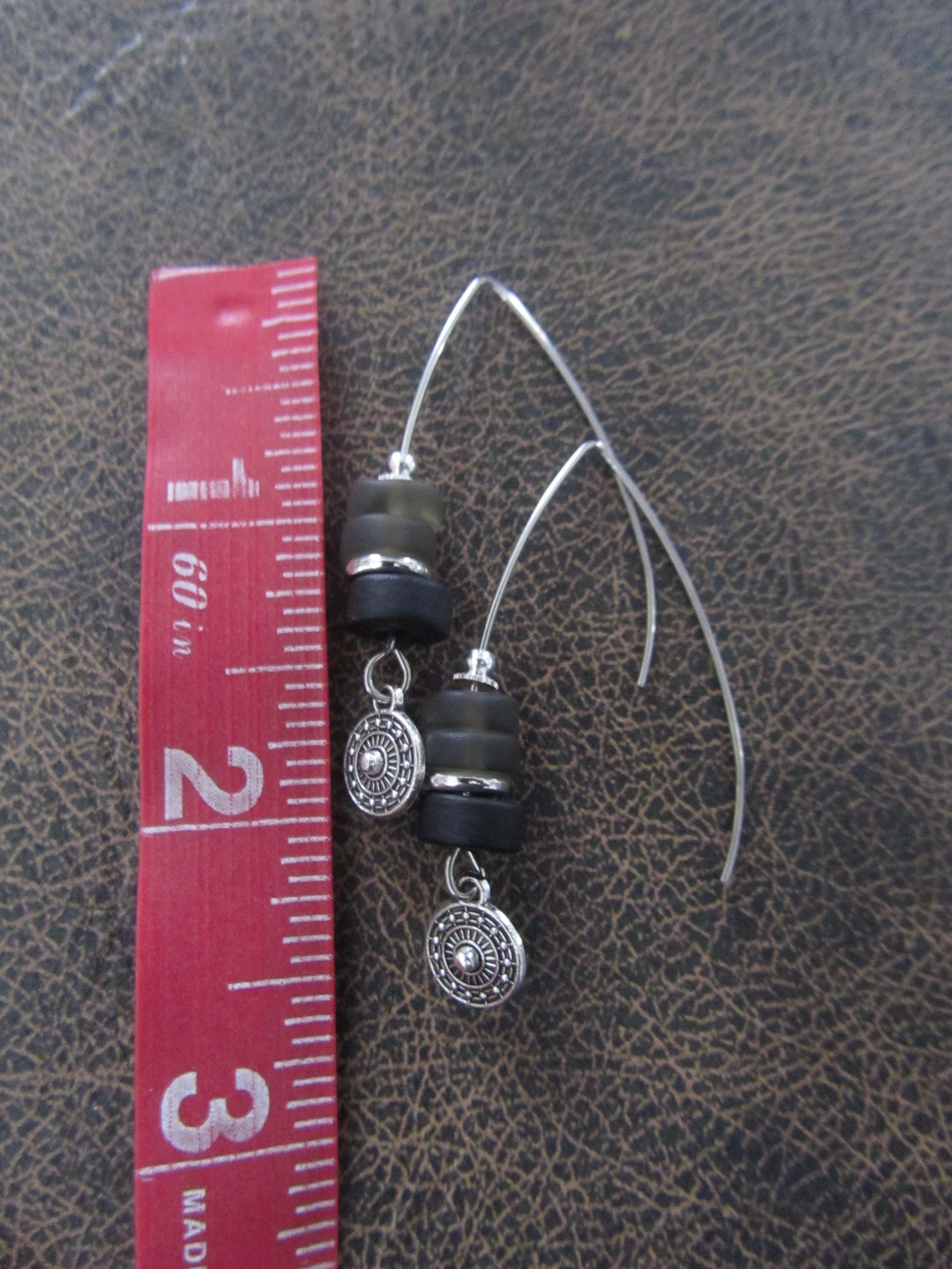 Black and gray frosted sea glass and silver minimalist earrings on ear wire