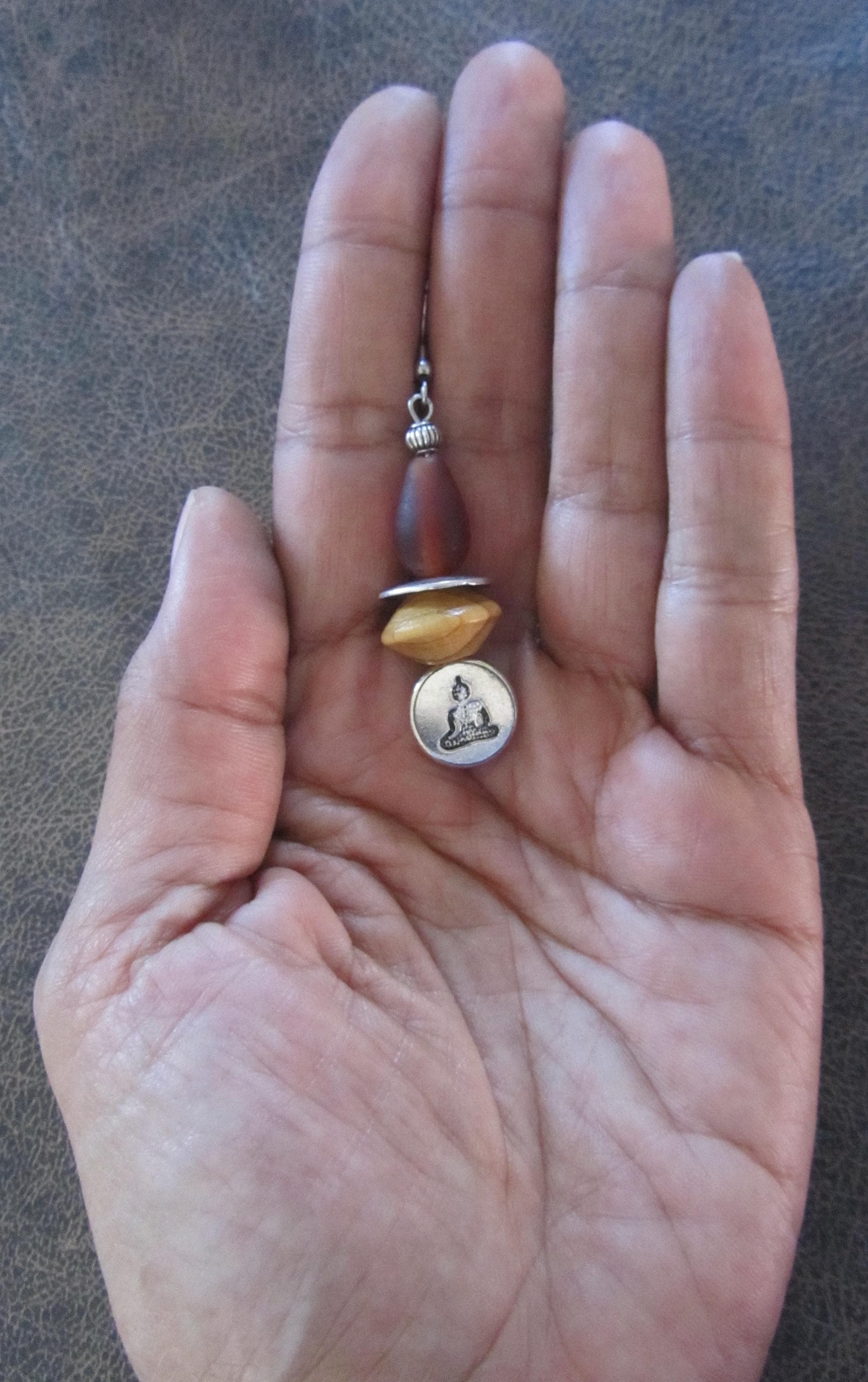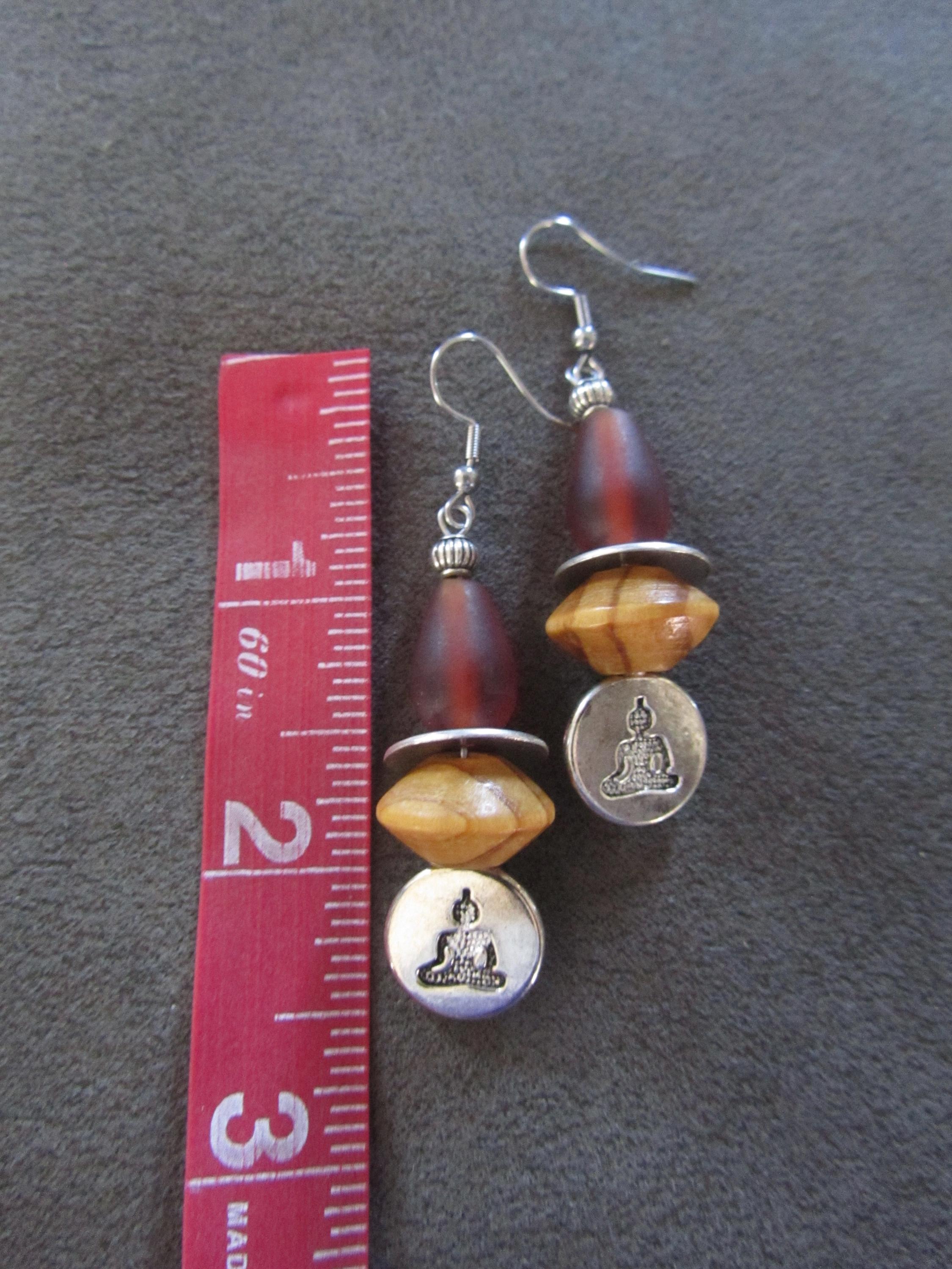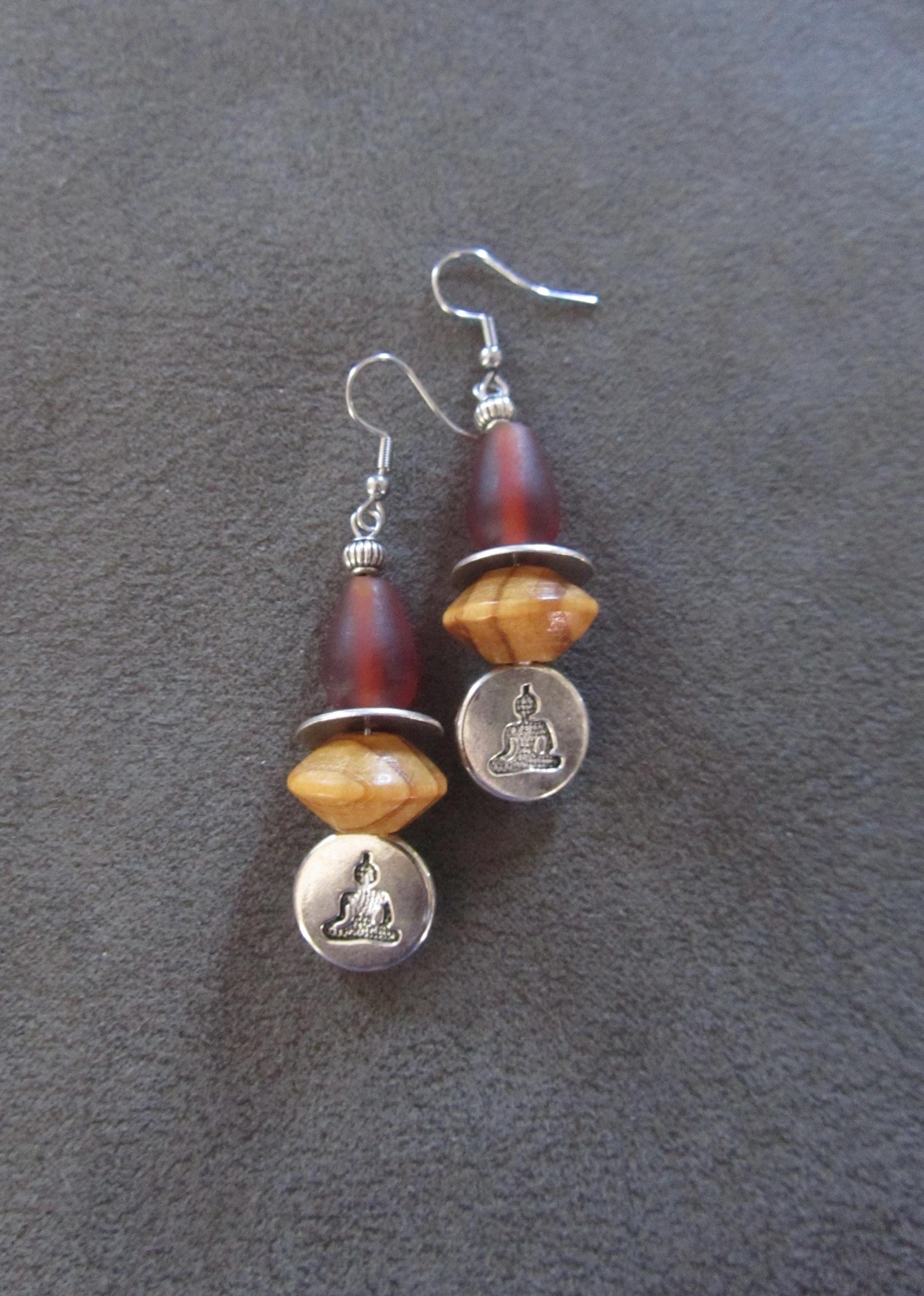 Wooden and glass silver buddha earrings on French hooks