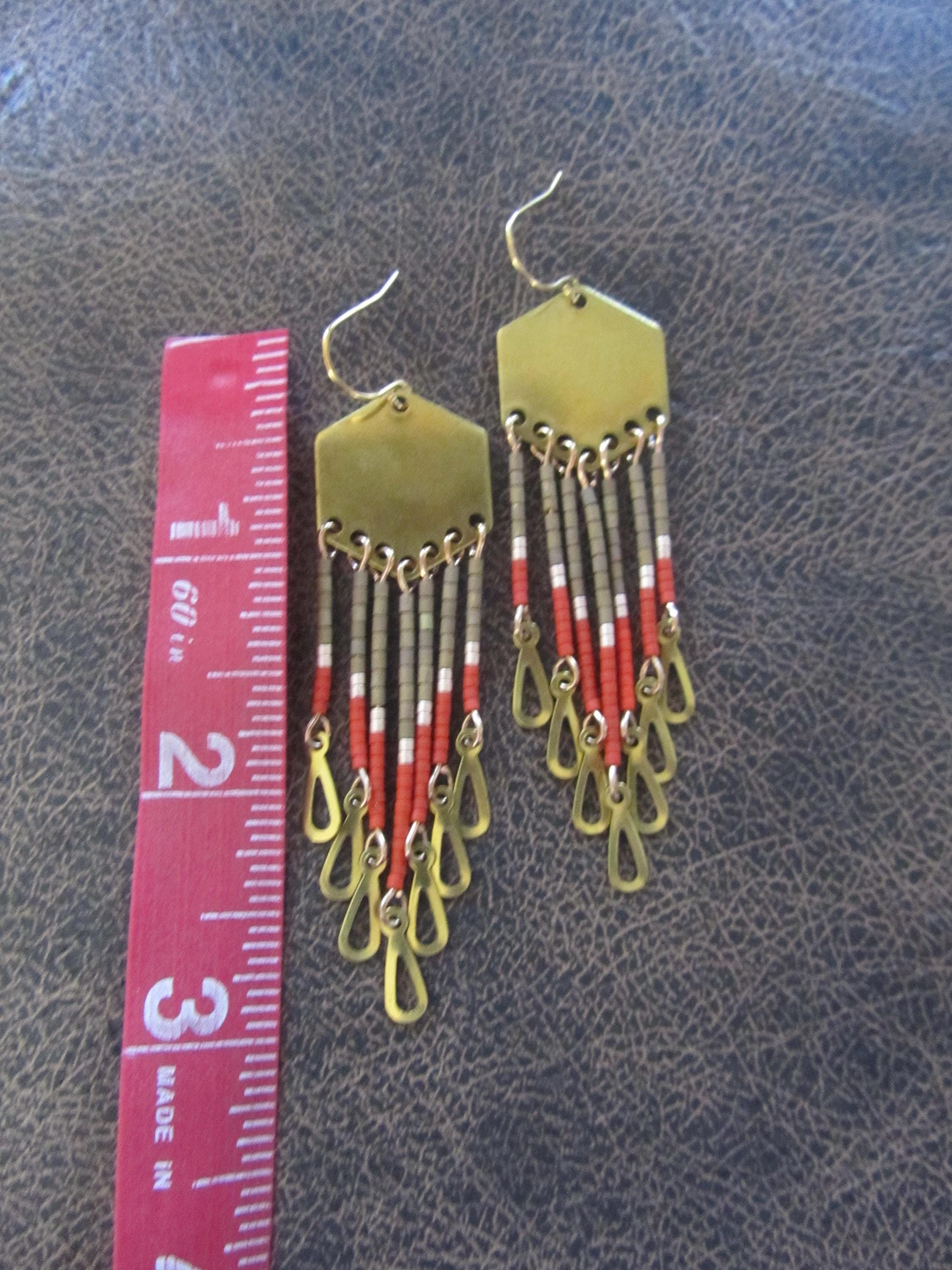 Orange seed bead and brass earrings