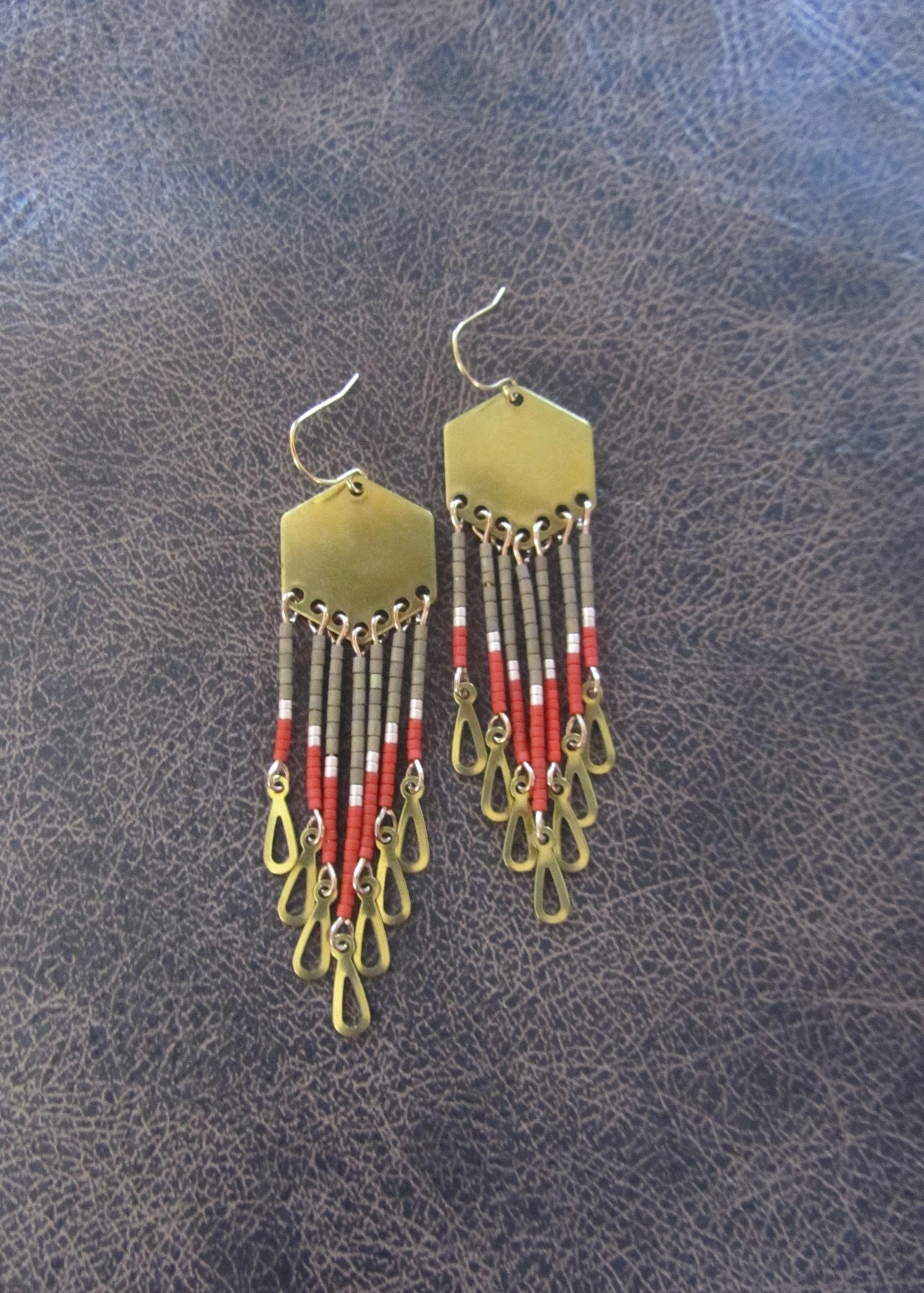 Seed bead and brass earrings with French hooks.