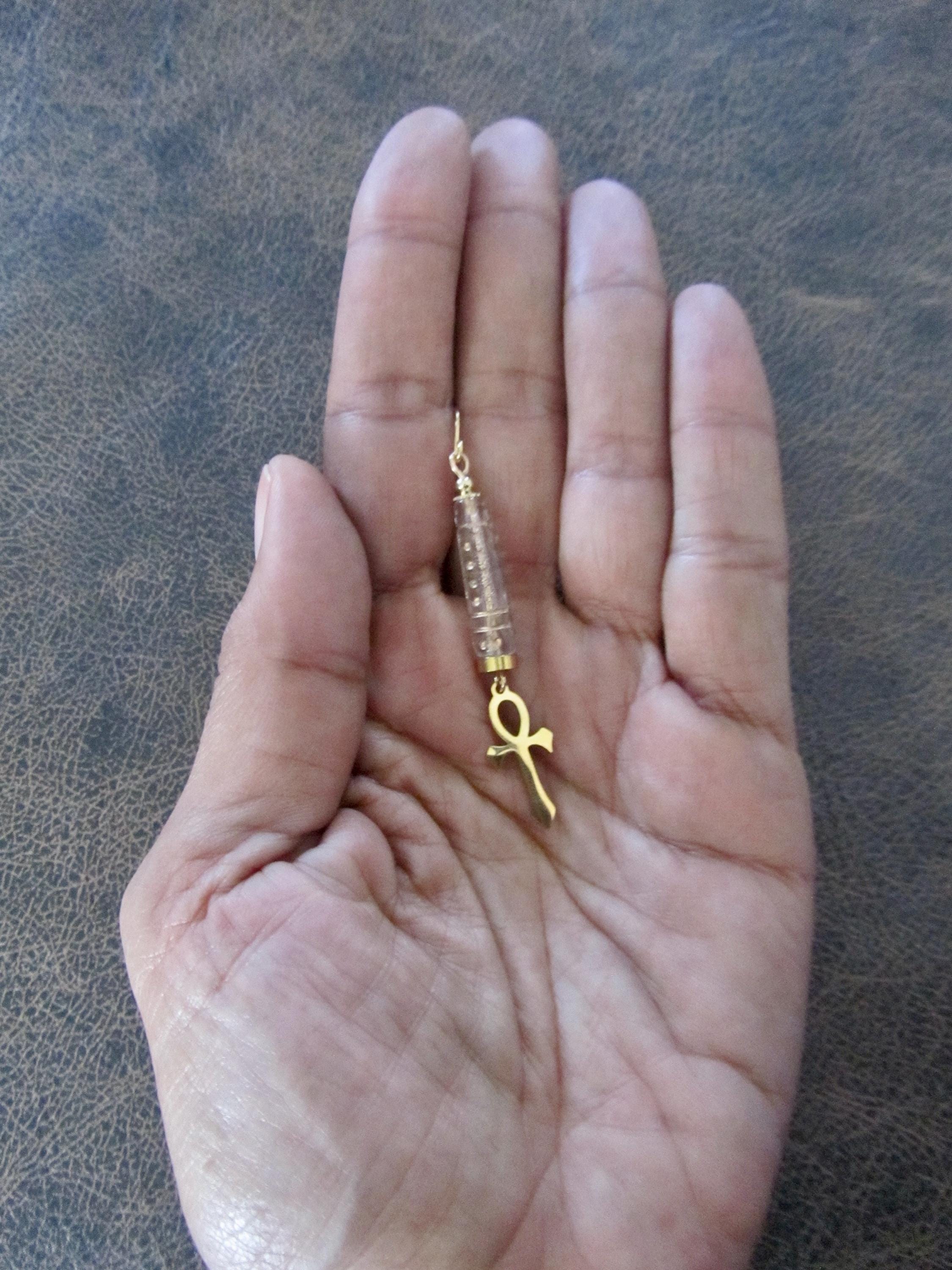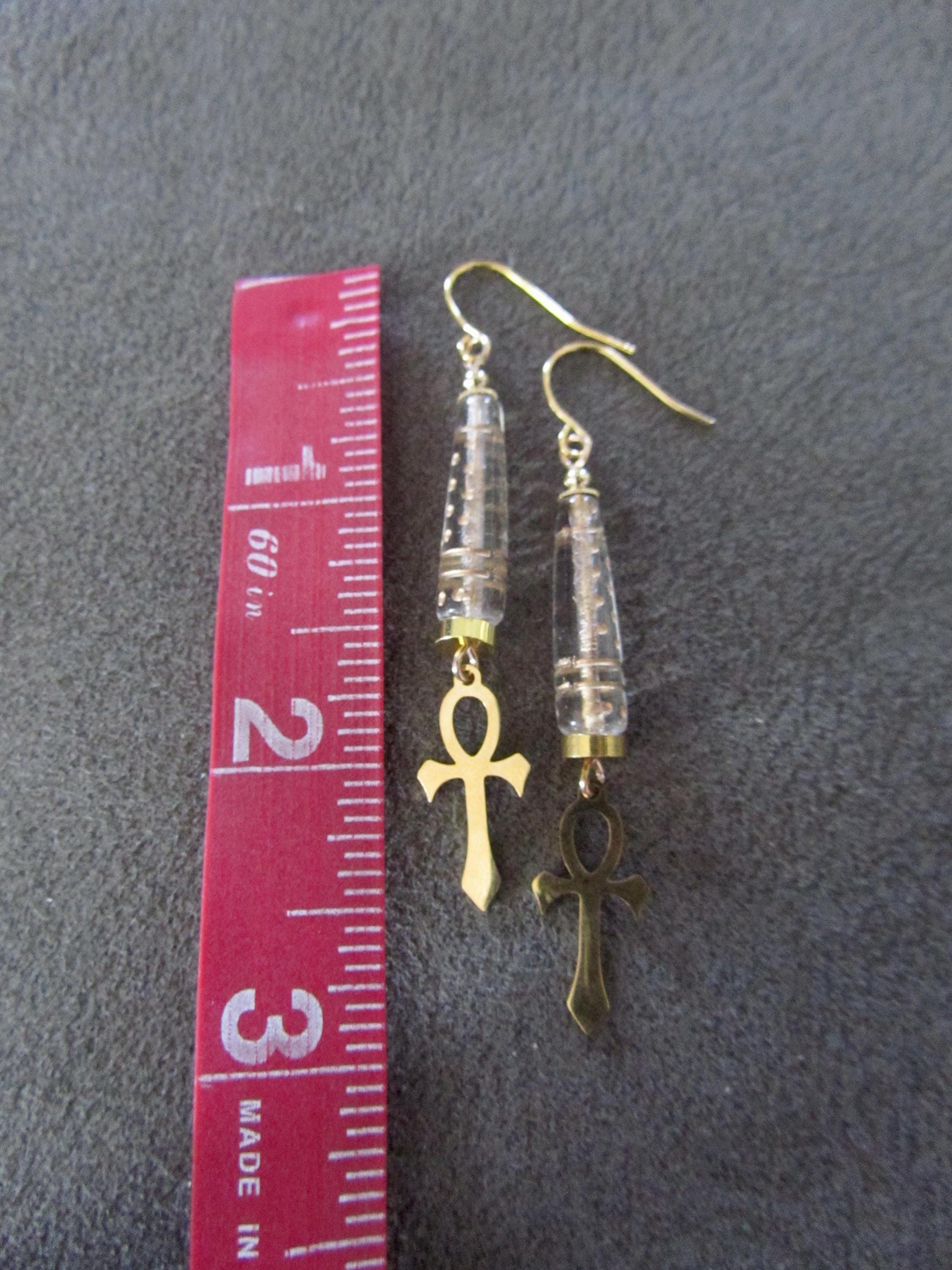 Silver ankh and clear glass earrings. French hooks