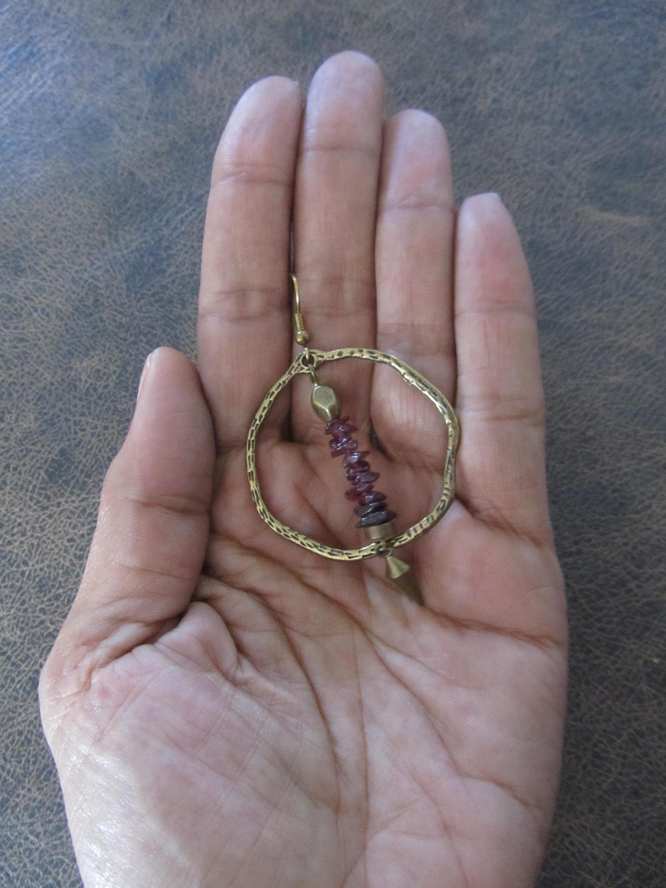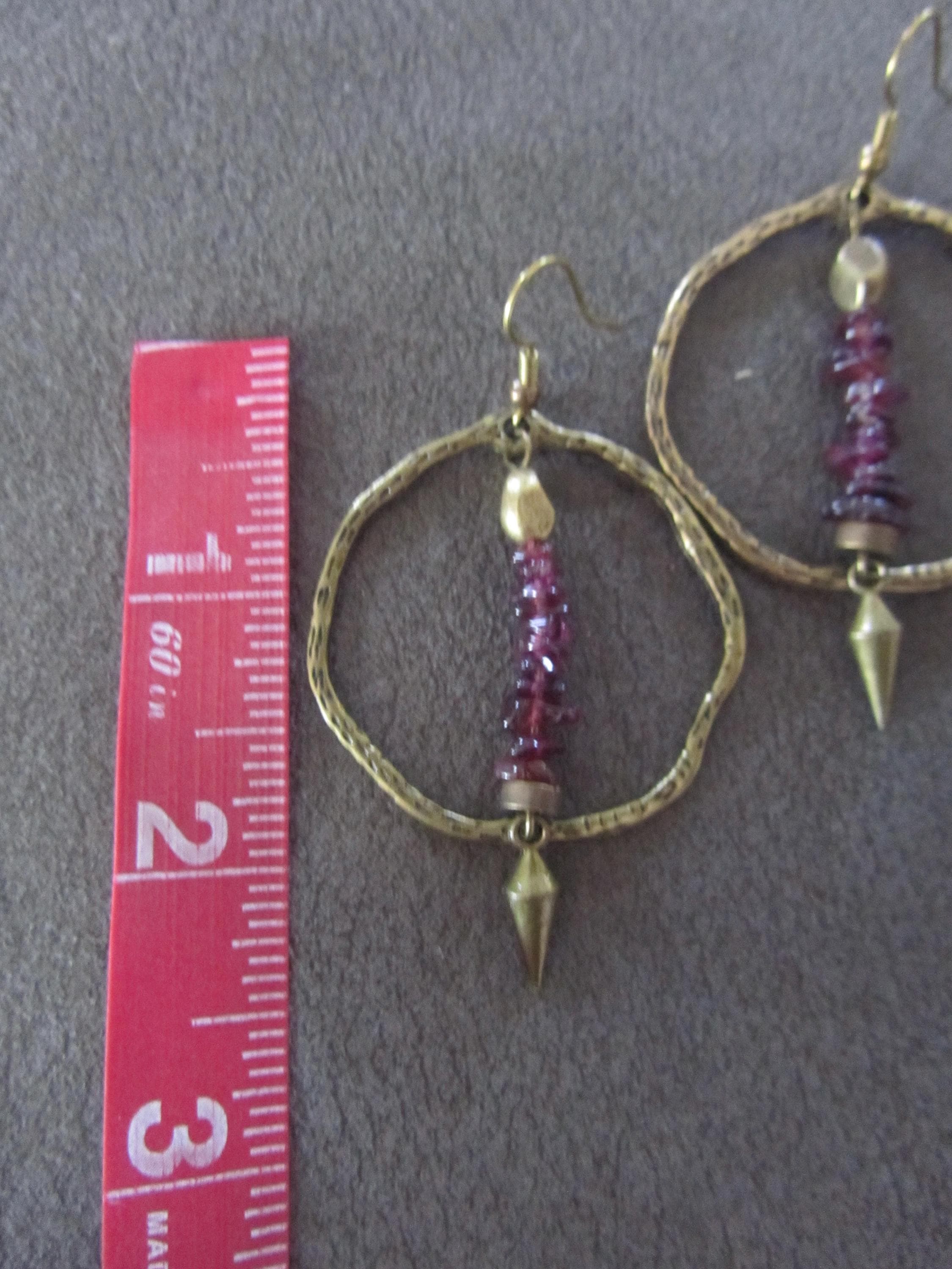 Hoop earrings with garnet chip beads and French hooks