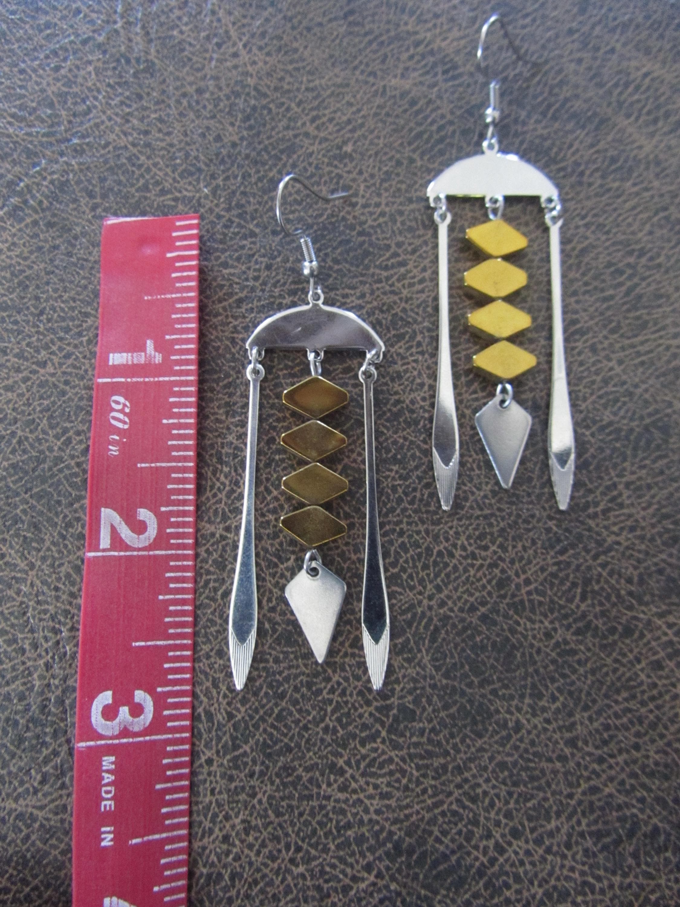 Silver stainless steel and gold hematite chandelier earrings with French hooks