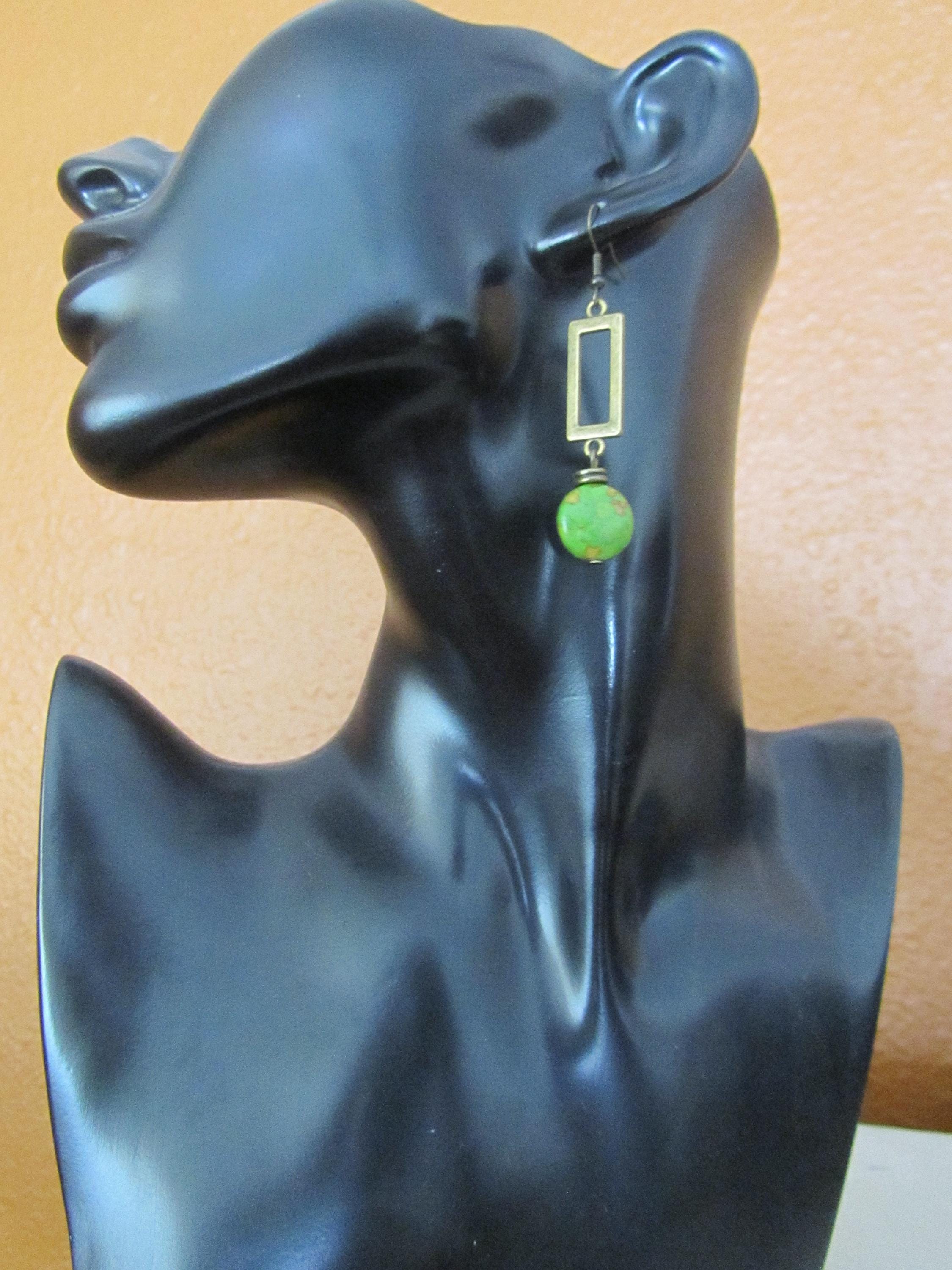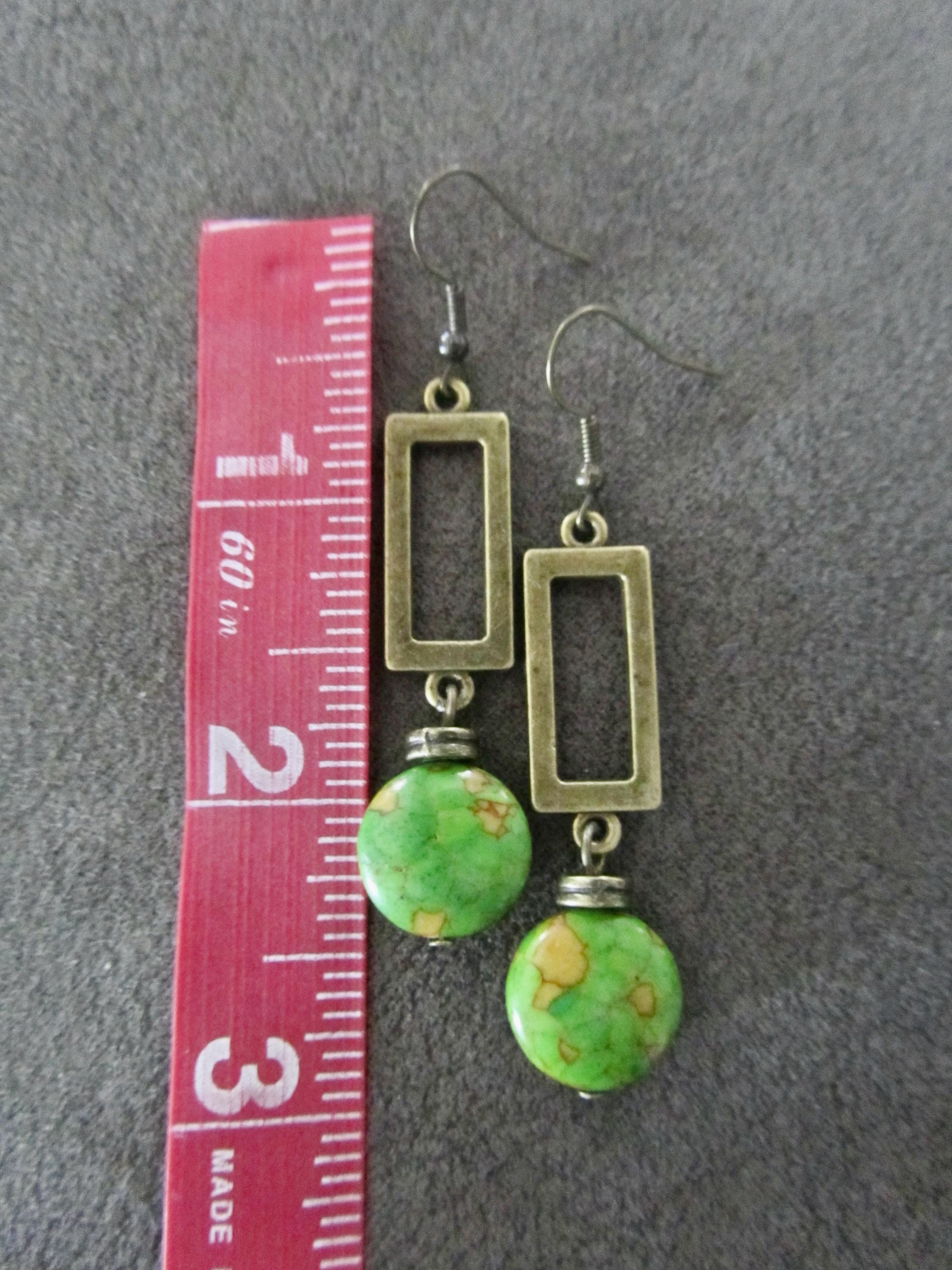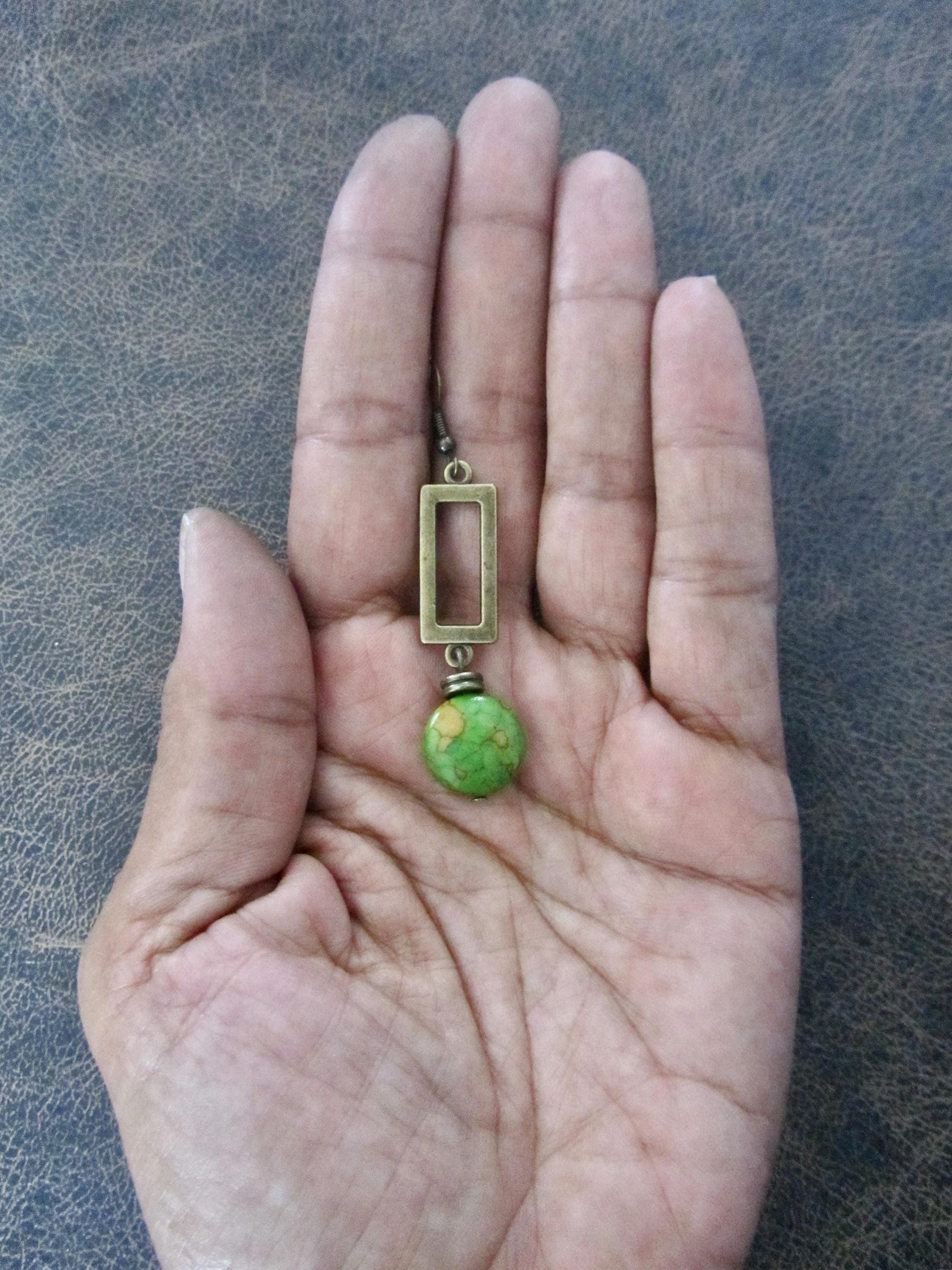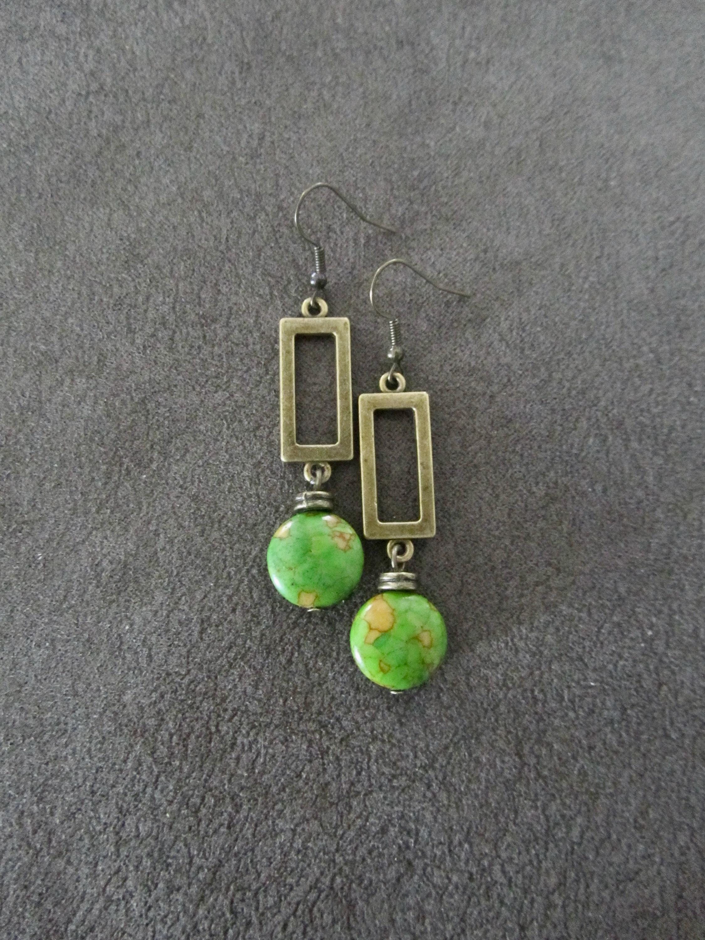 Green imperial jasper stone and bronze earrings French hooks.