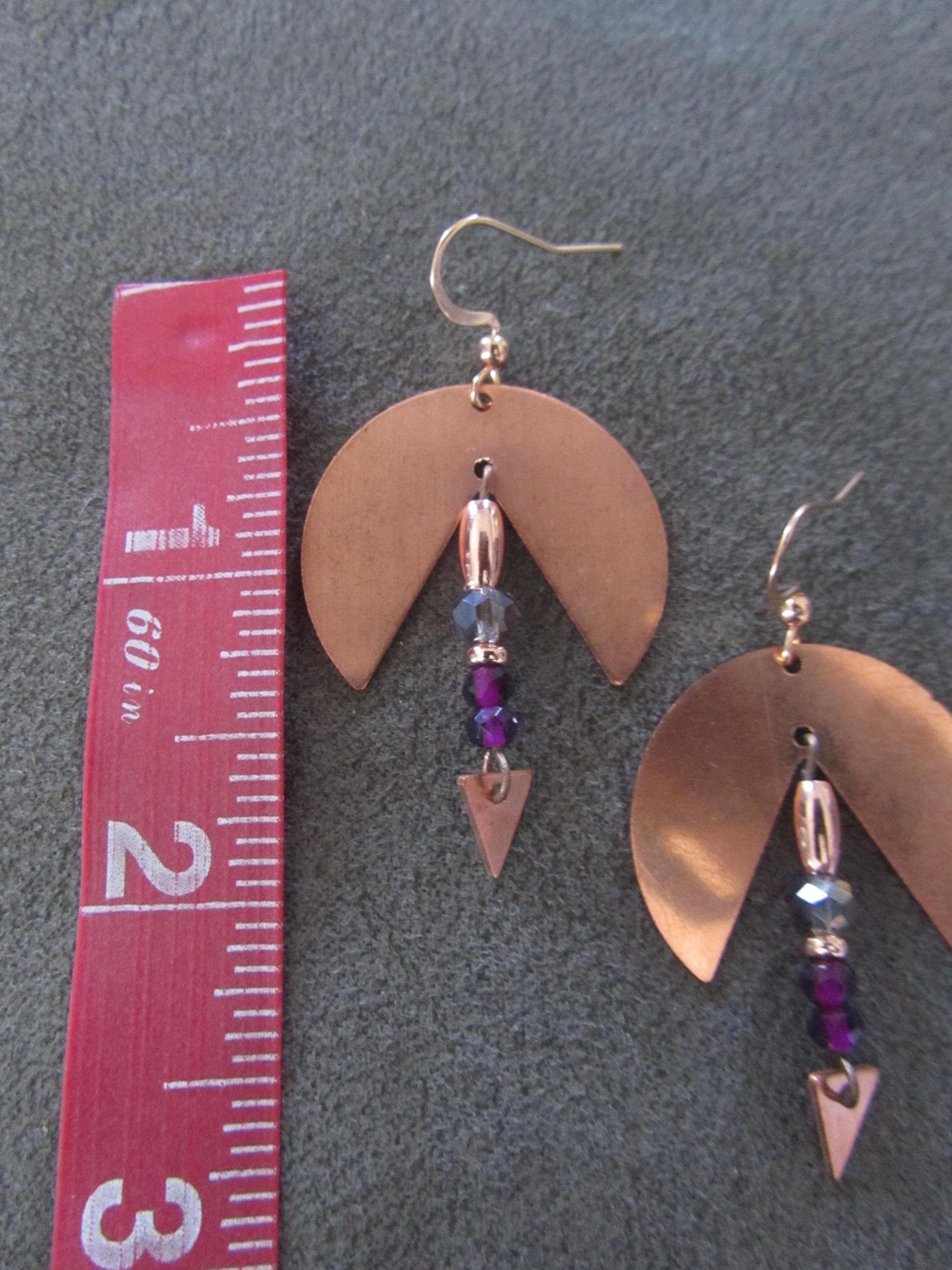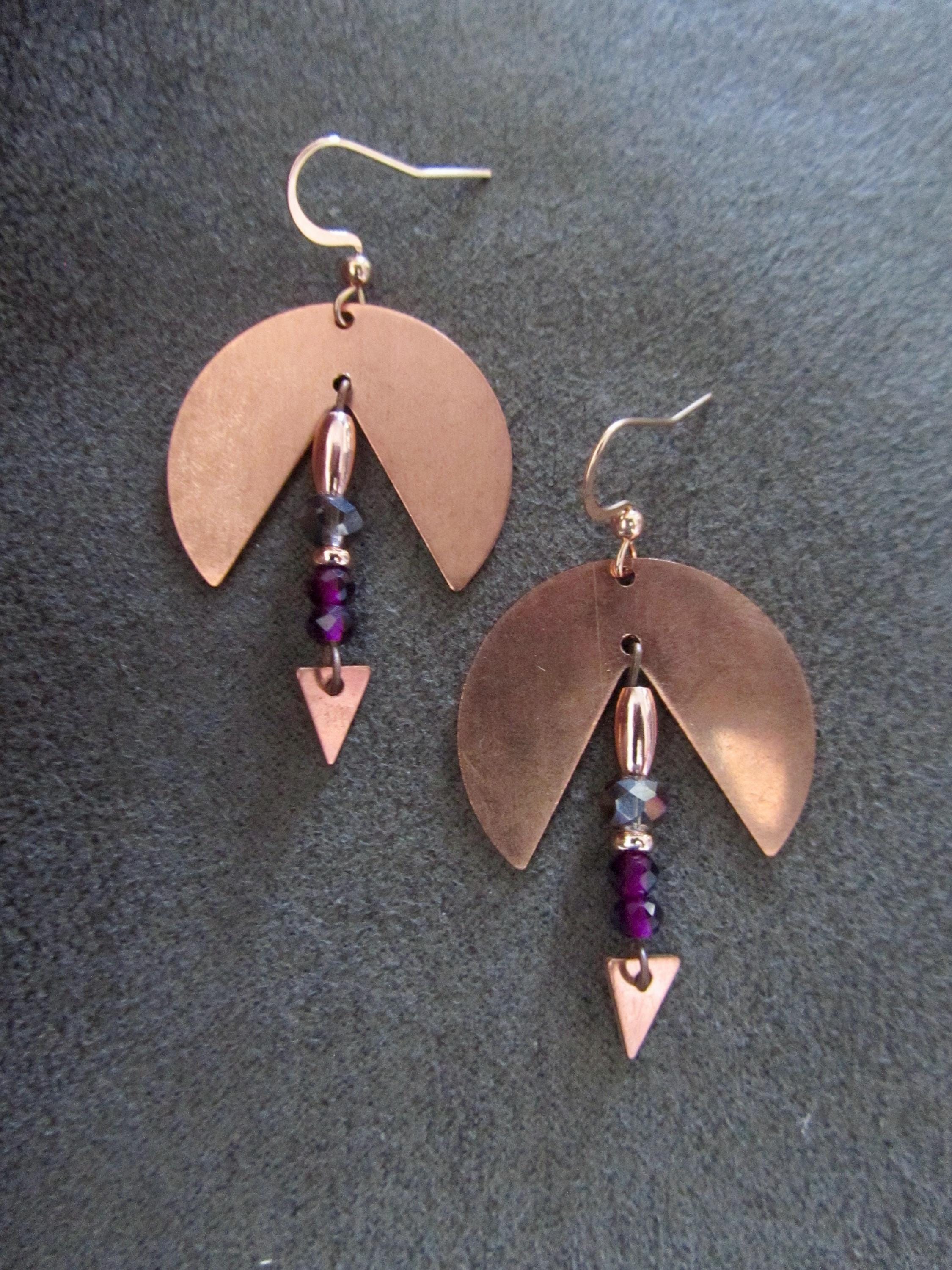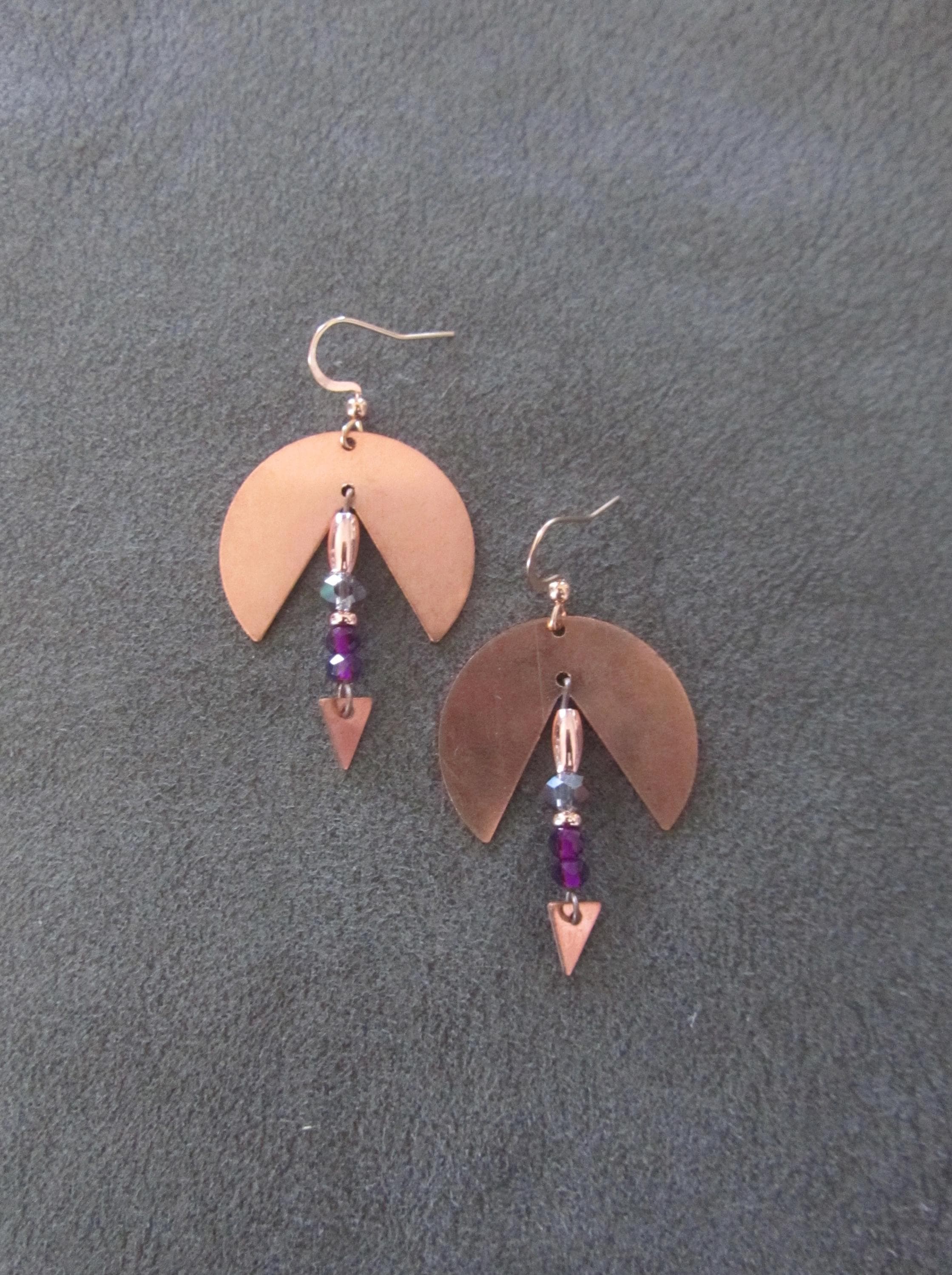 Copper and crystal earrings on French hooks