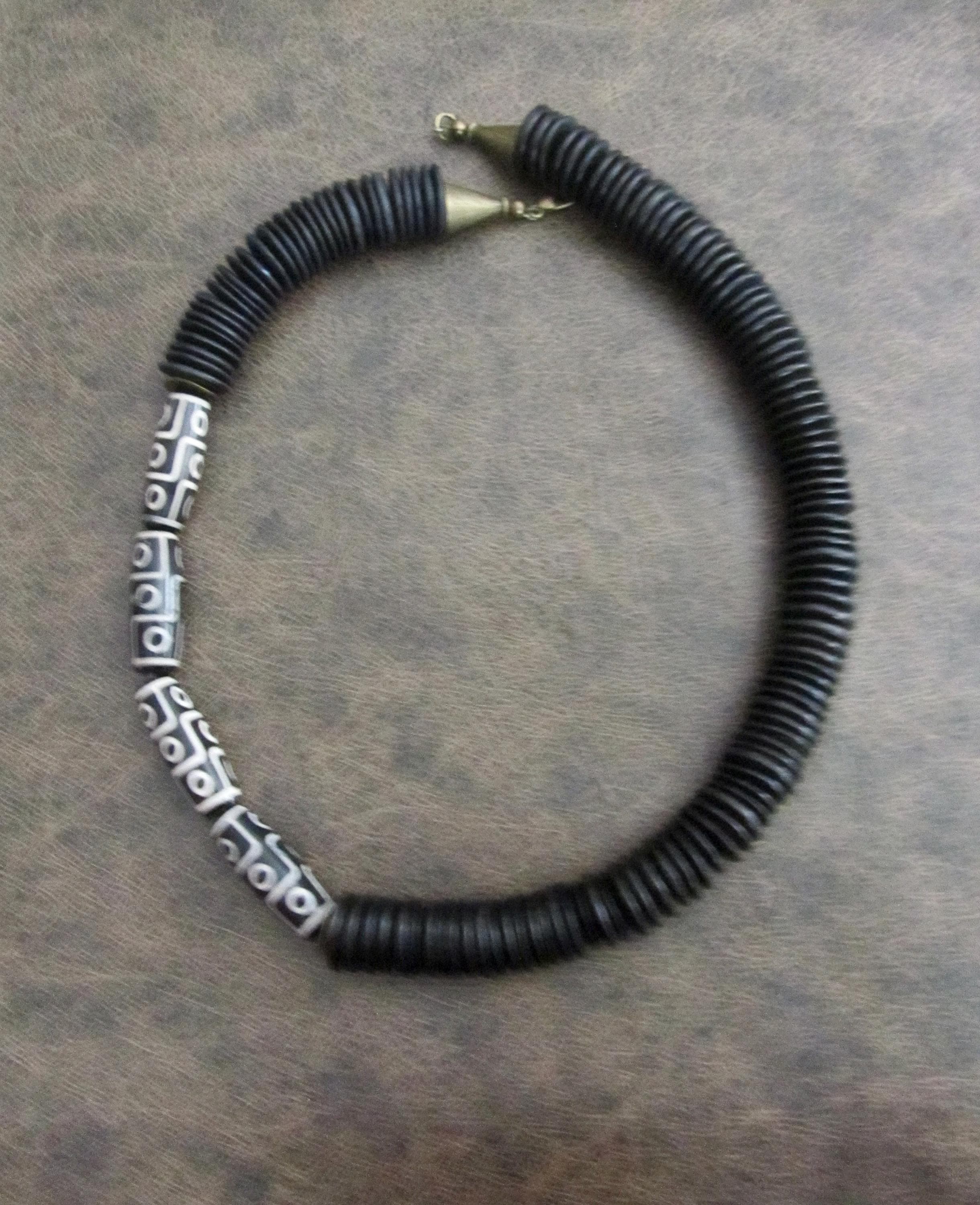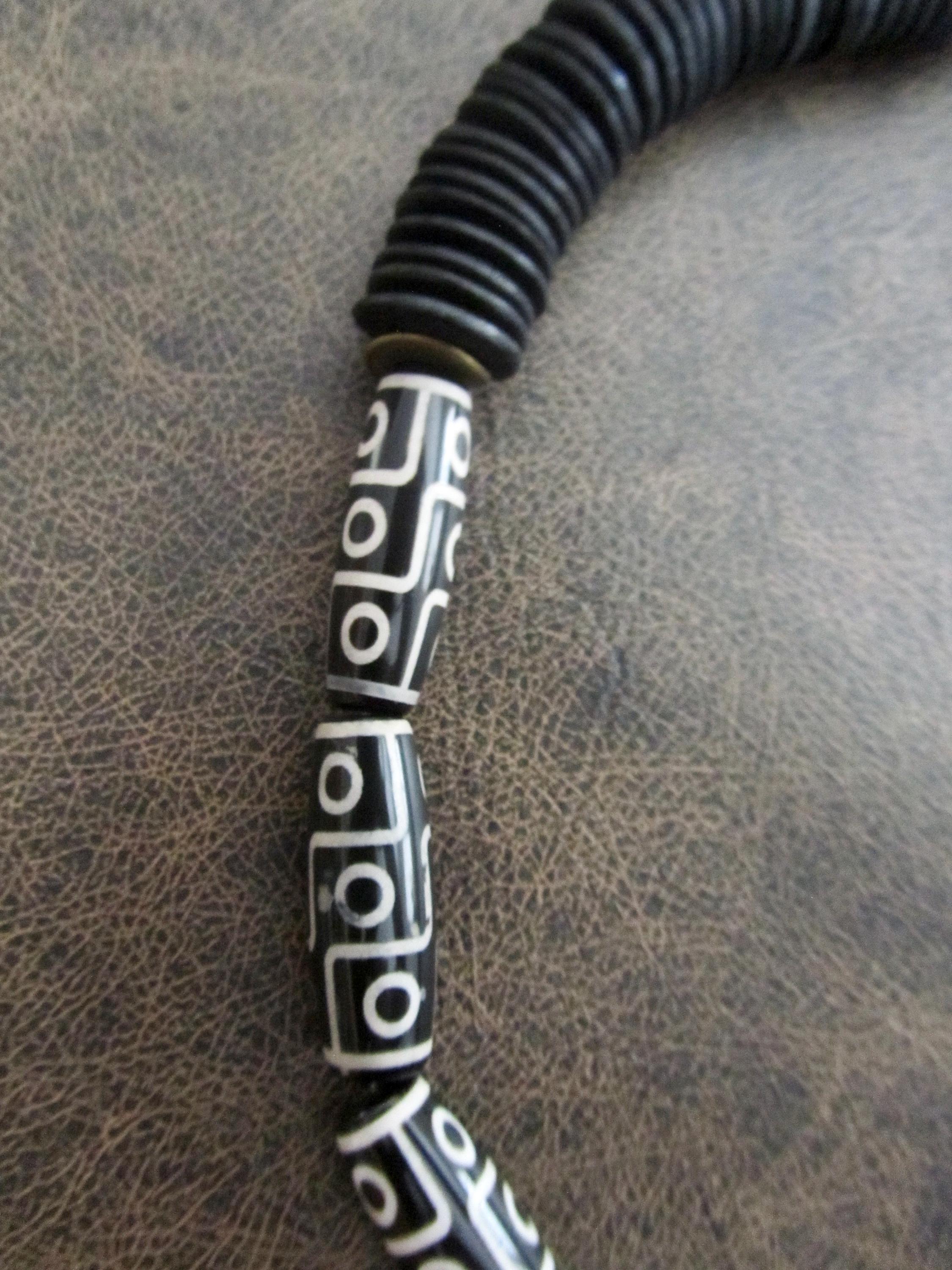 Black and white Tibetan agate beaded necklace with lobster claw clasp. Approximately 24 inches long