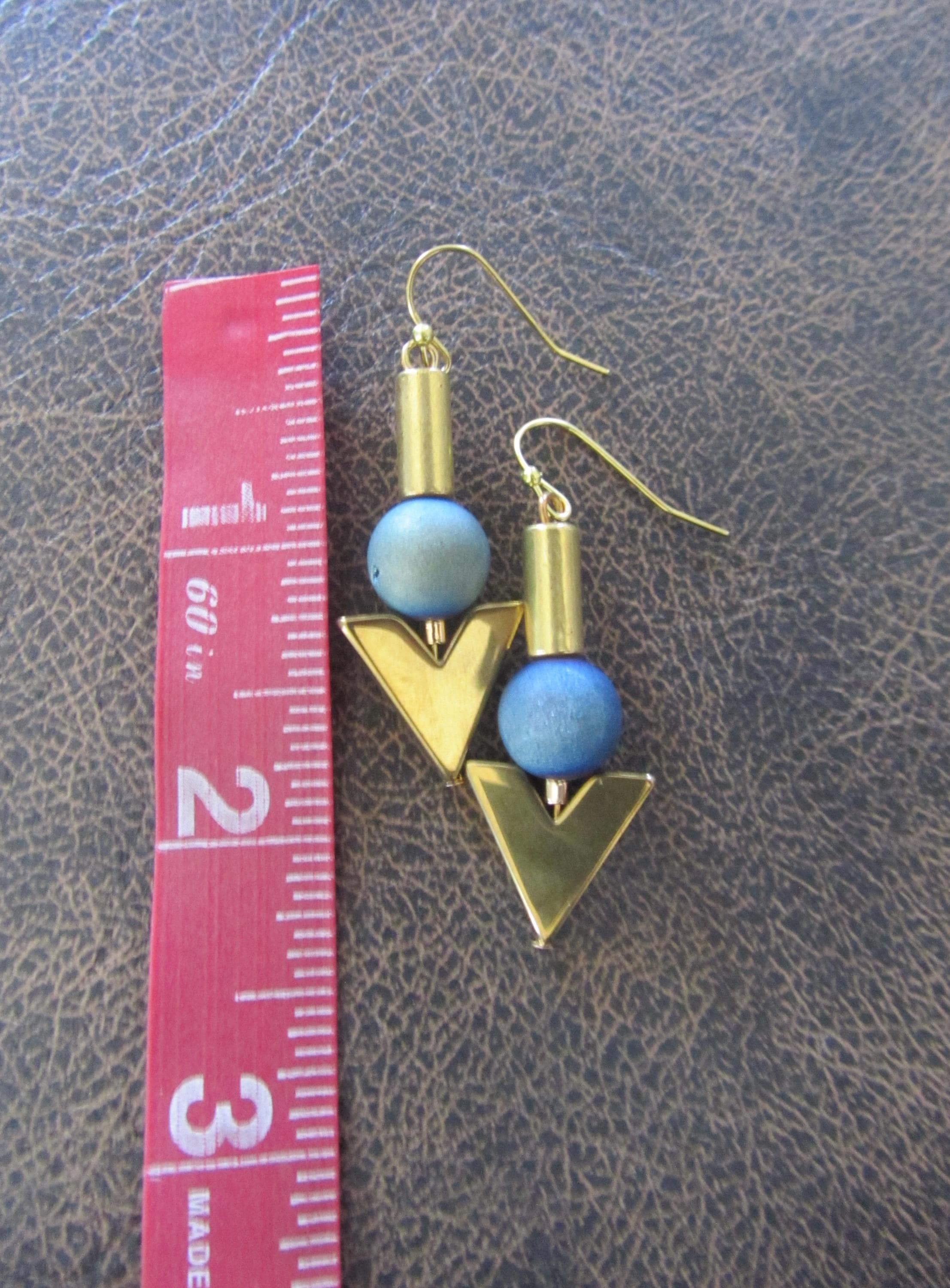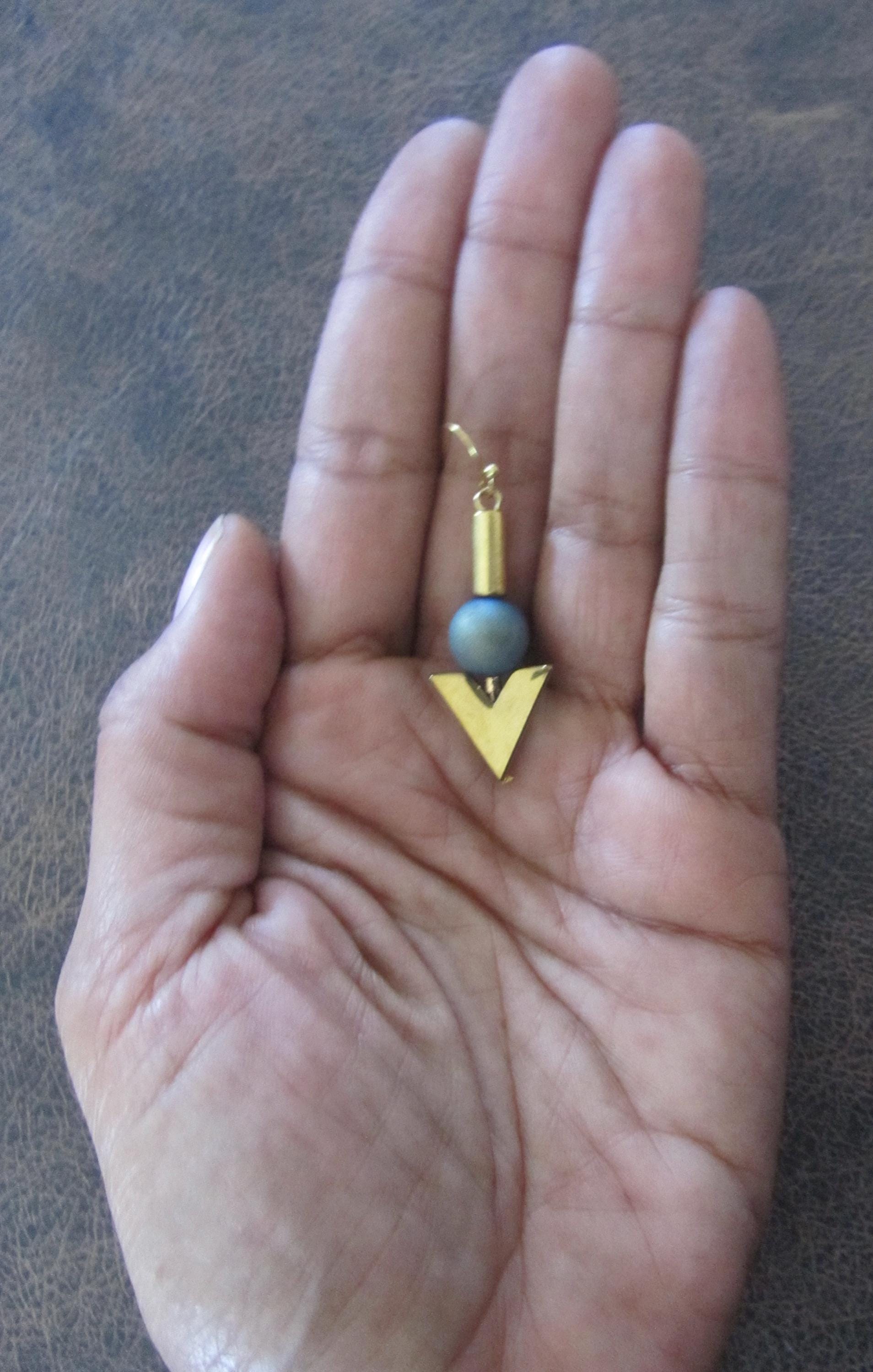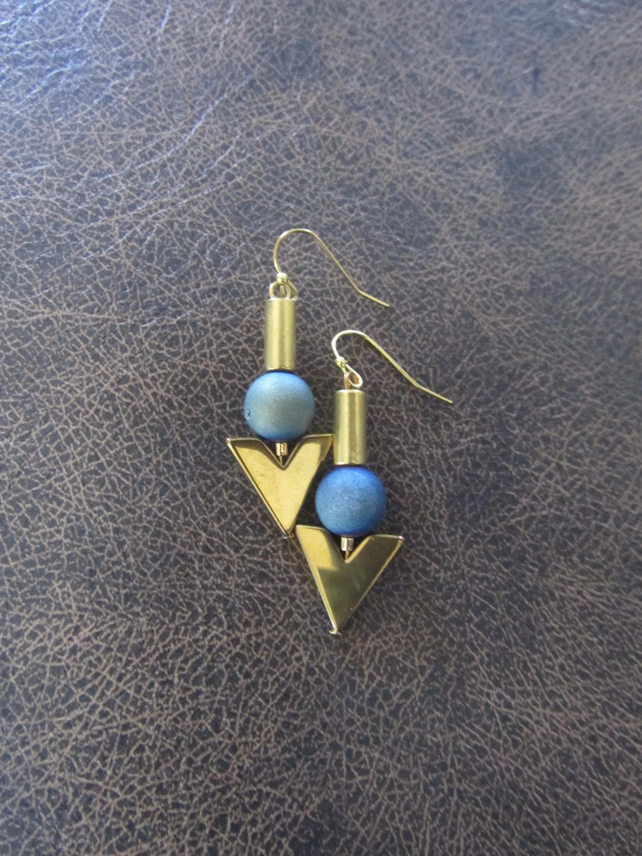 Gold hematite and teal agate earrings French hooks