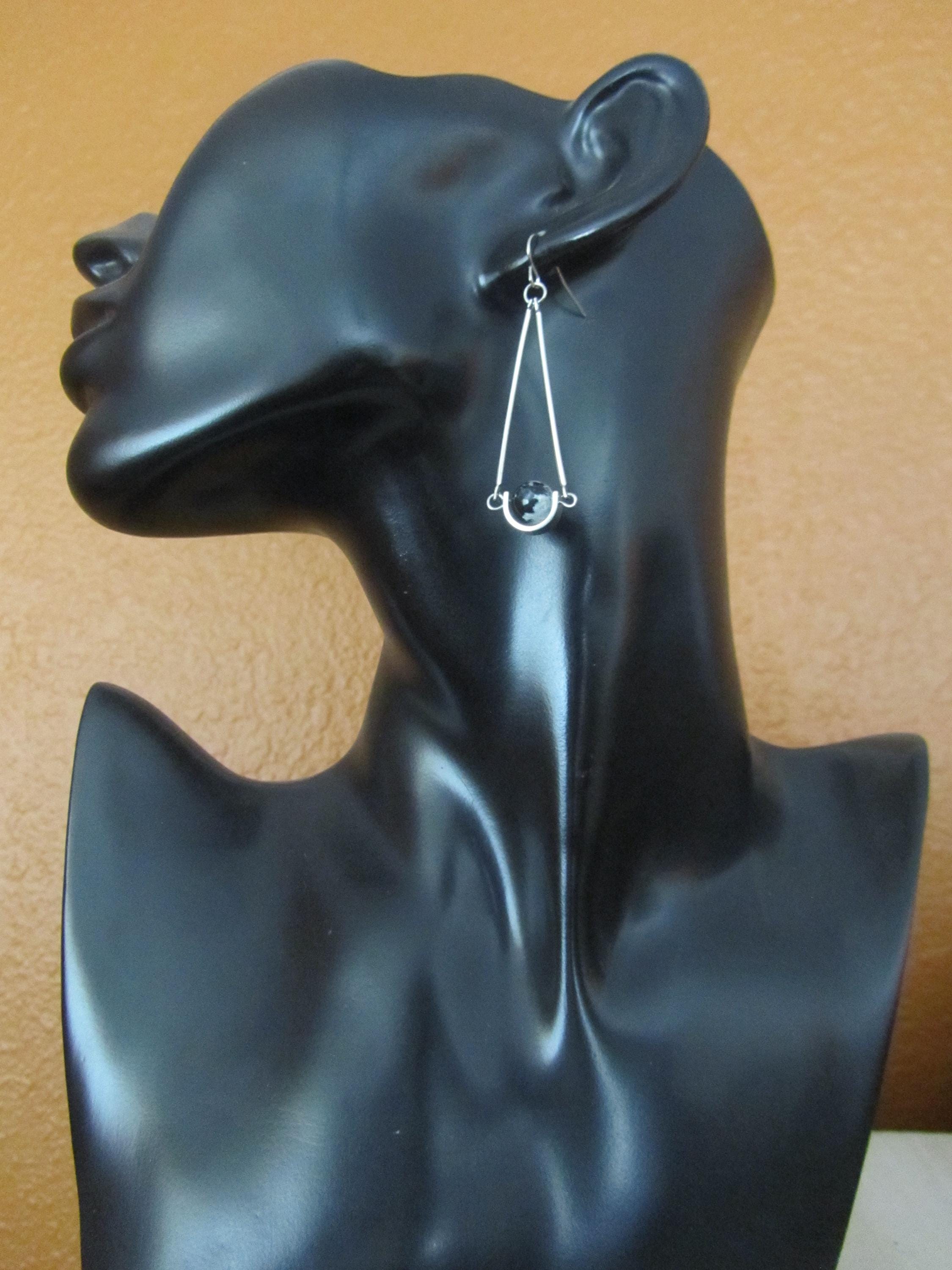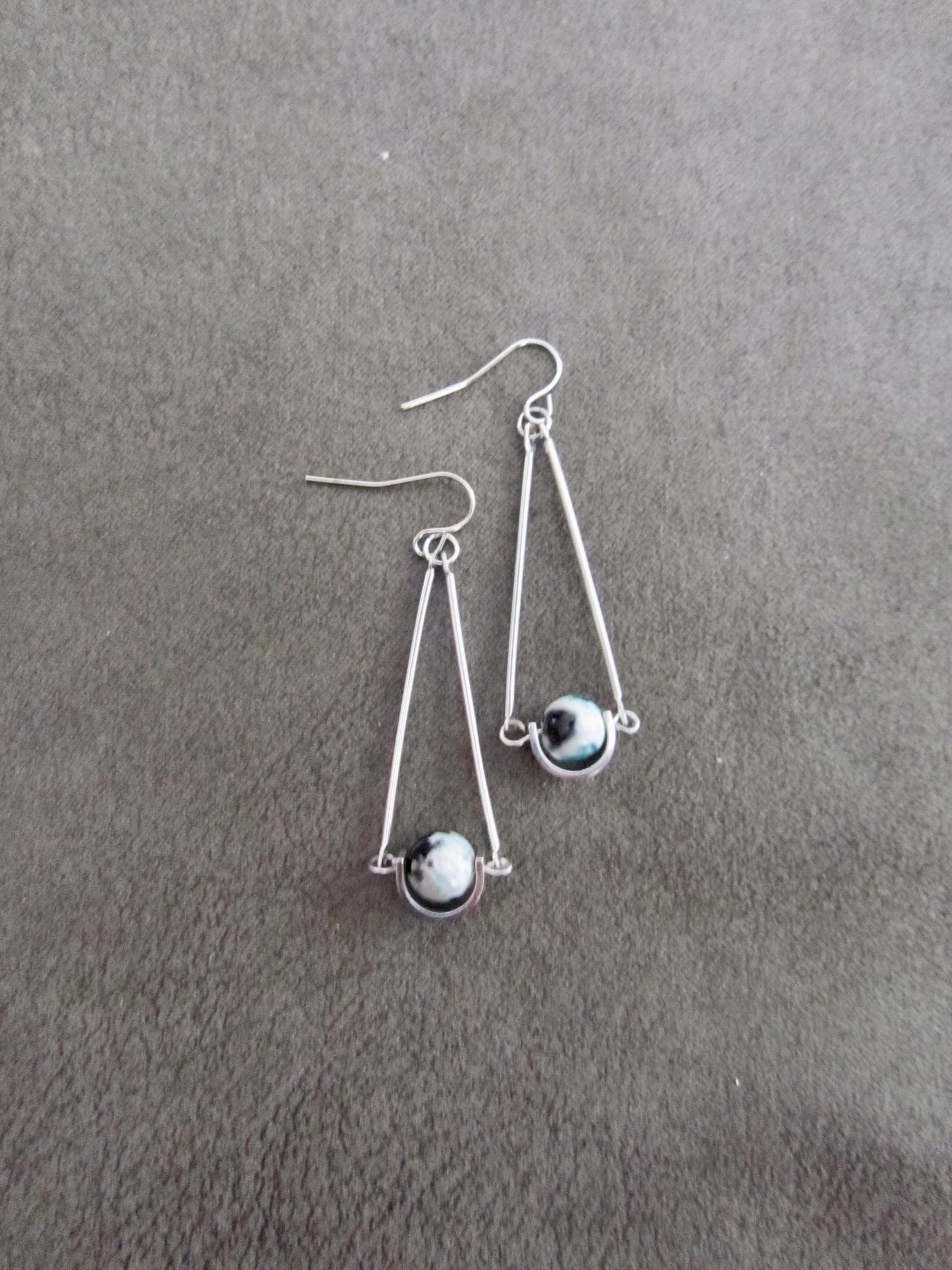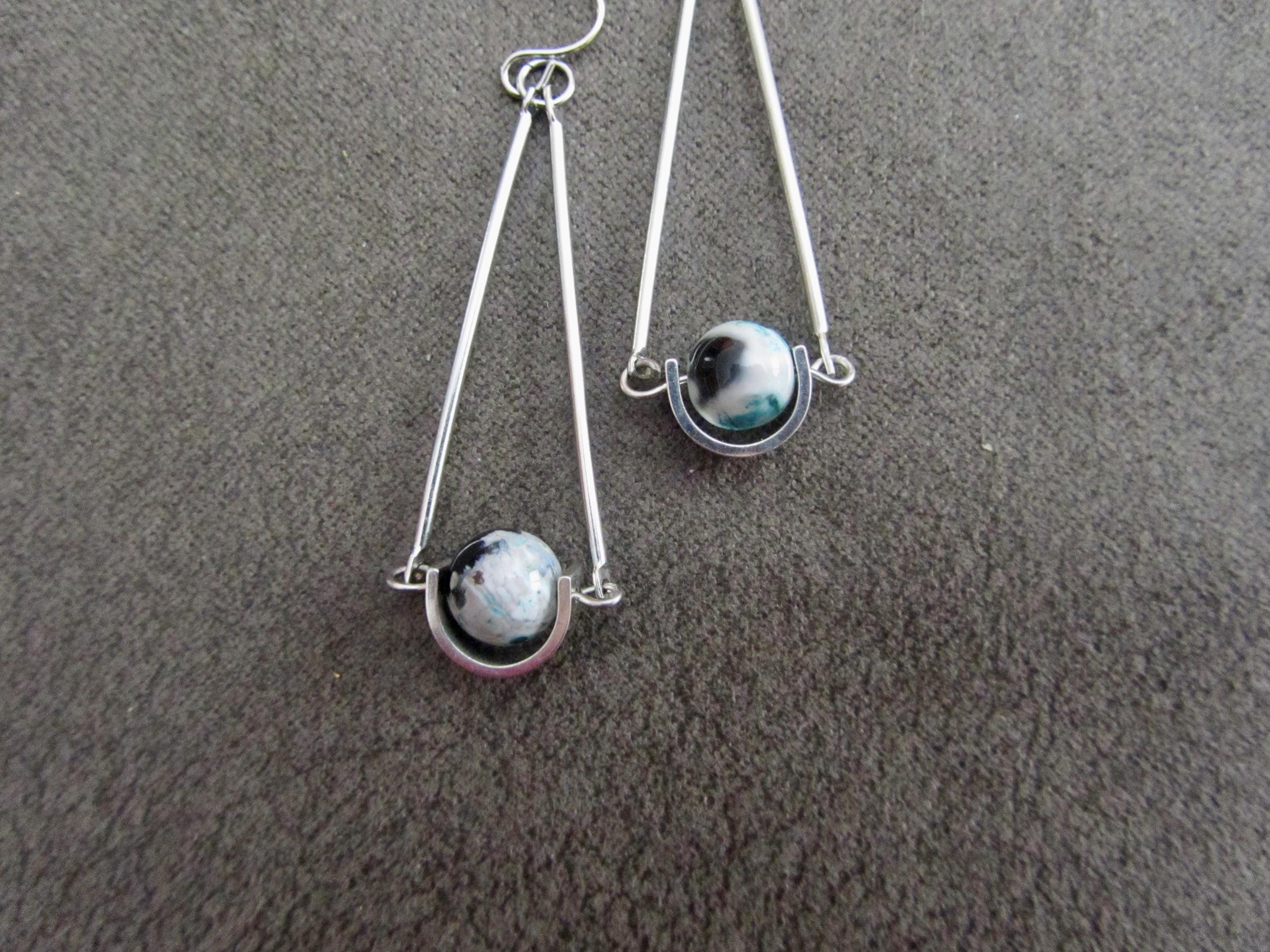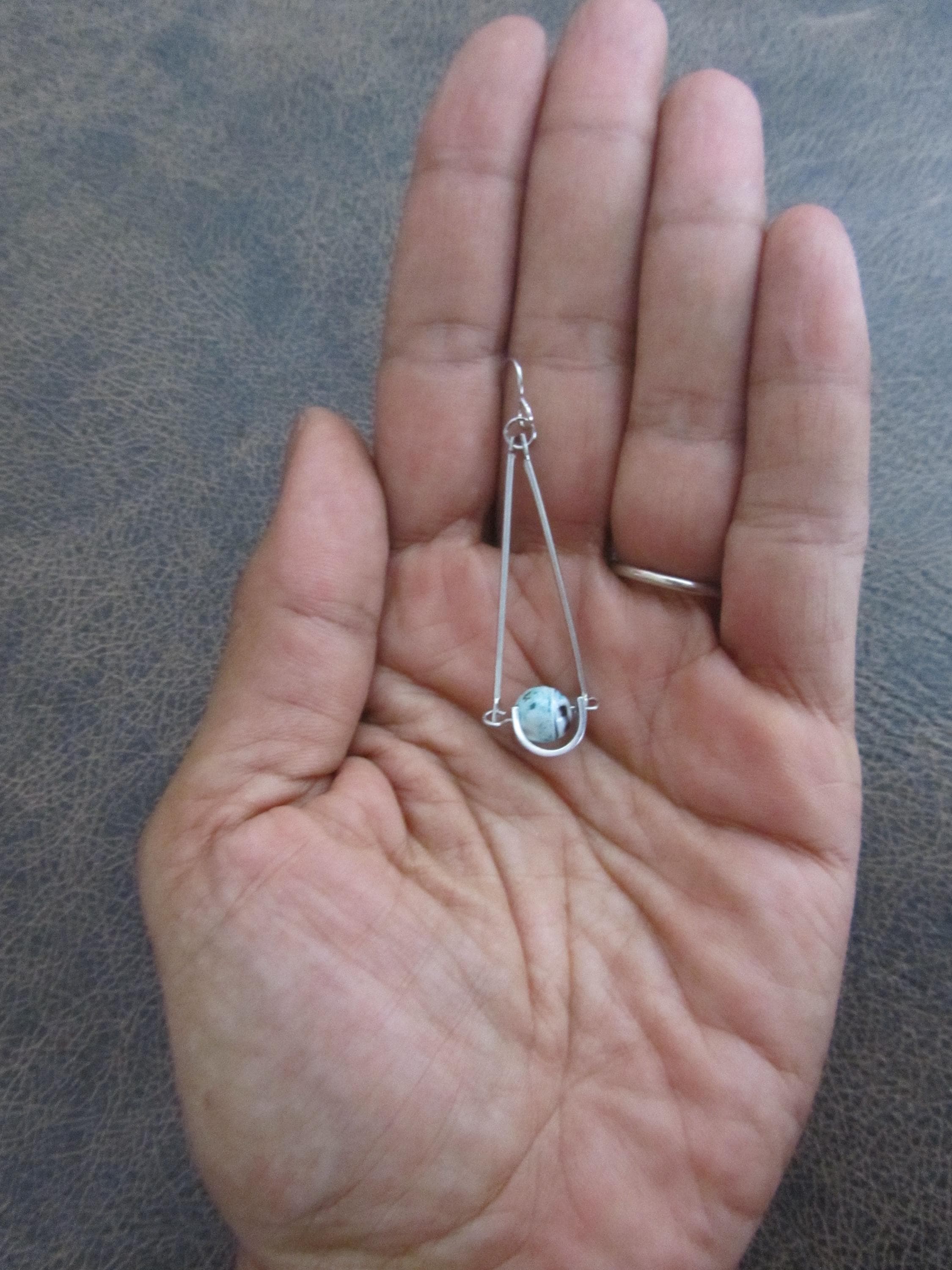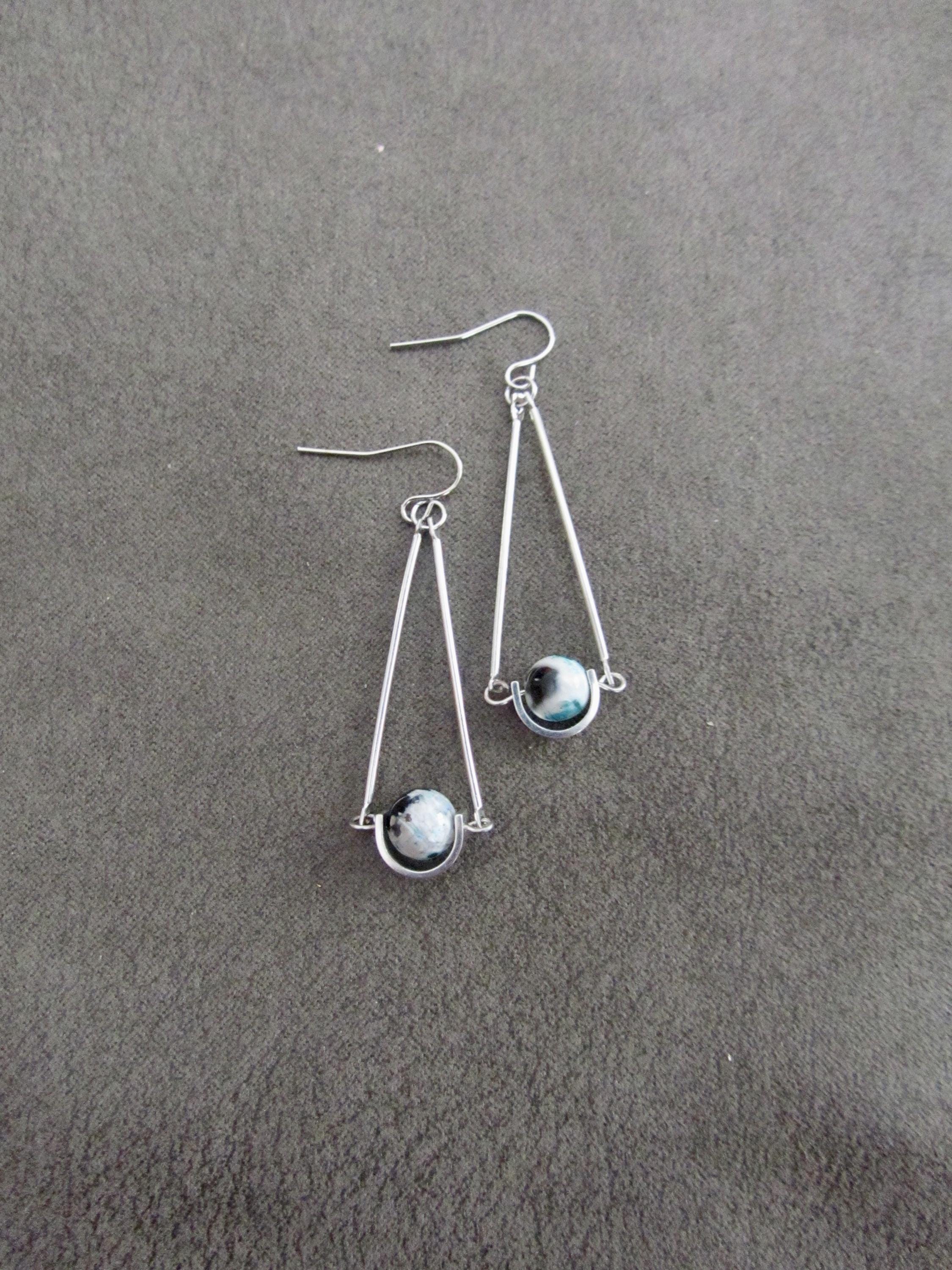 Spotted jasper minimalist earrings. Jasper has black, white and teal colors