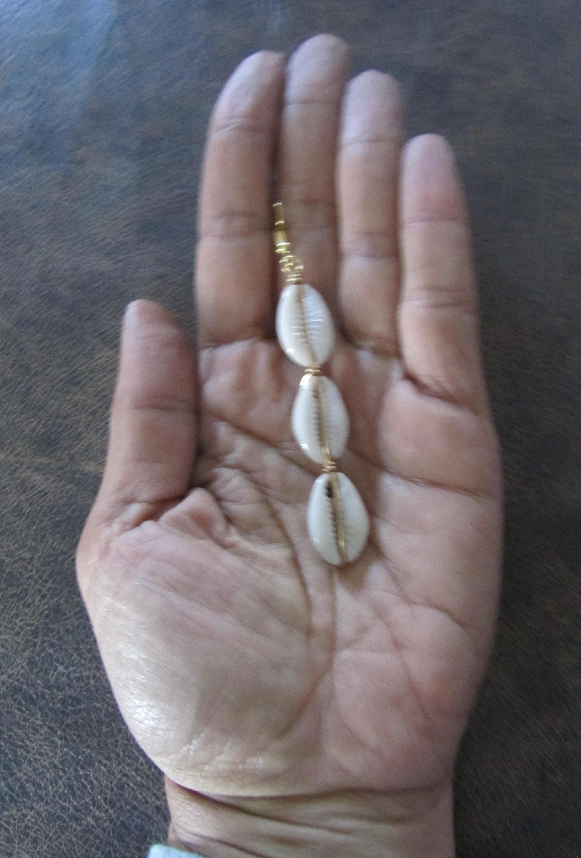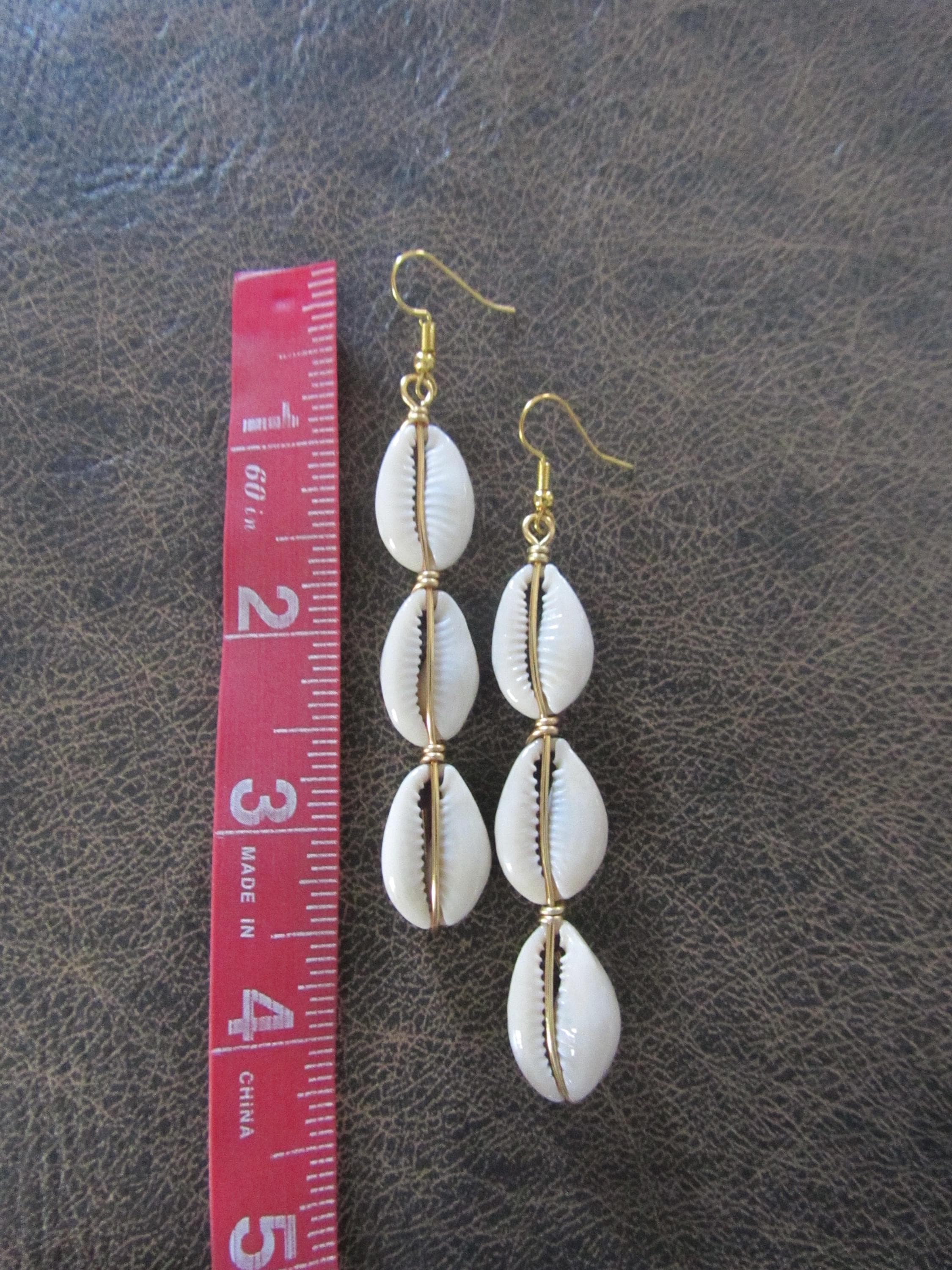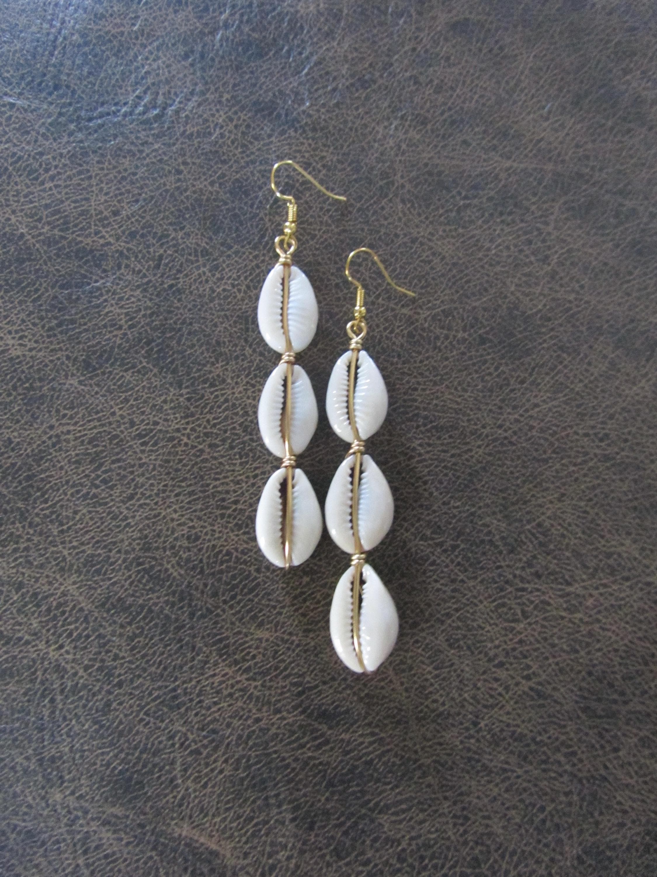 Long cowrie shells earrings. French hooks.