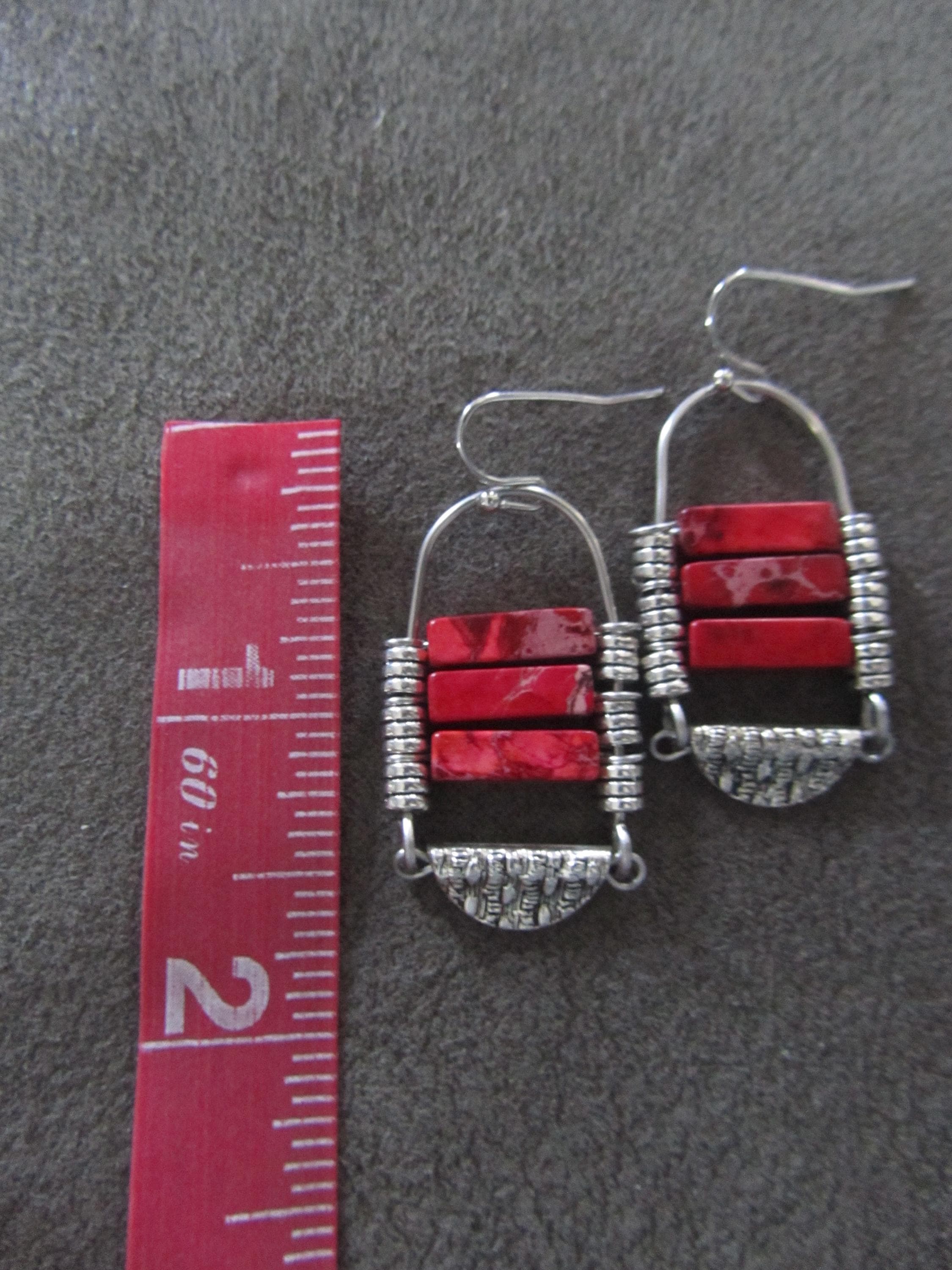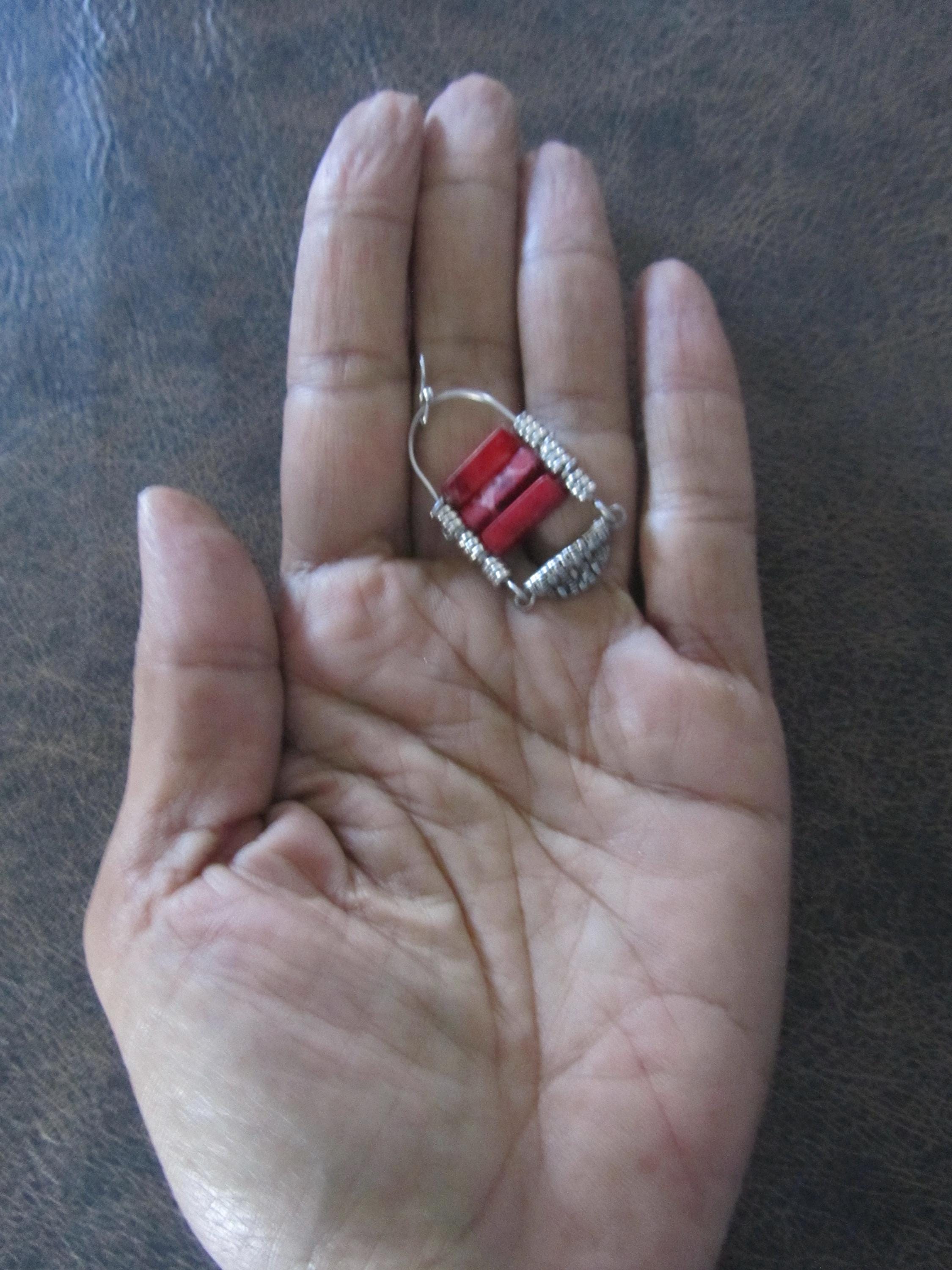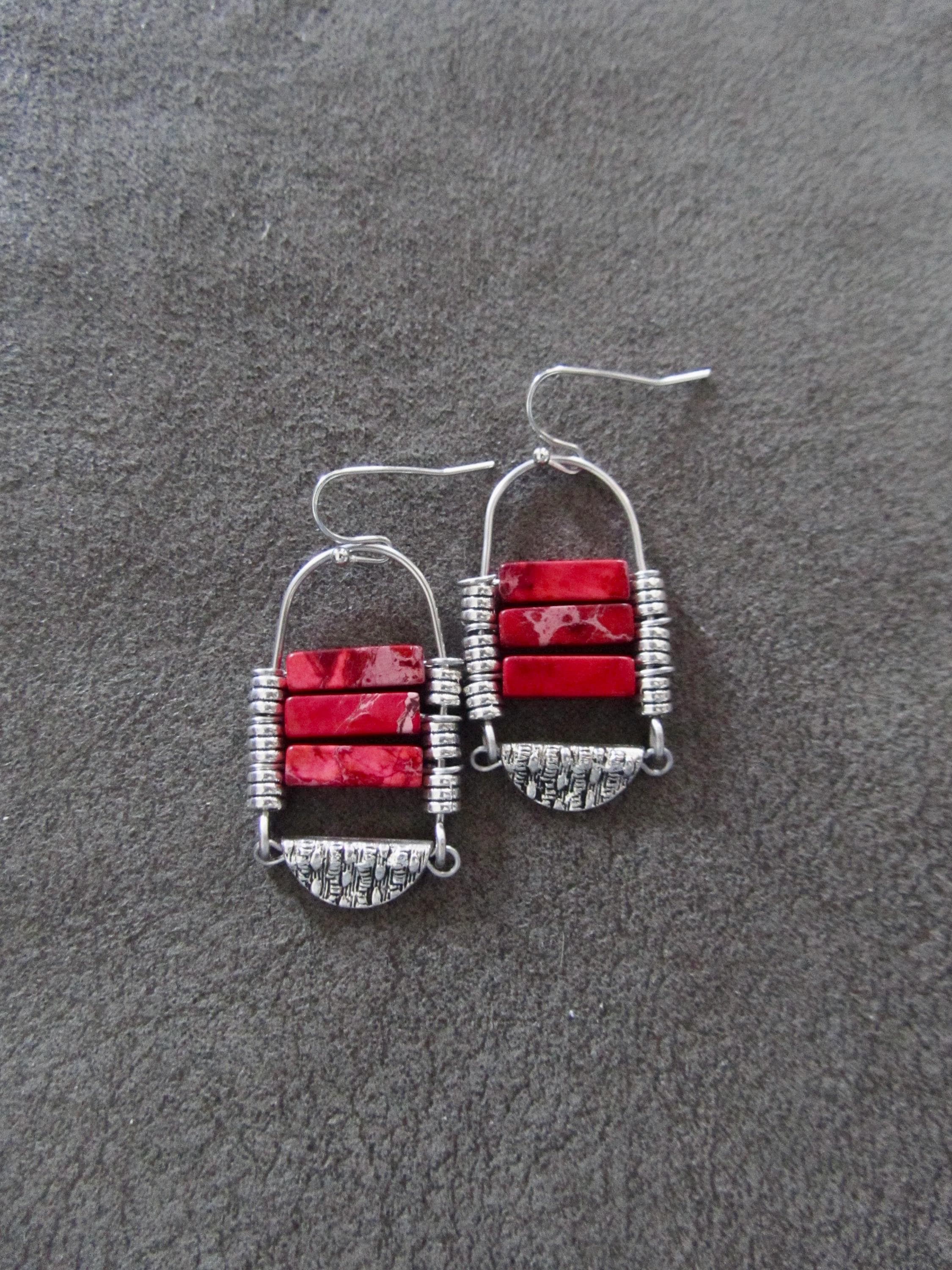 Red sediment jasper tribal chandelier earrings with French hooks