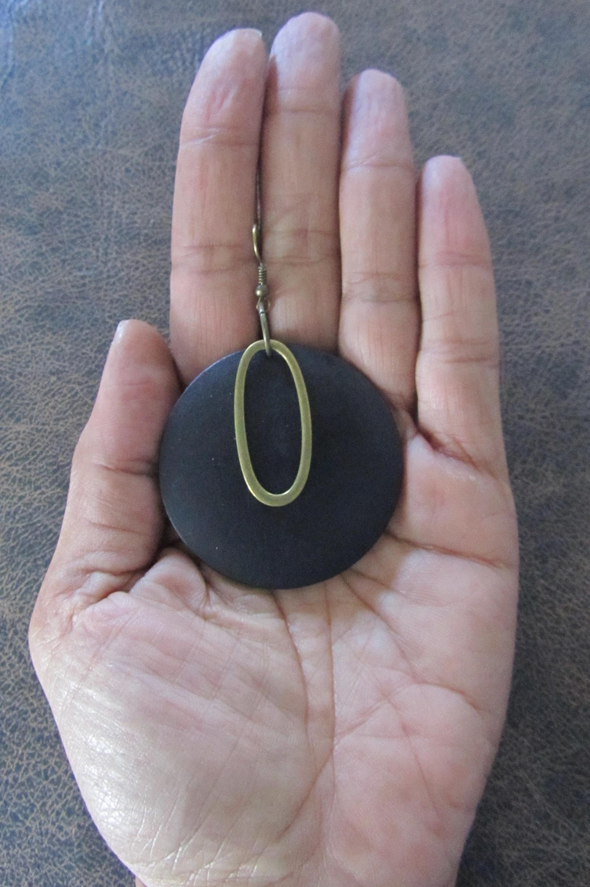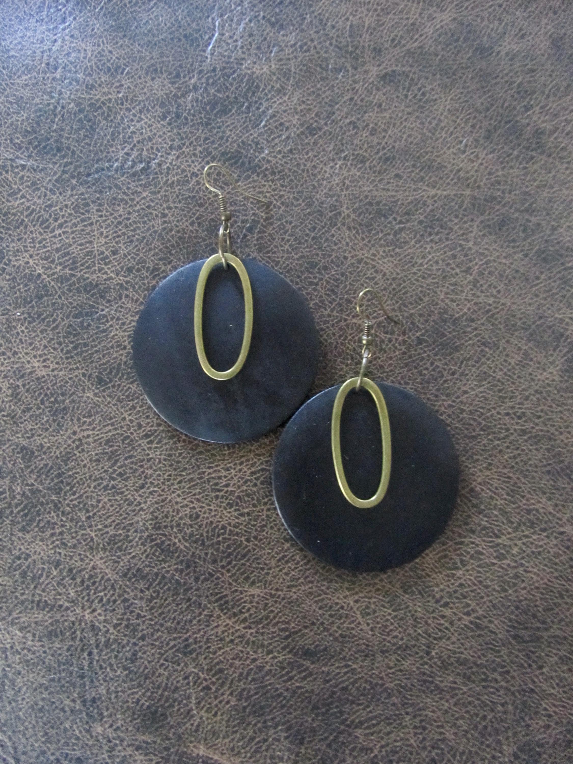 Simple wooden and bronze earrings on french hooks