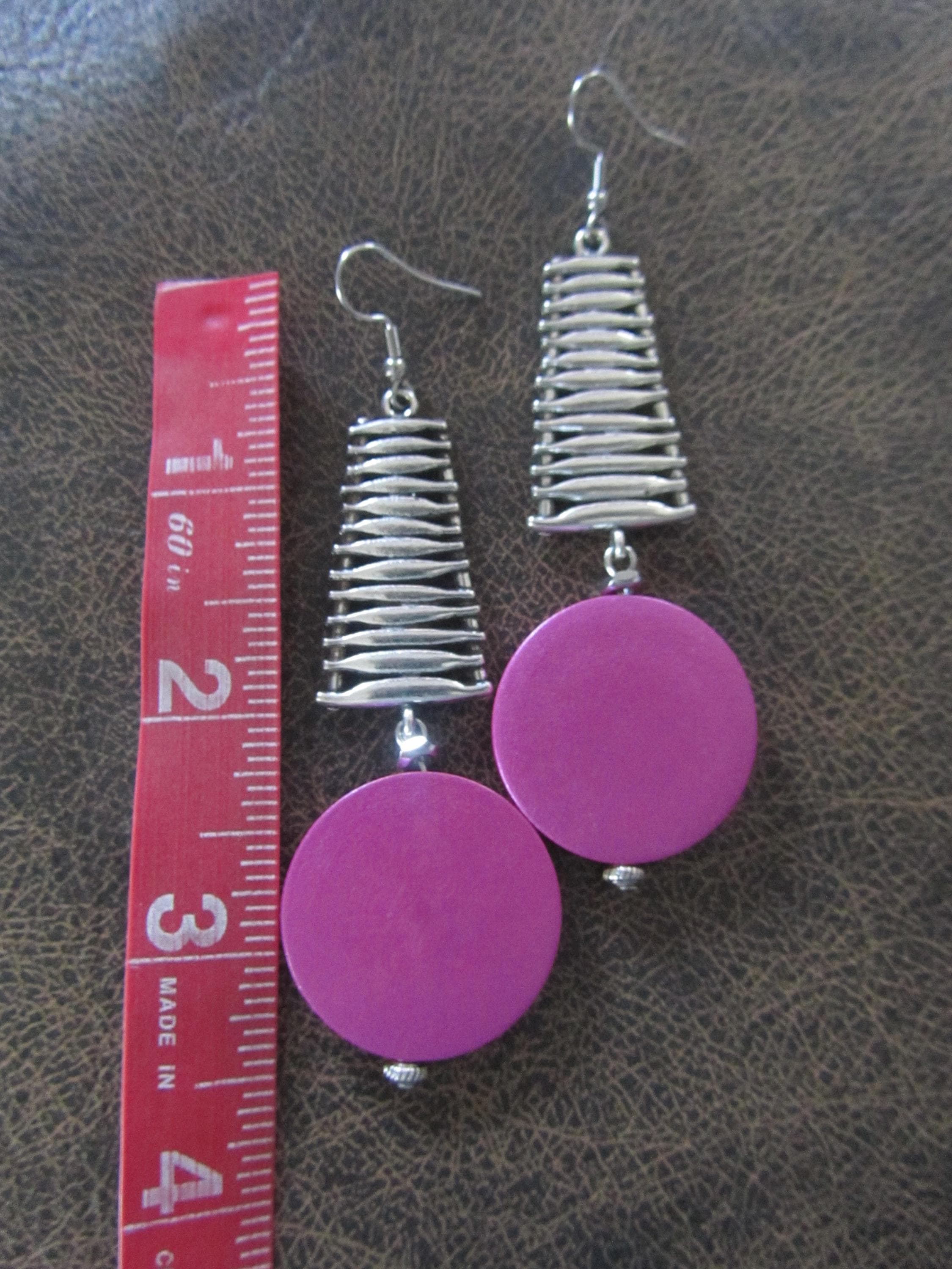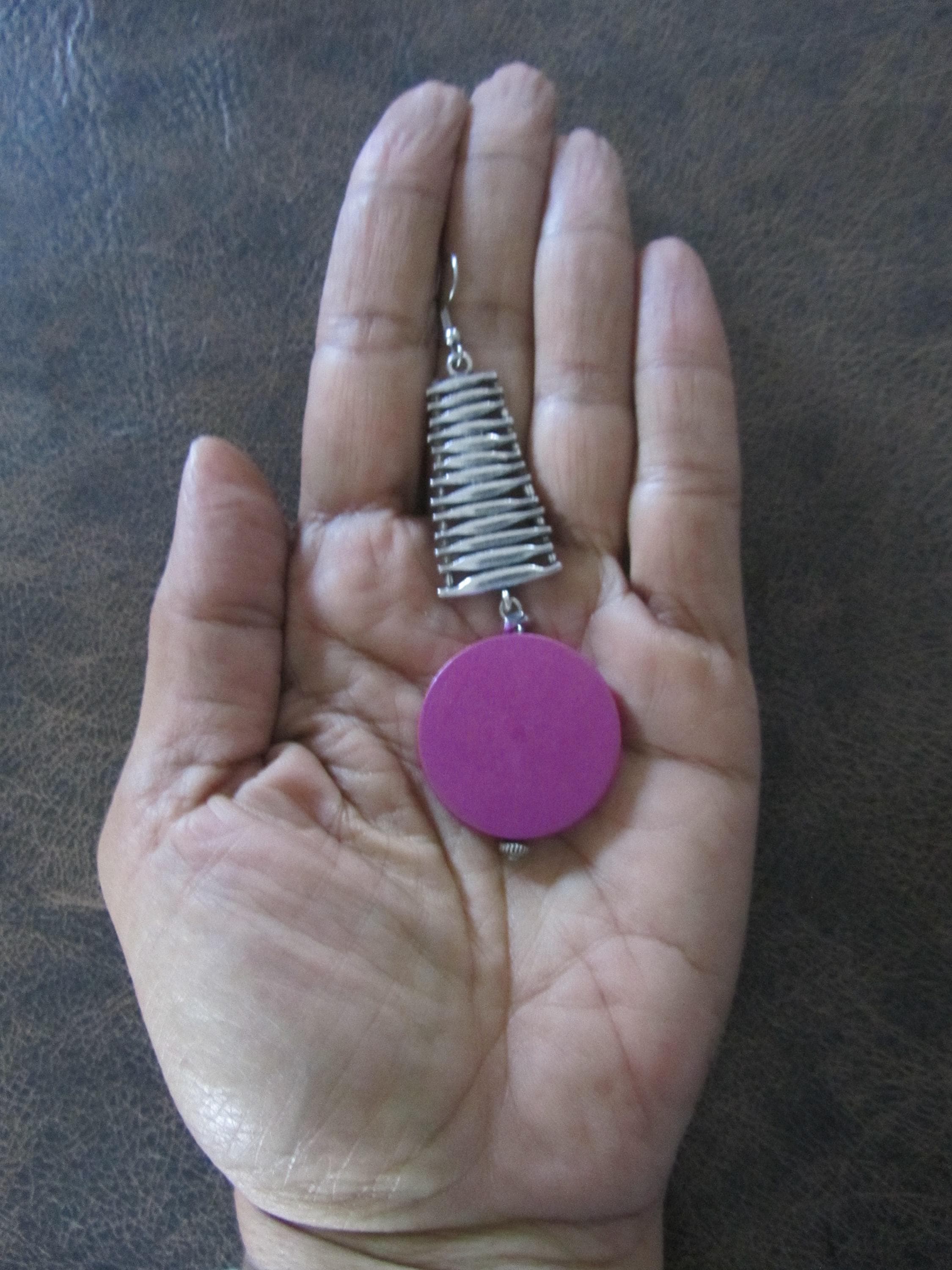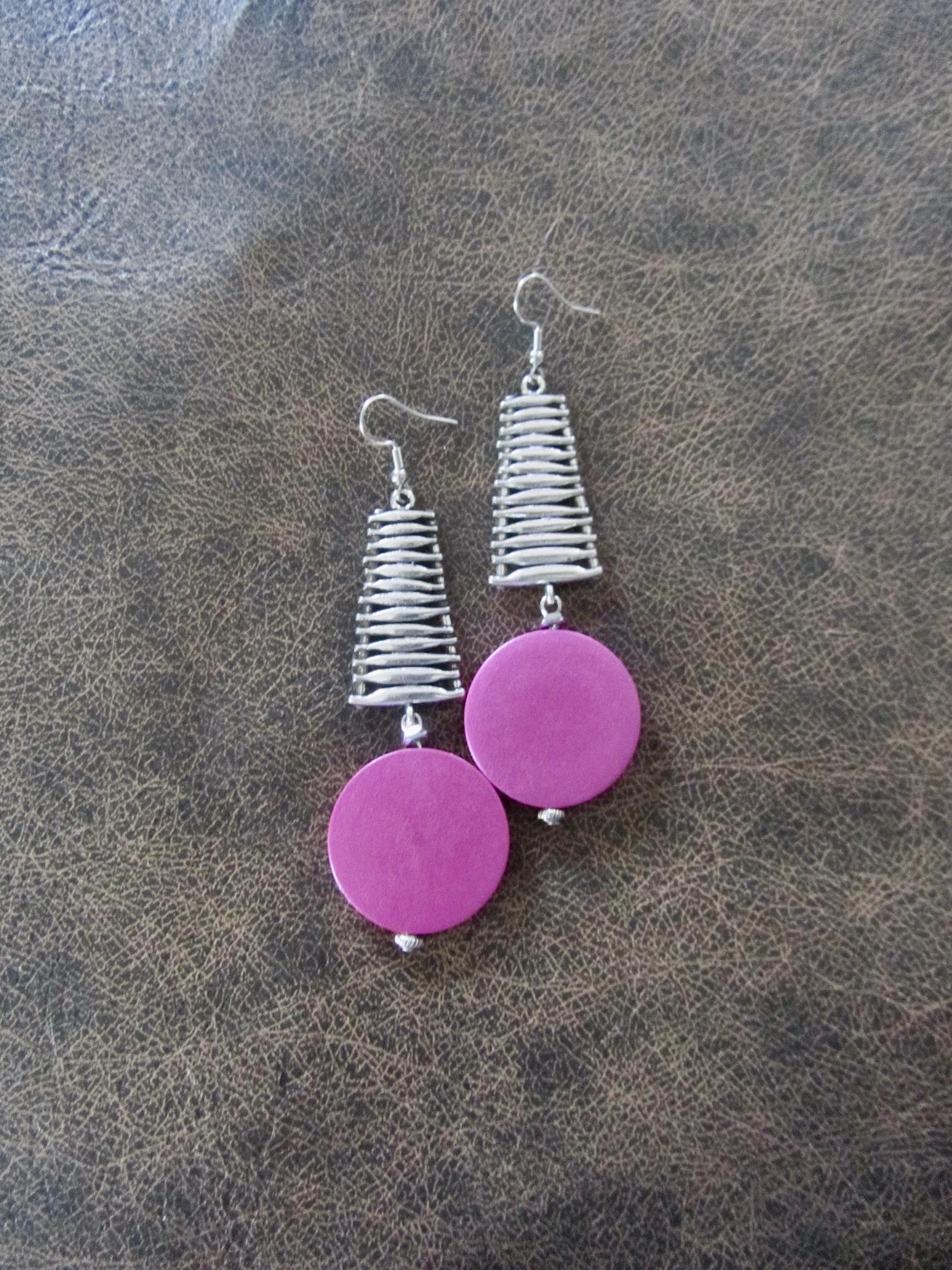Large pink wood and silver and French hooks
