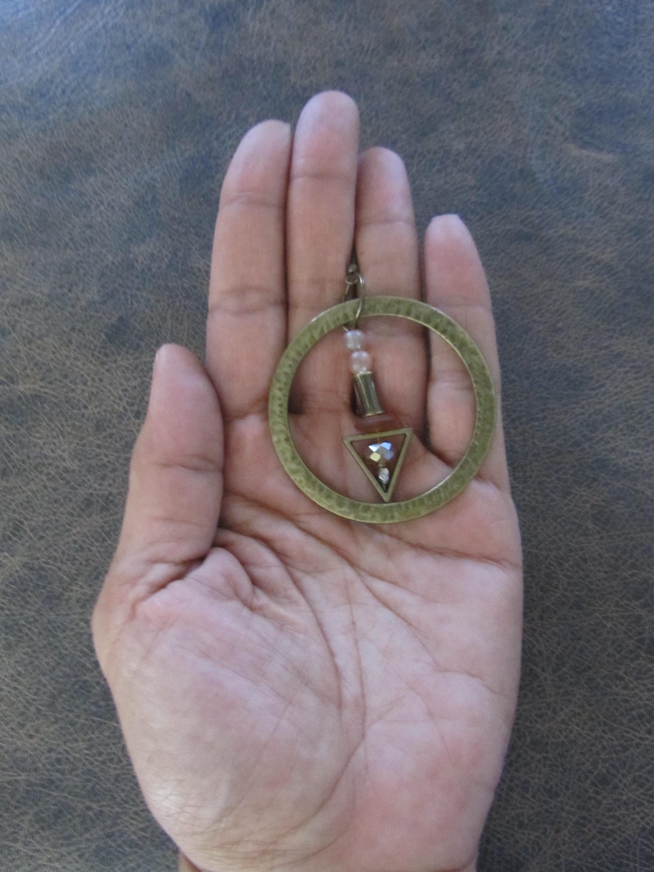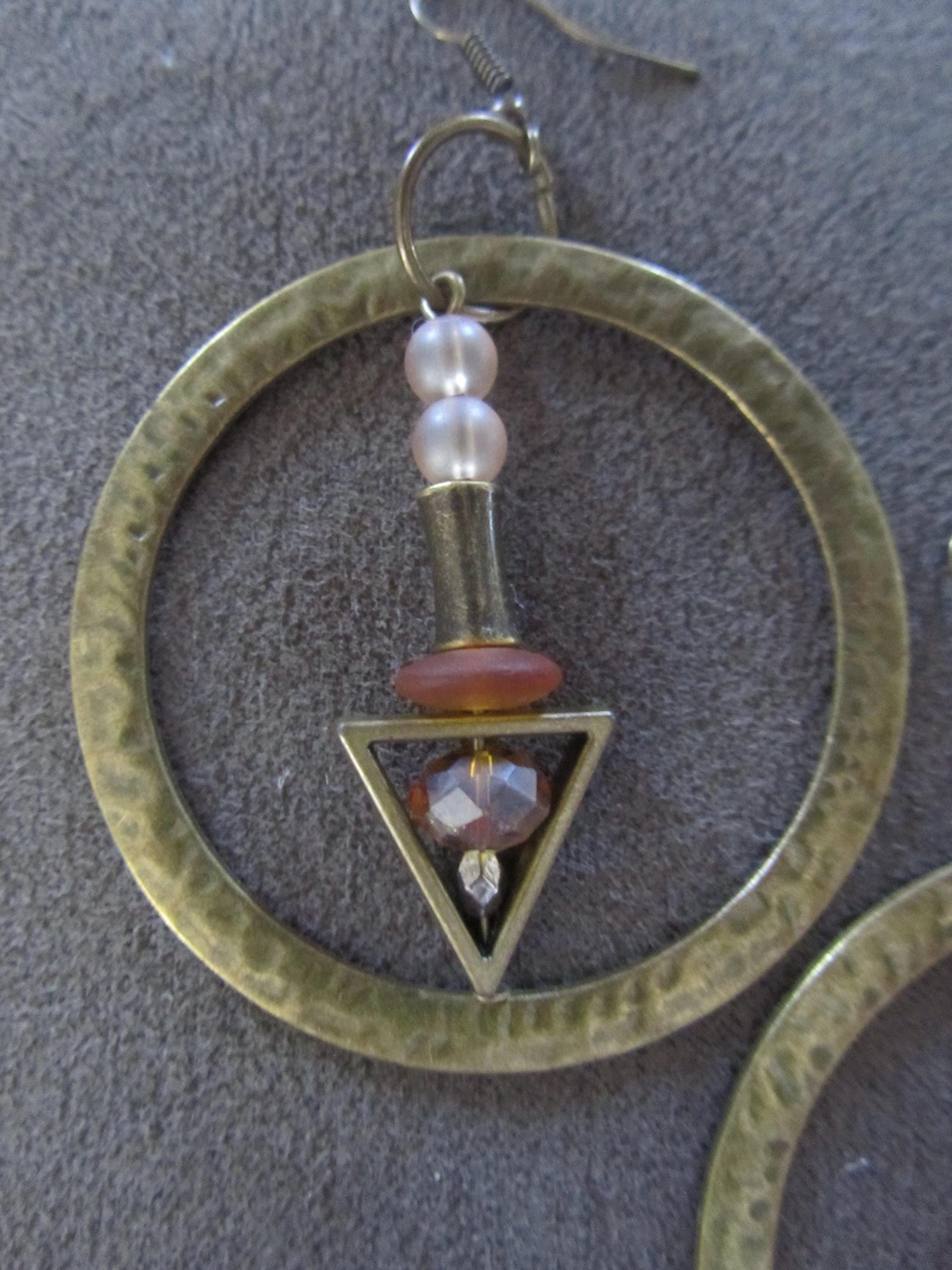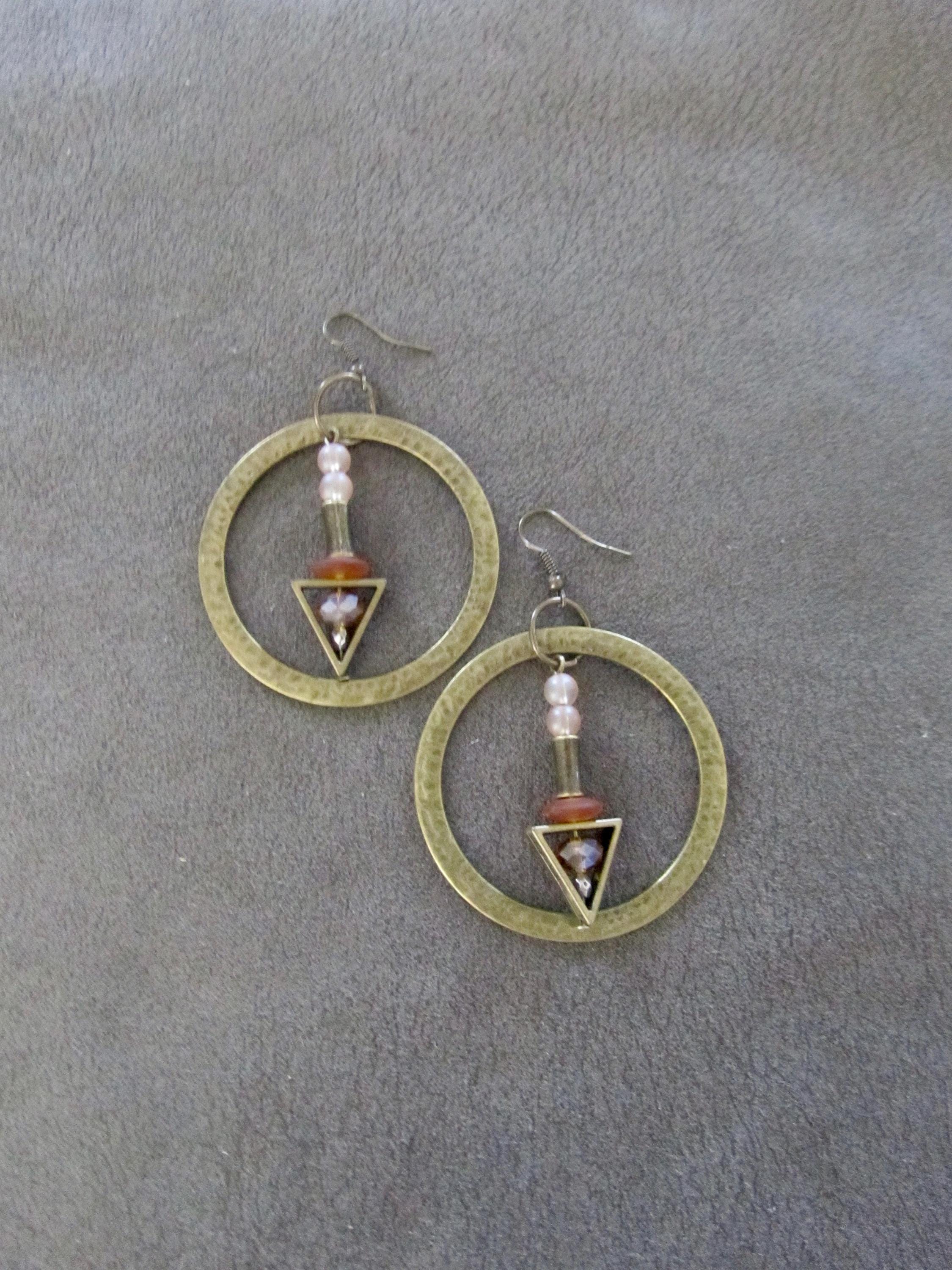 Hammered bronze and glass earrings on french hooks