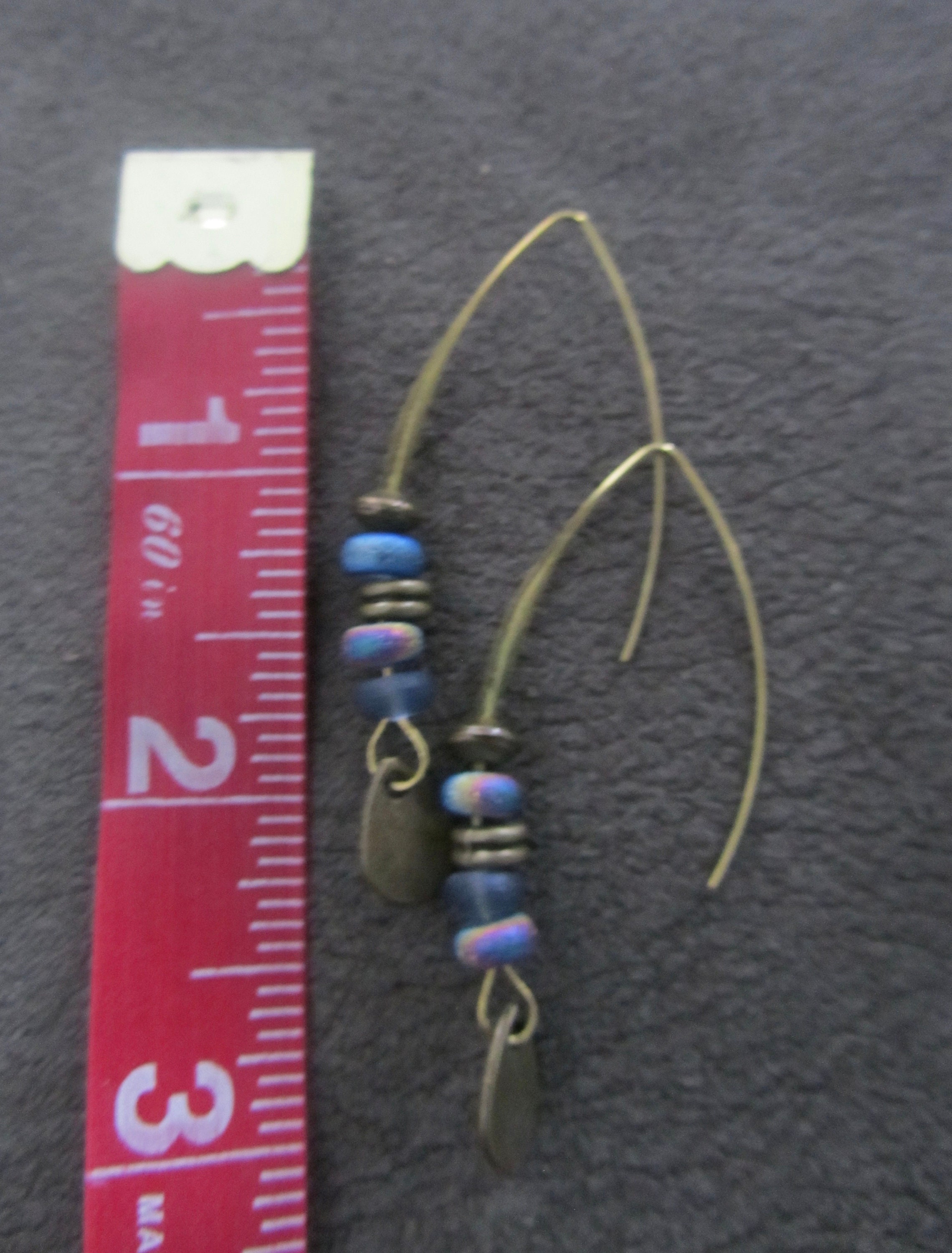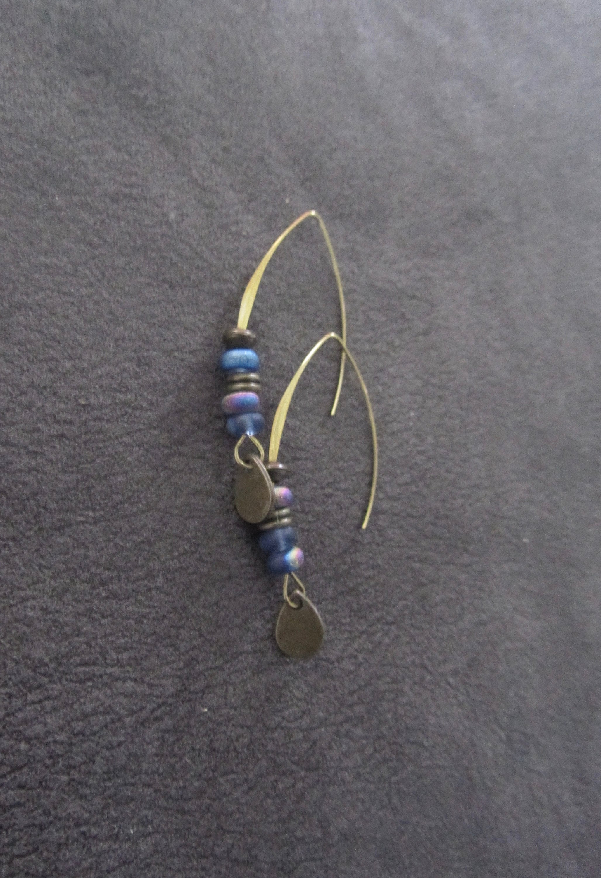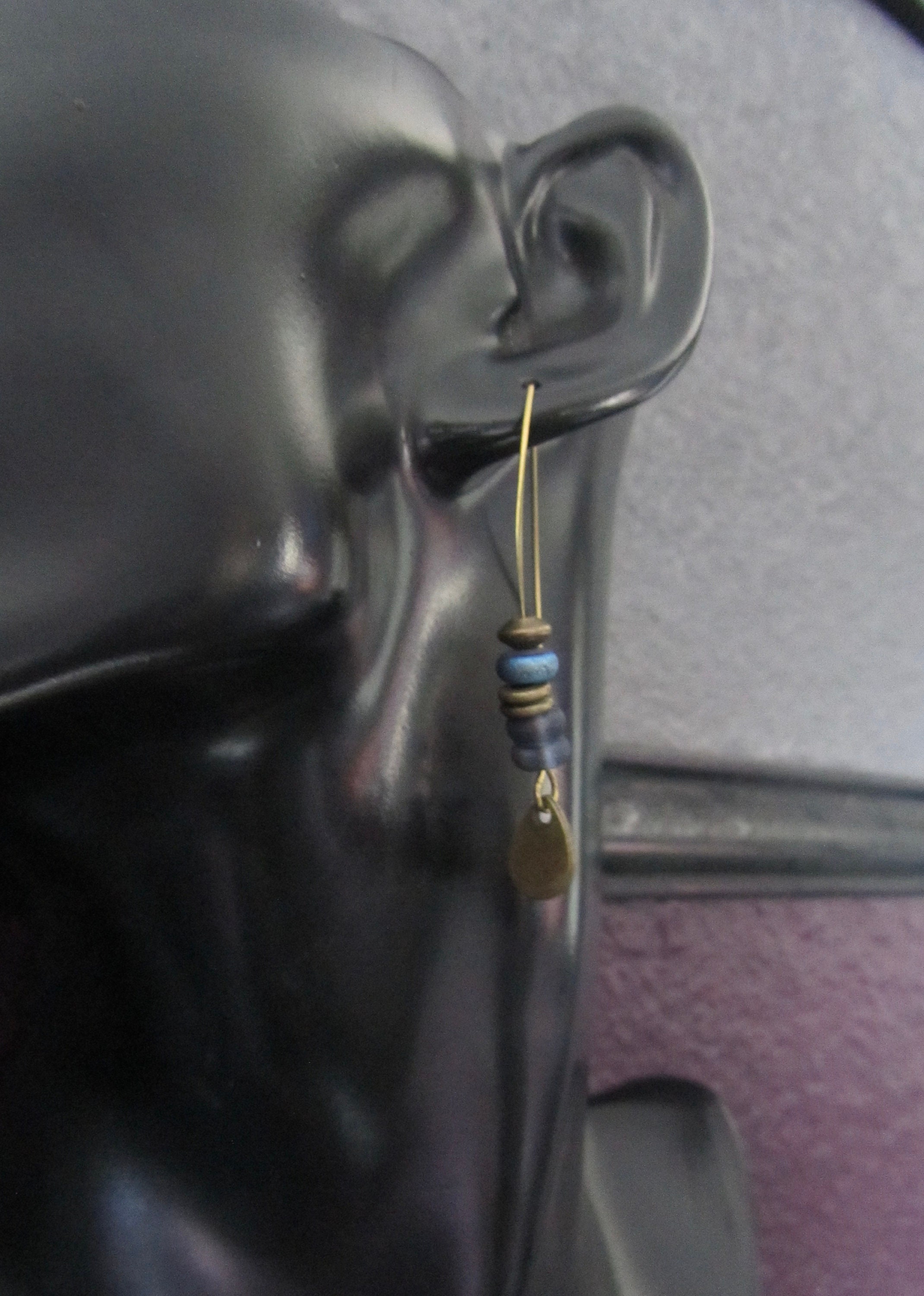 Periwinkle blue frosted sea glass and brass minimalist earrings on ear wire